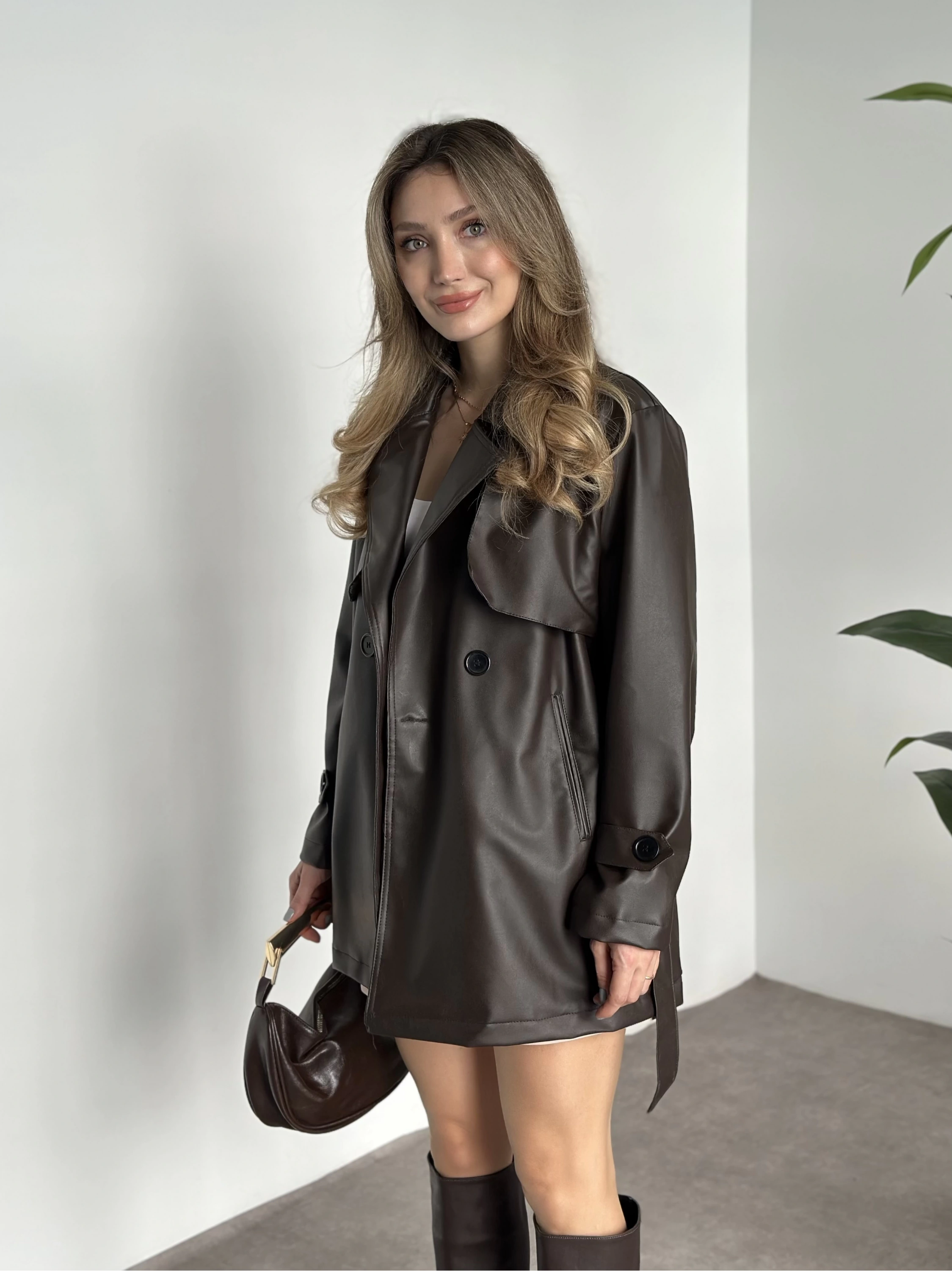 Dokulu süet içi peluşlu oversize marka model mont kahve