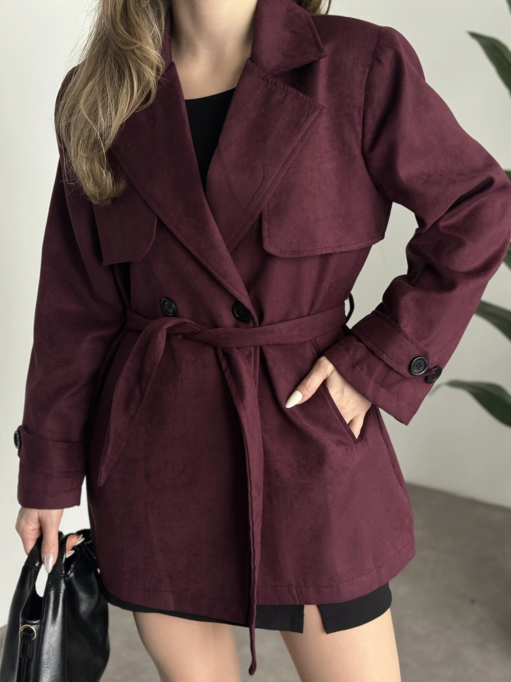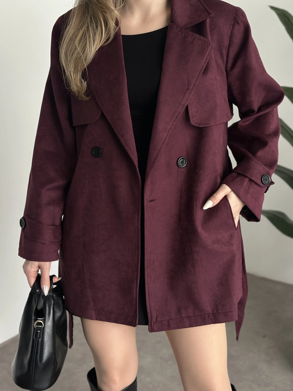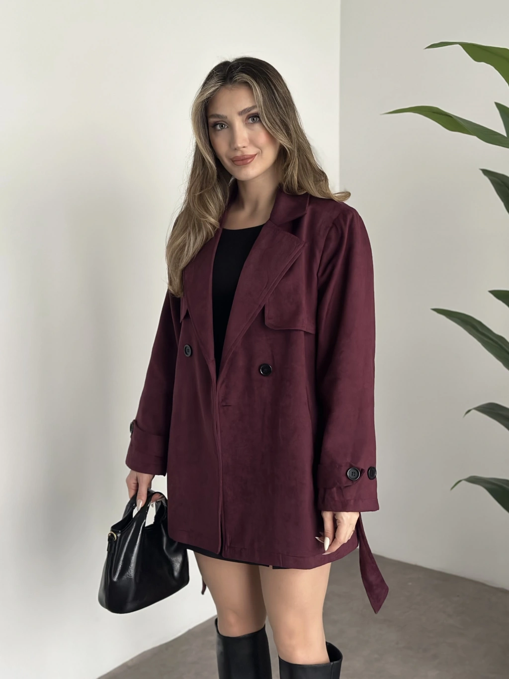 Dokulu süet içi peluşlu oversize marka model mont kahve