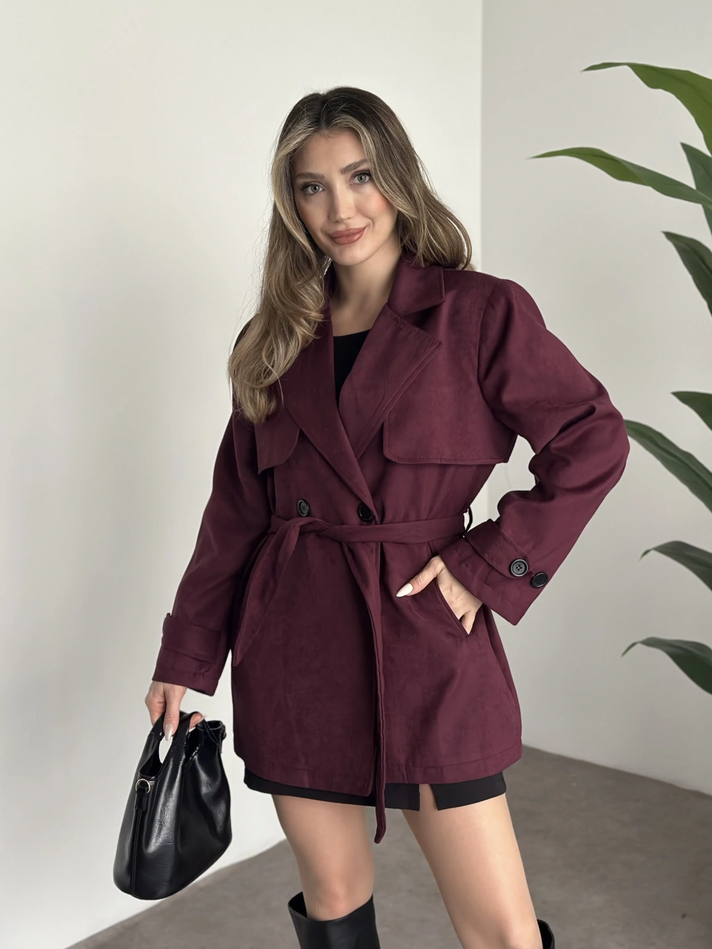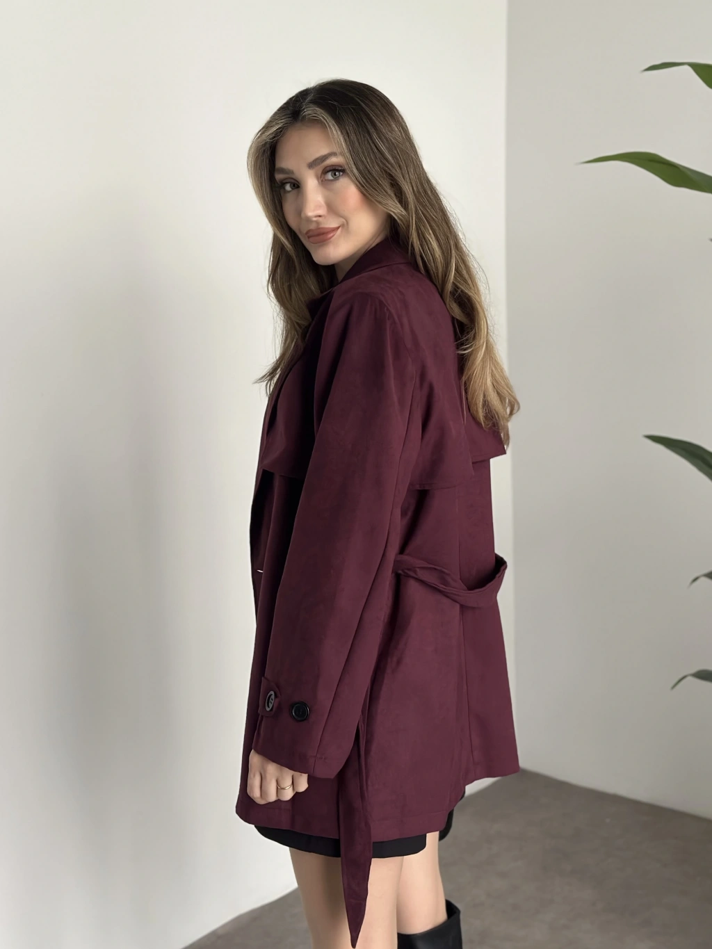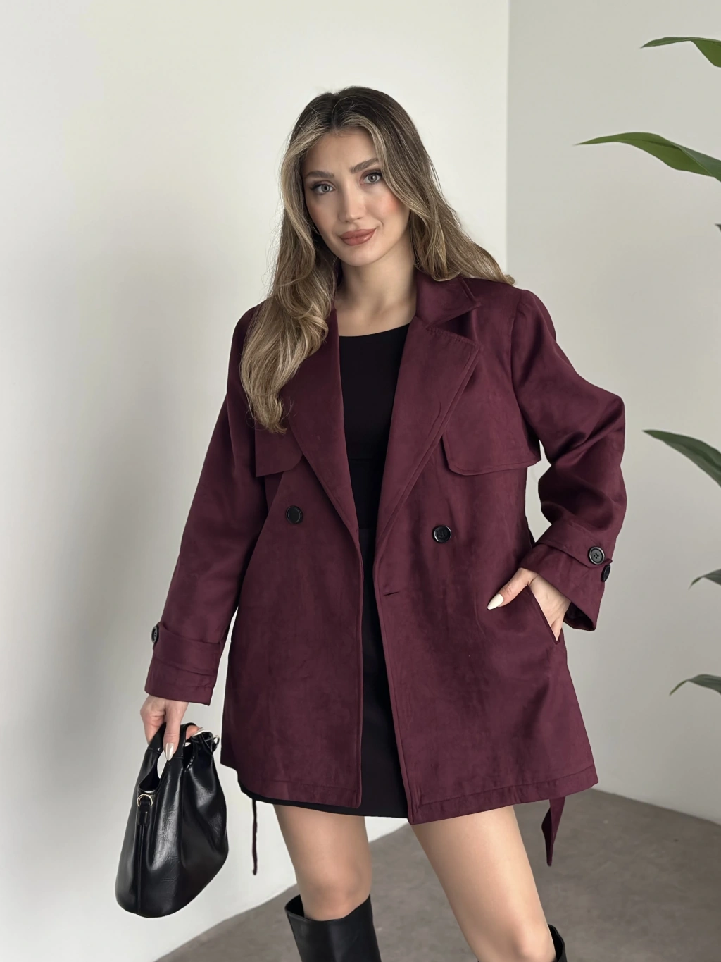 Dokulu süet içi peluşlu oversize marka model mont kahve