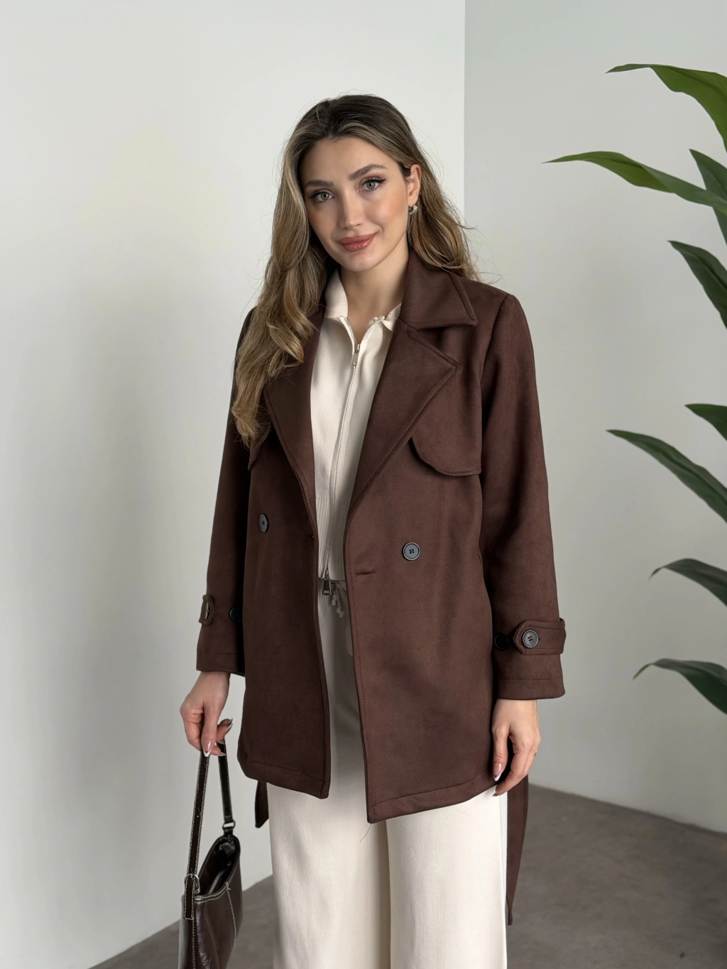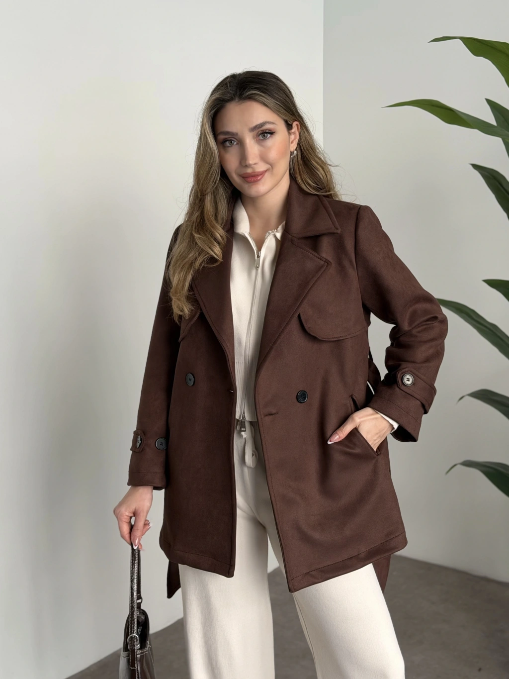 Dokulu süet içi peluşlu oversize marka model mont kahve