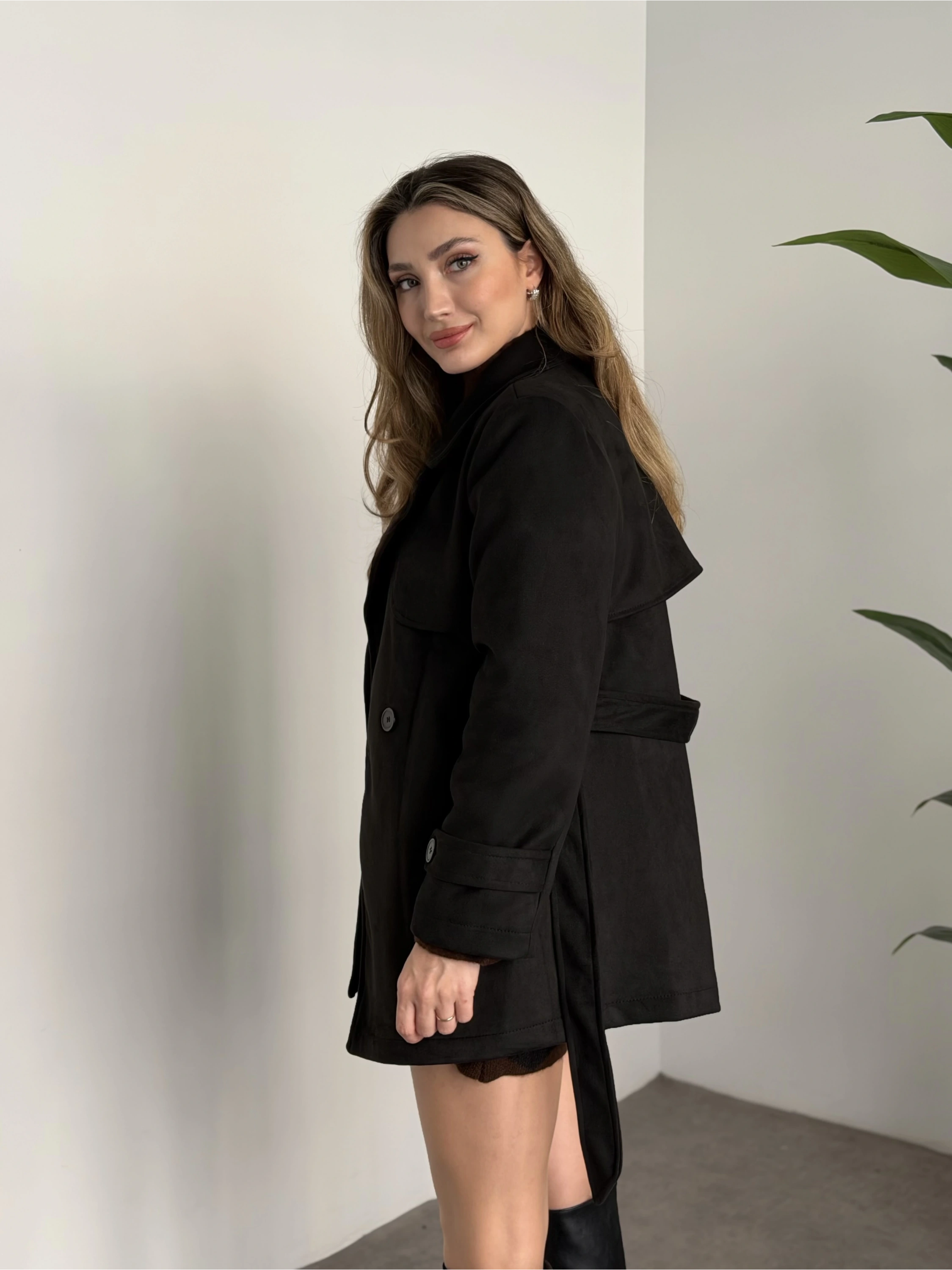 Dokulu süet içi peluşlu oversize marka model mont siyah