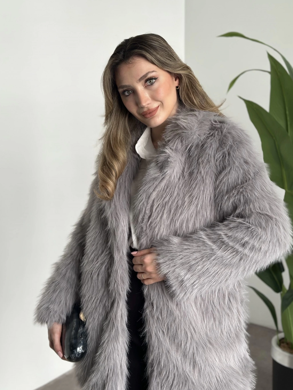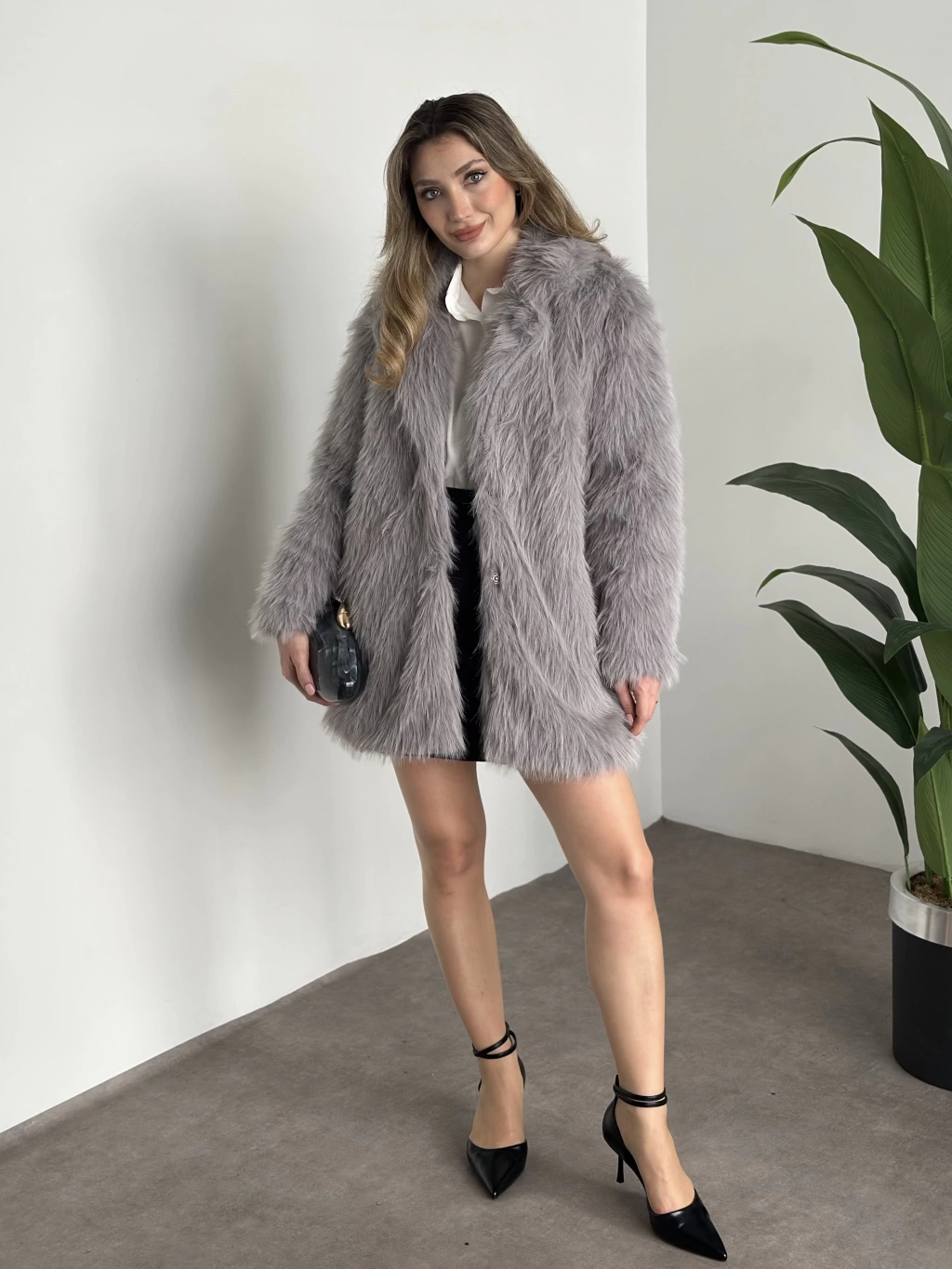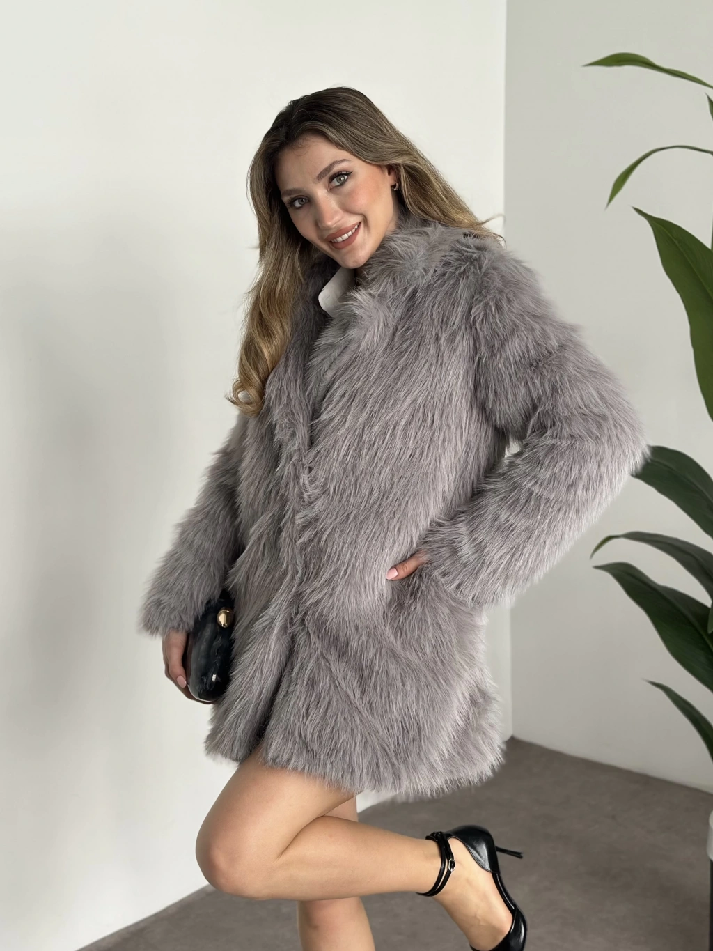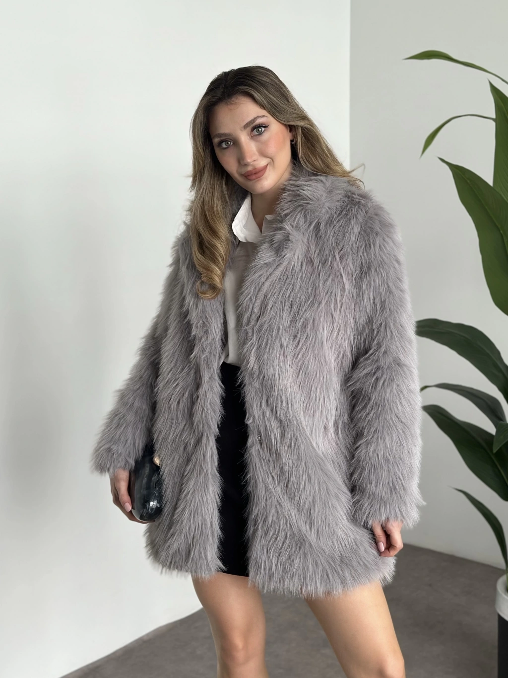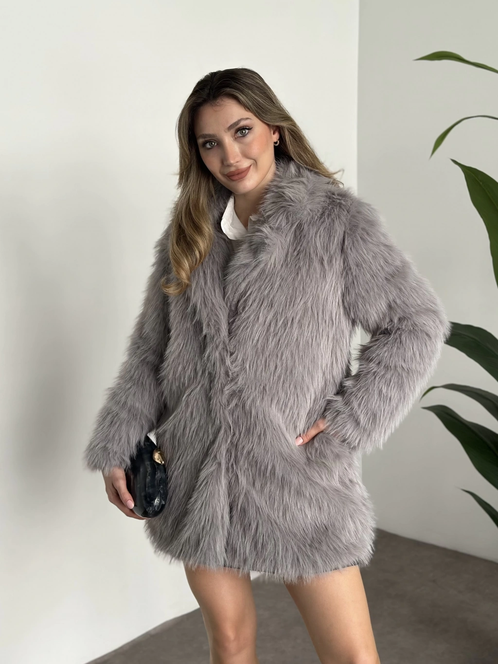 Dışı süet içi tamamen peluş rahat kesim mont taş