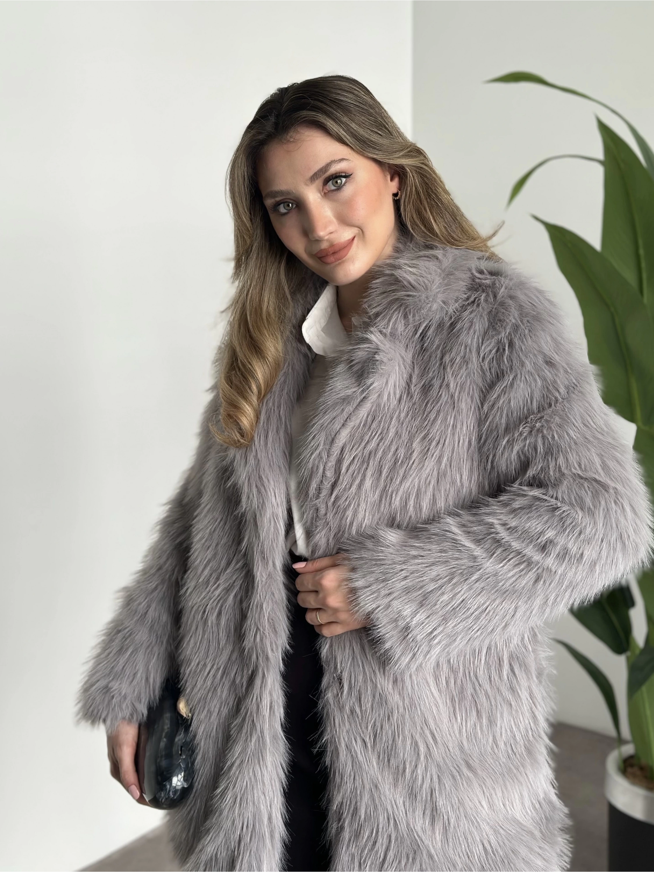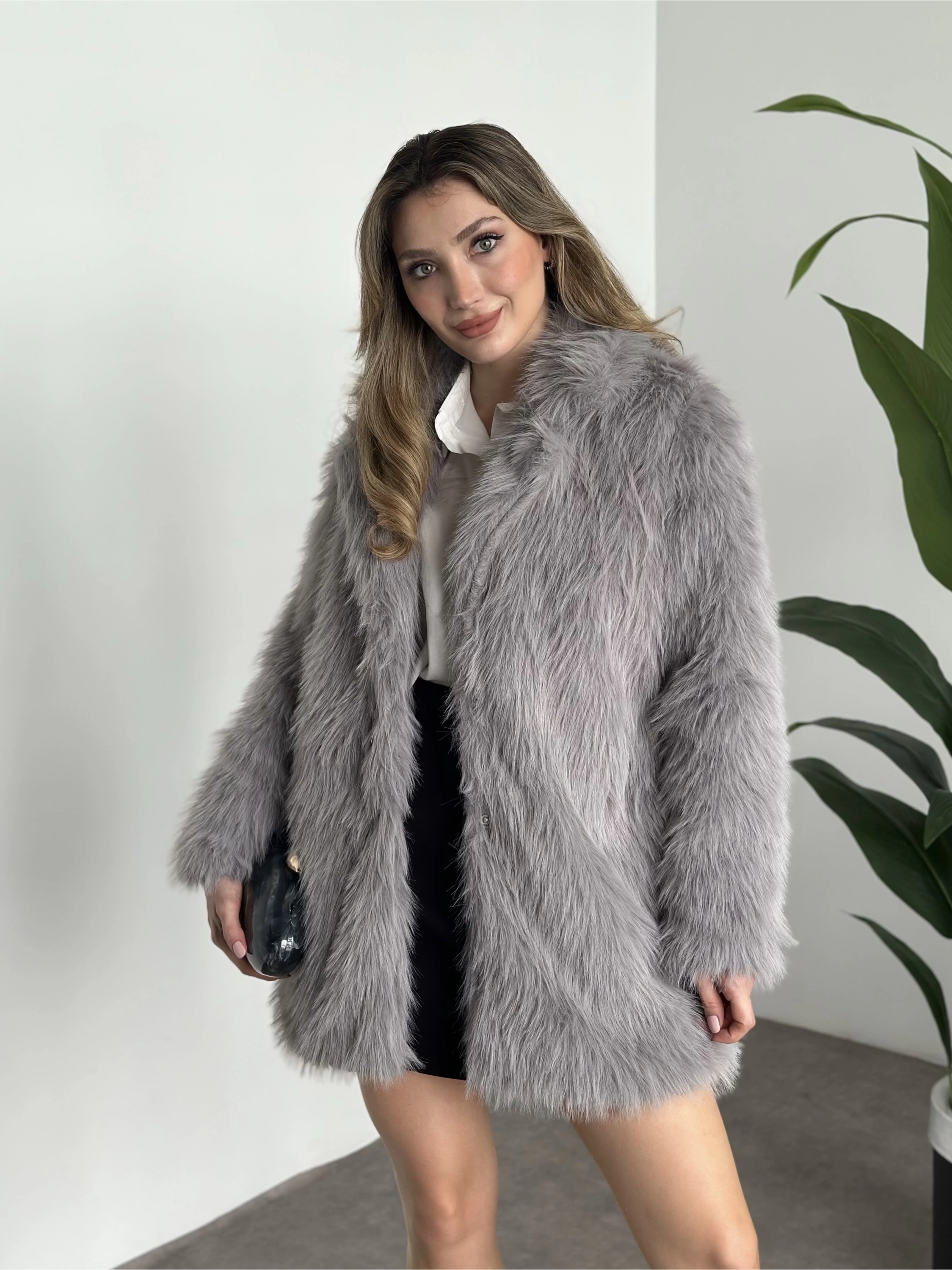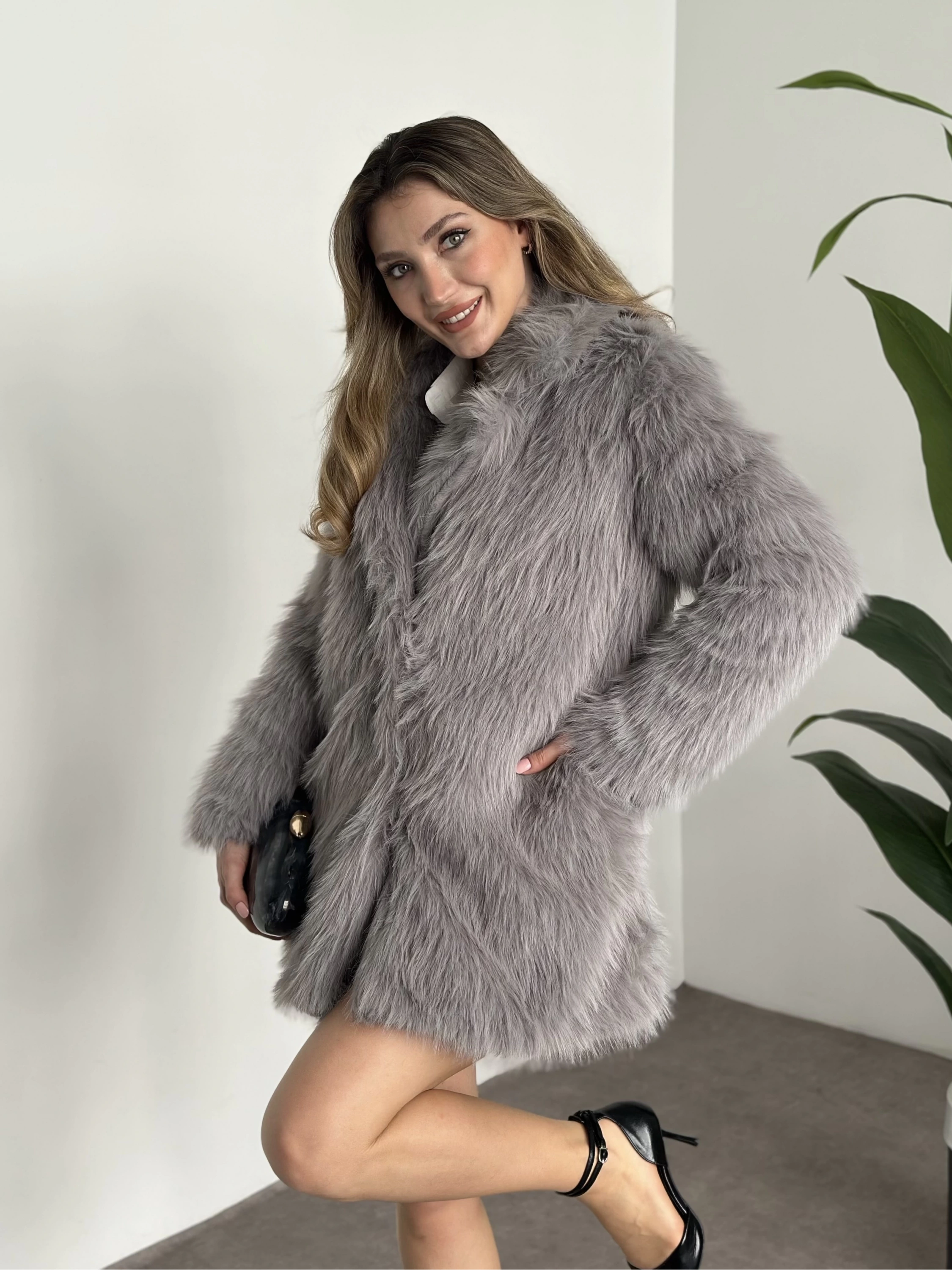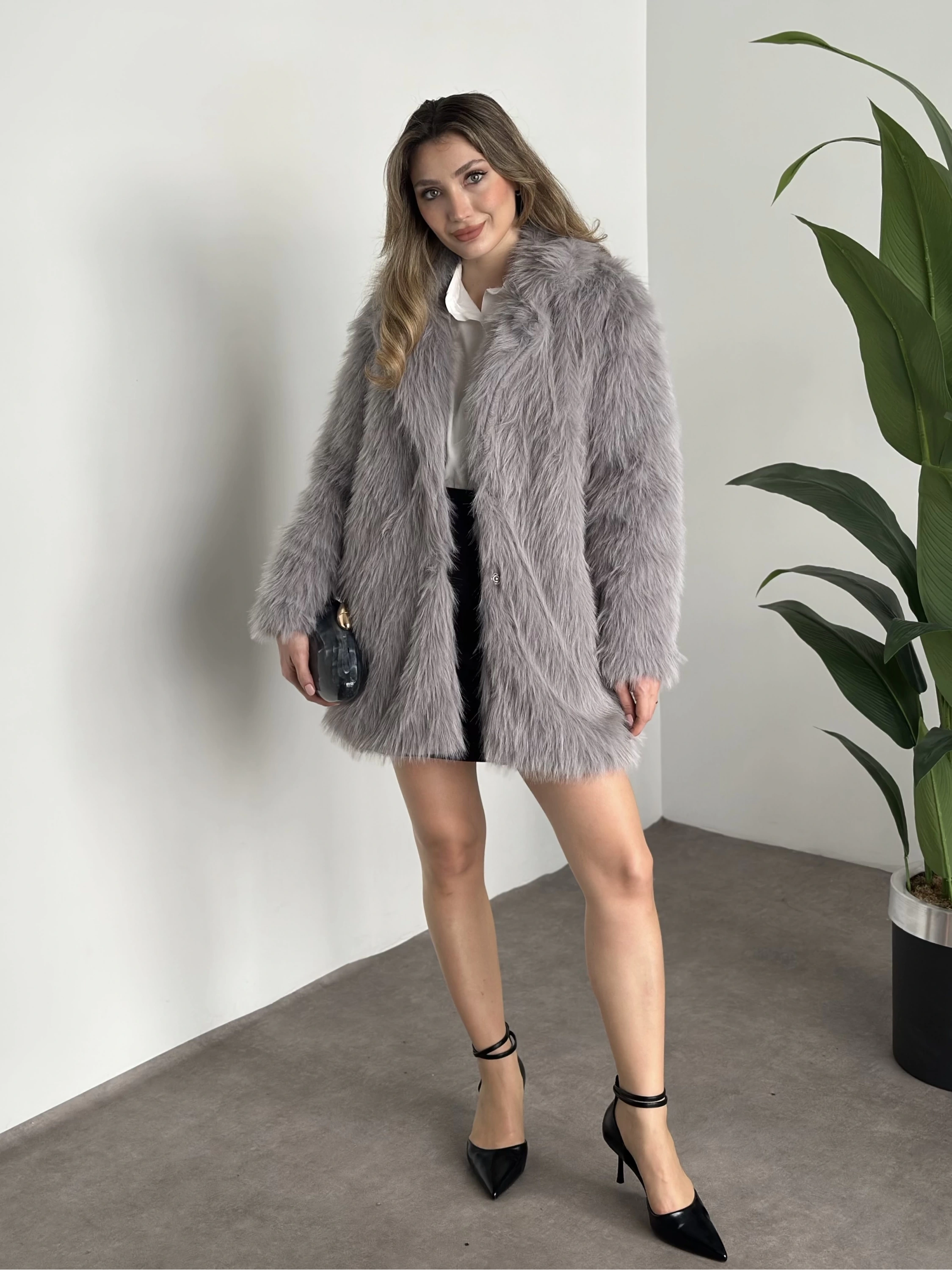 Ara boy cepli kürk kaban gri