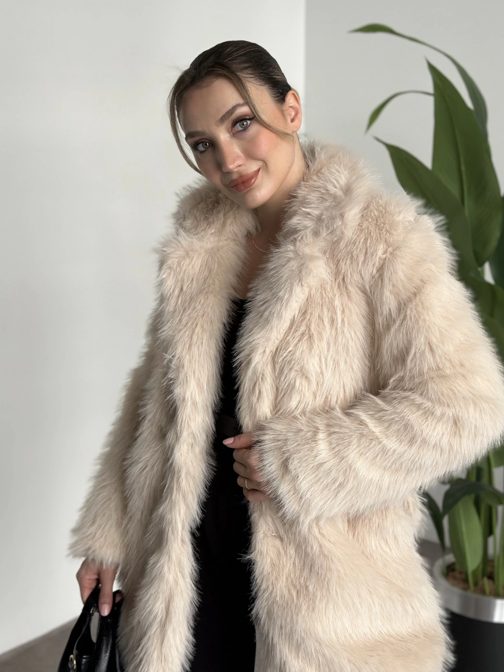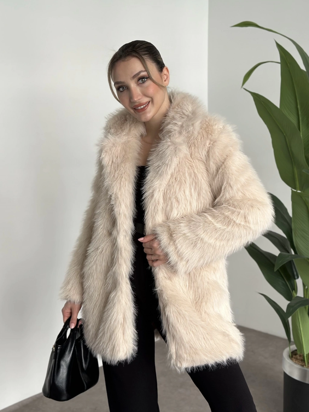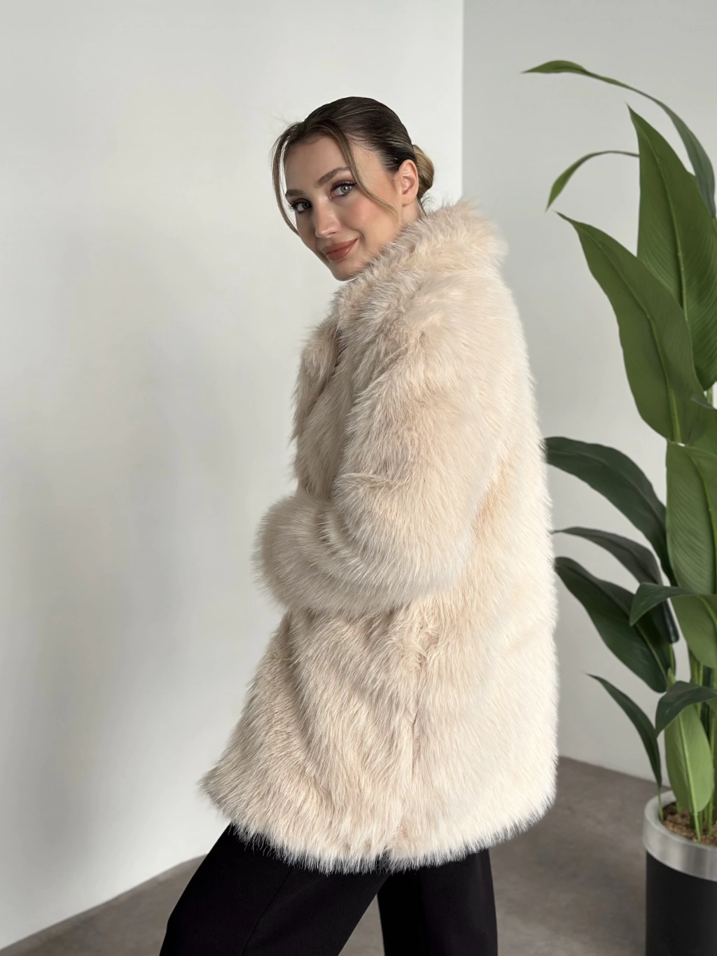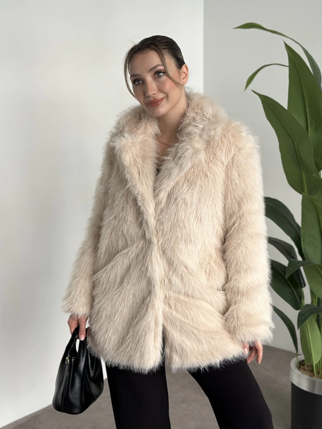 Dışı süet içi tamamen peluş rahat kesim mont taş