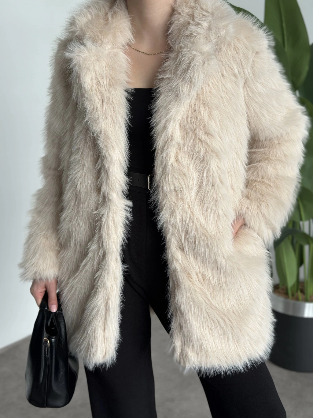 Dokulu süet zr model içi krem peluşlu oversize mont siyah