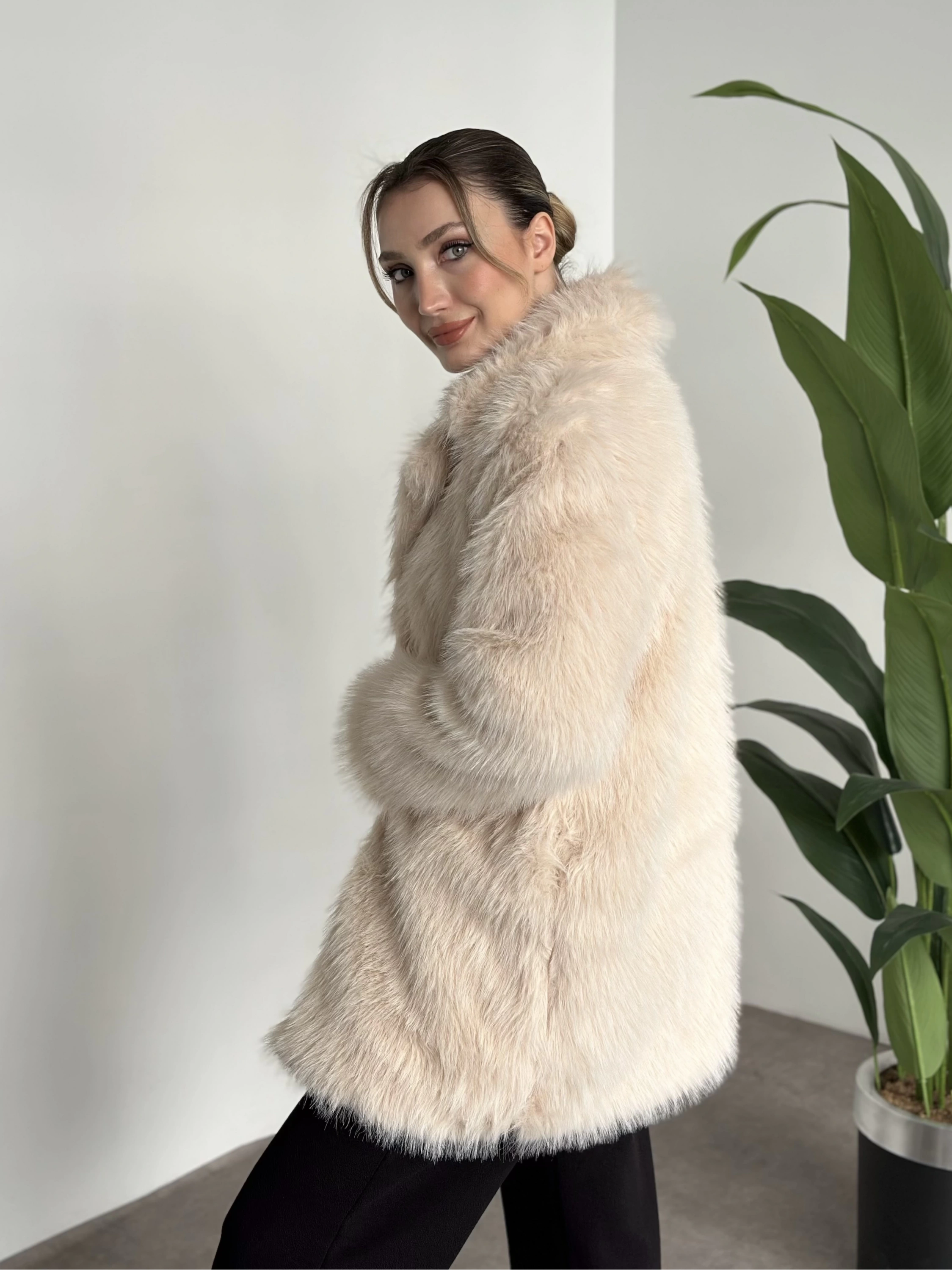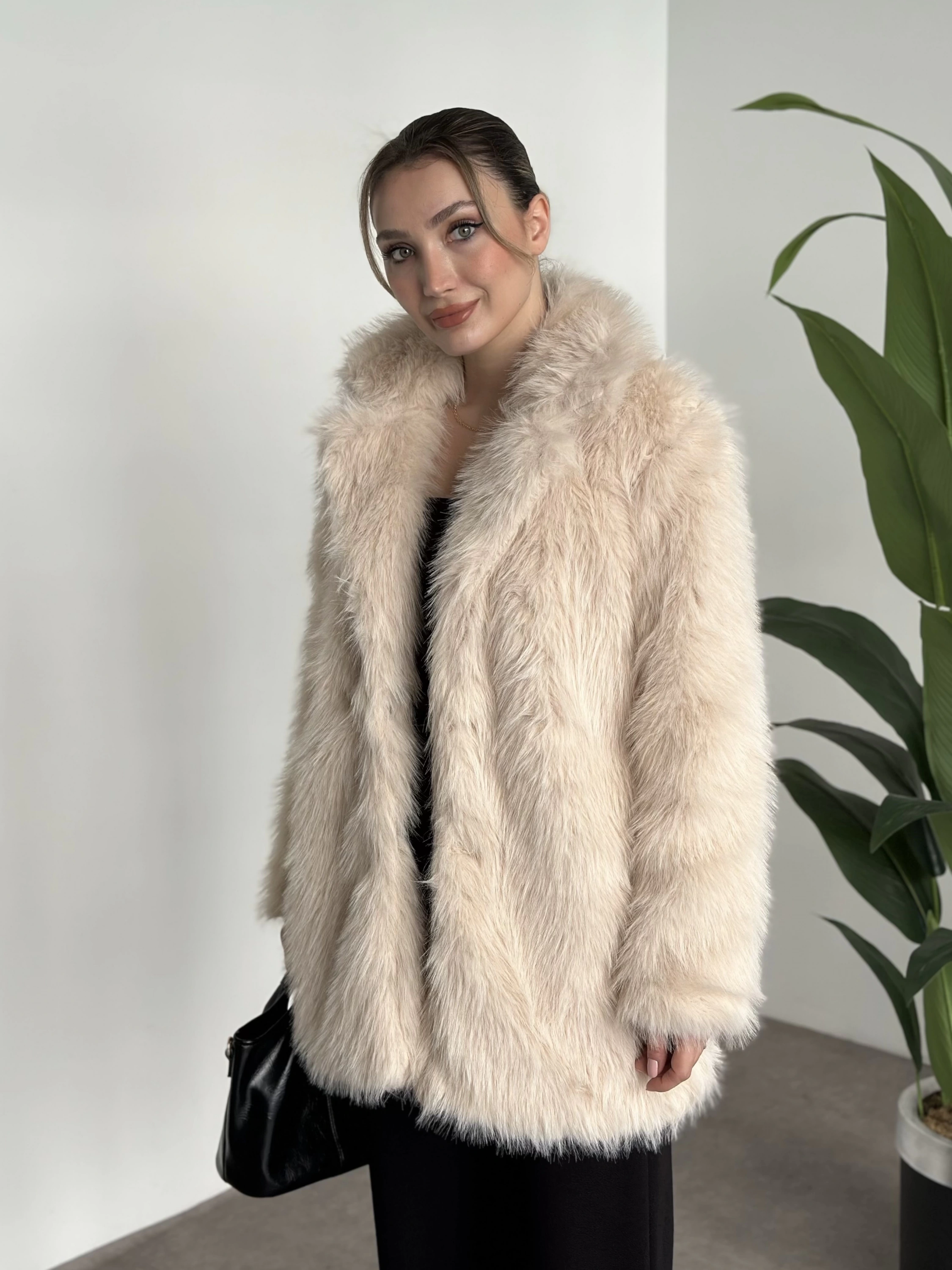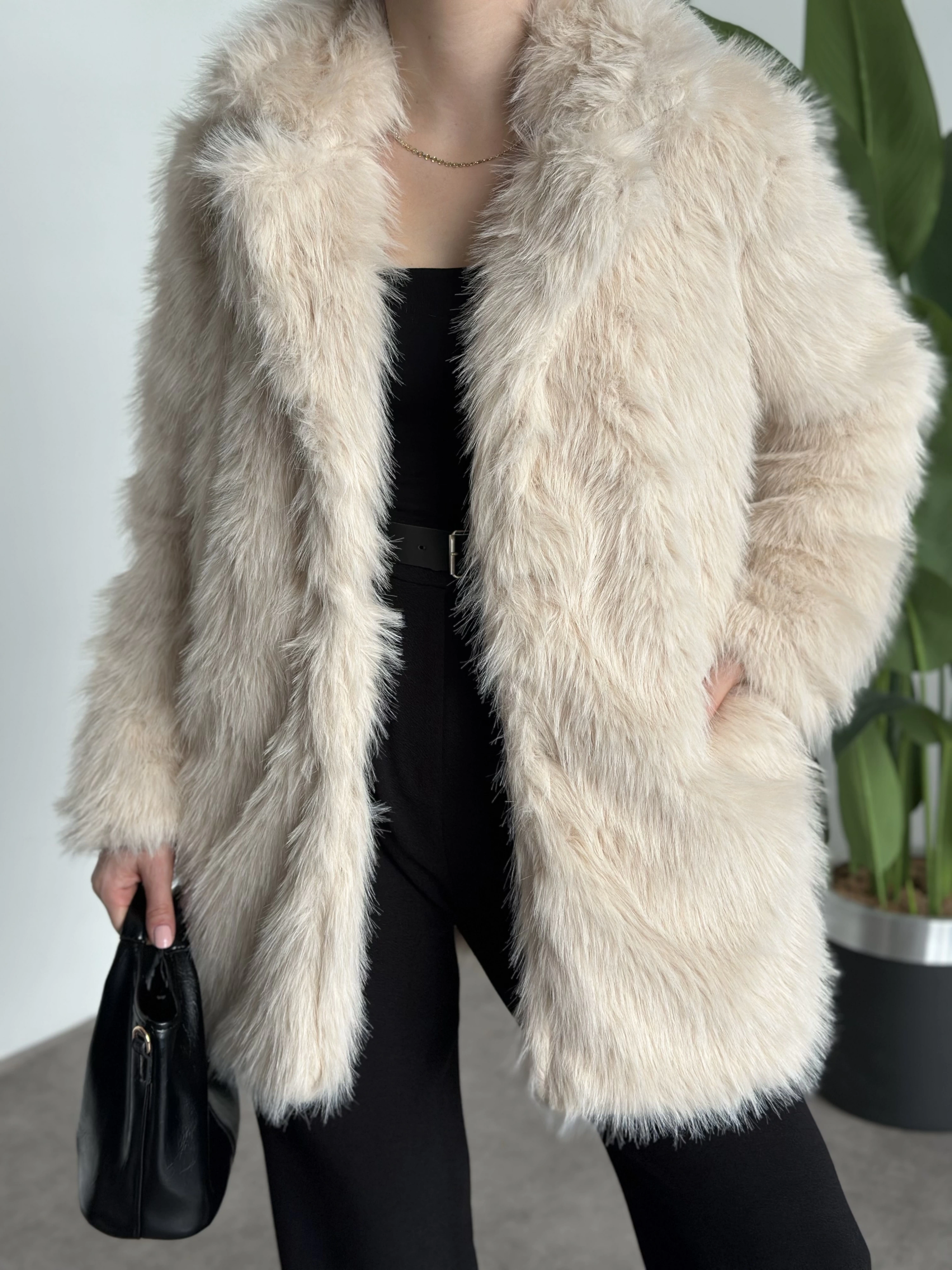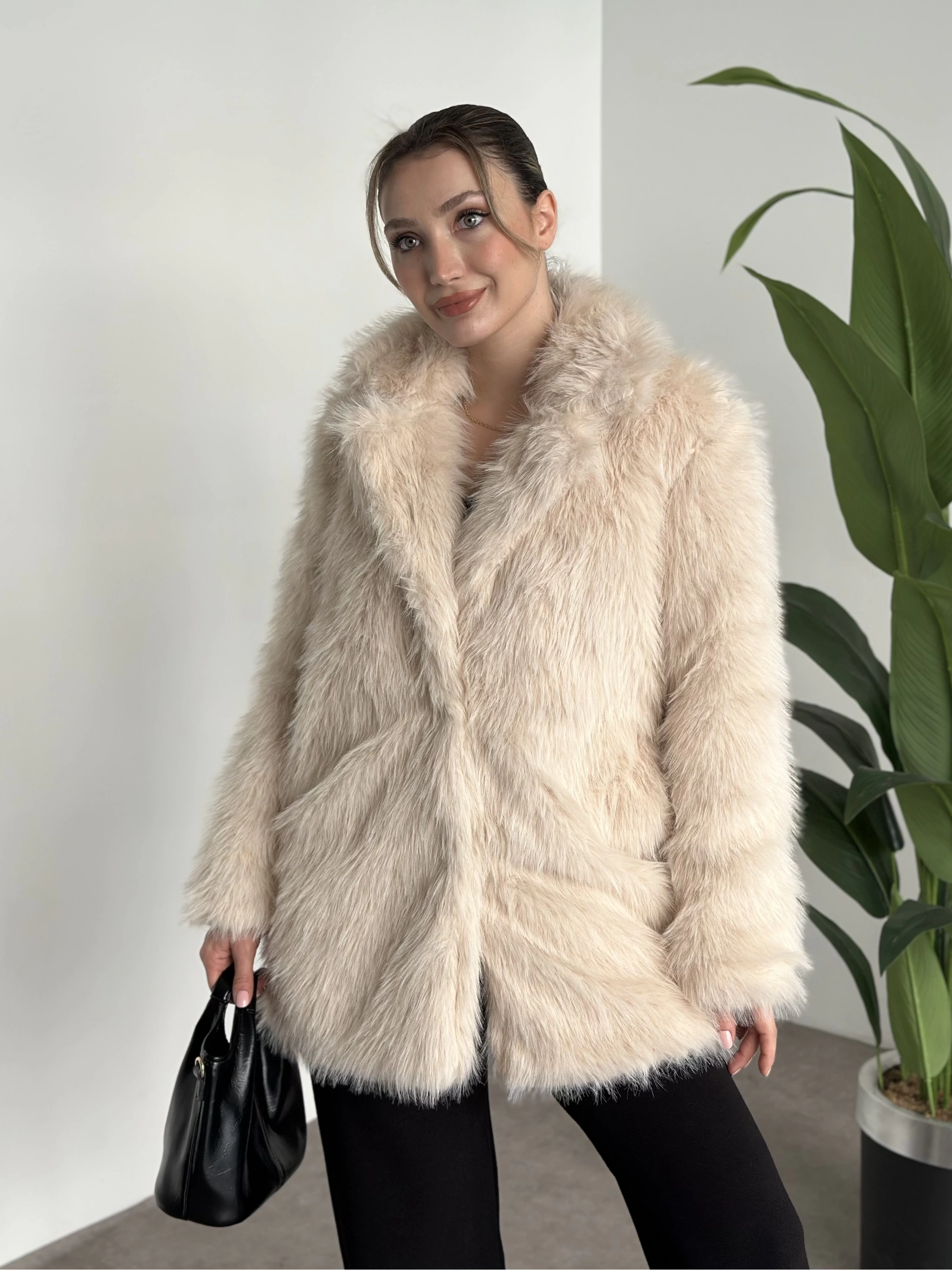 Dokulu süet içi peluşlu oversize marka model mont kahve