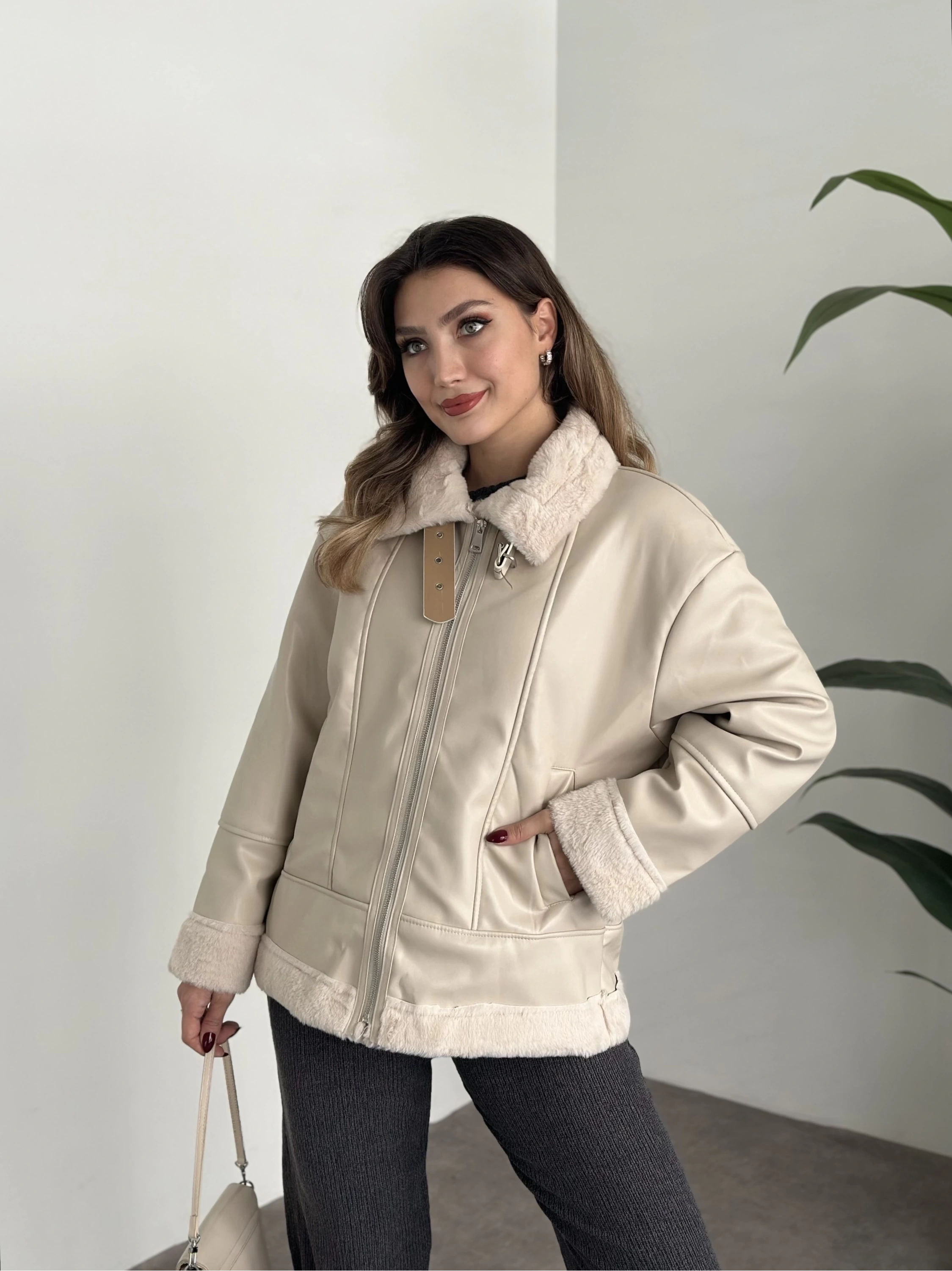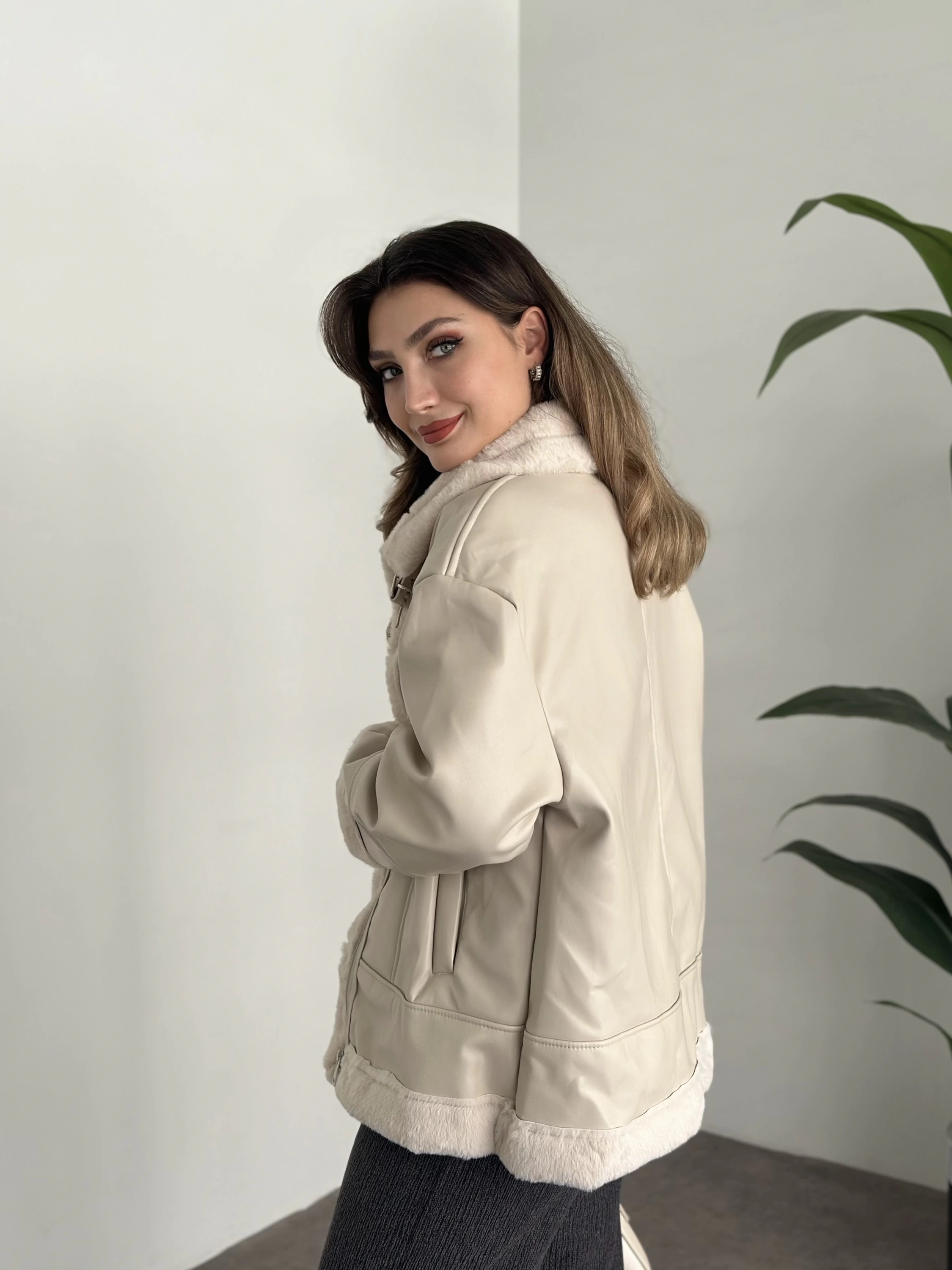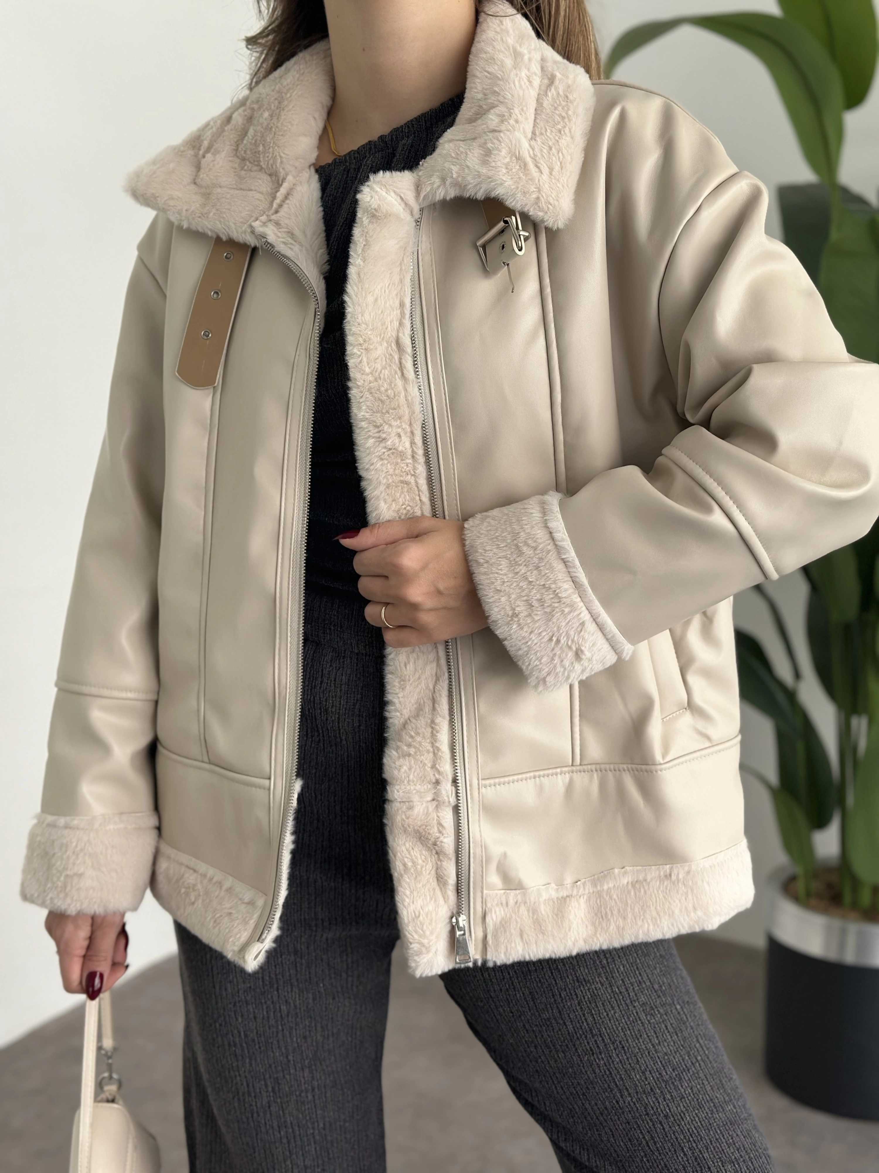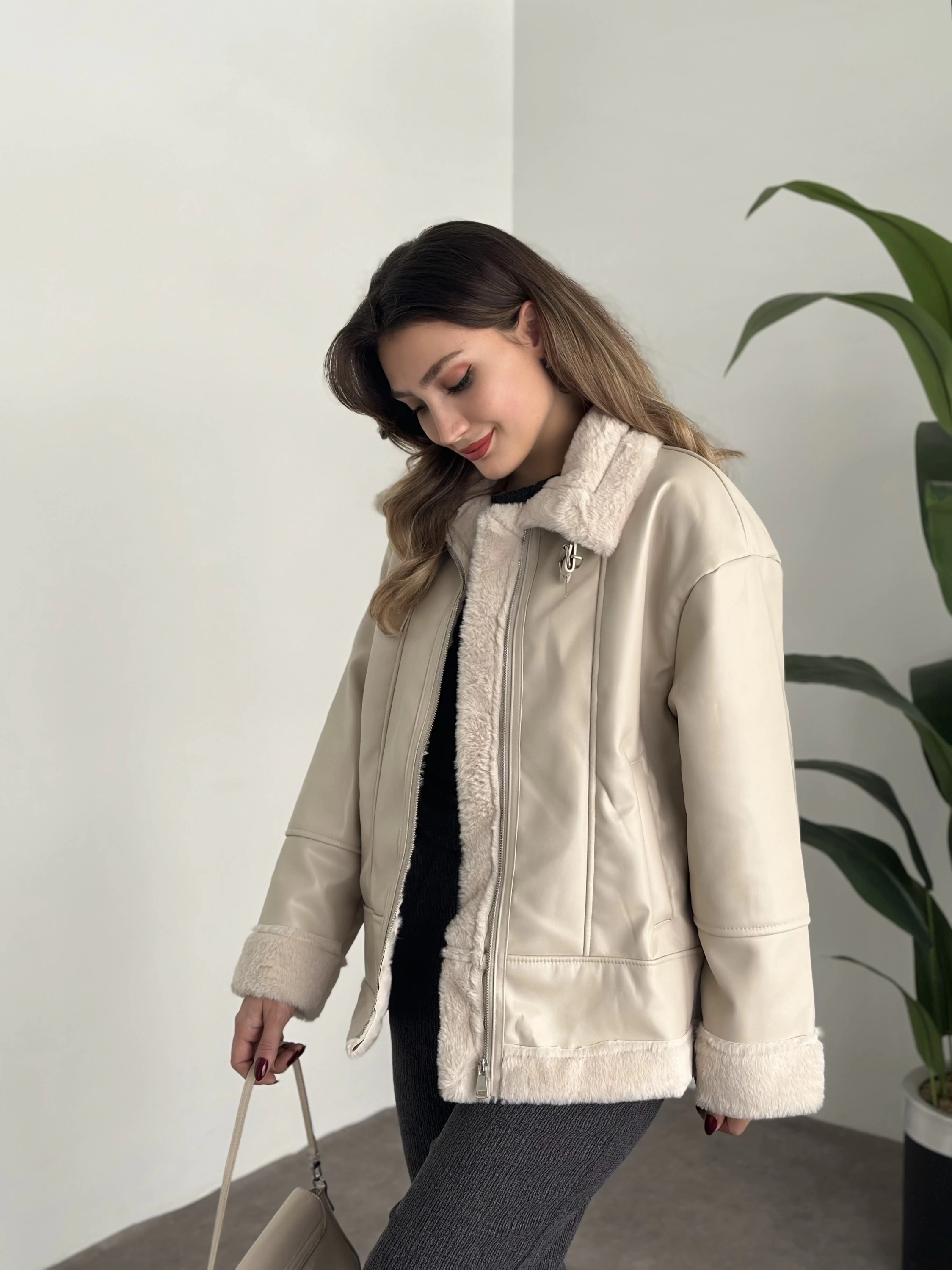 Dokulu süet içi peluşlu oversize marka model mont kahve