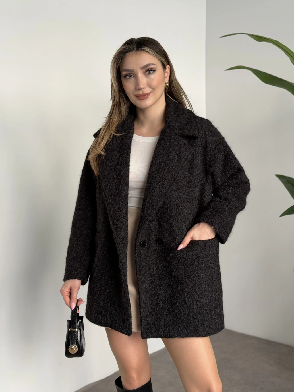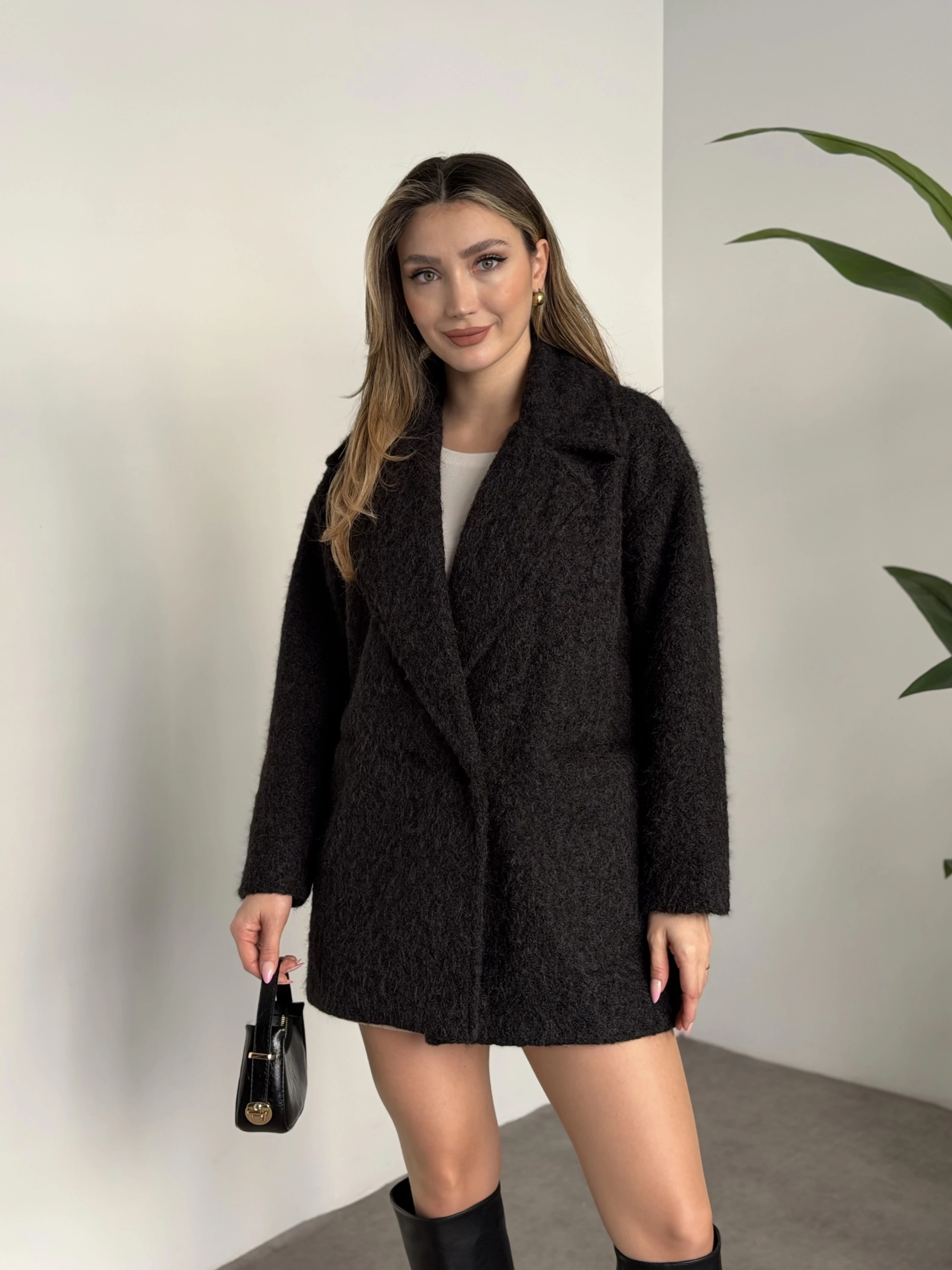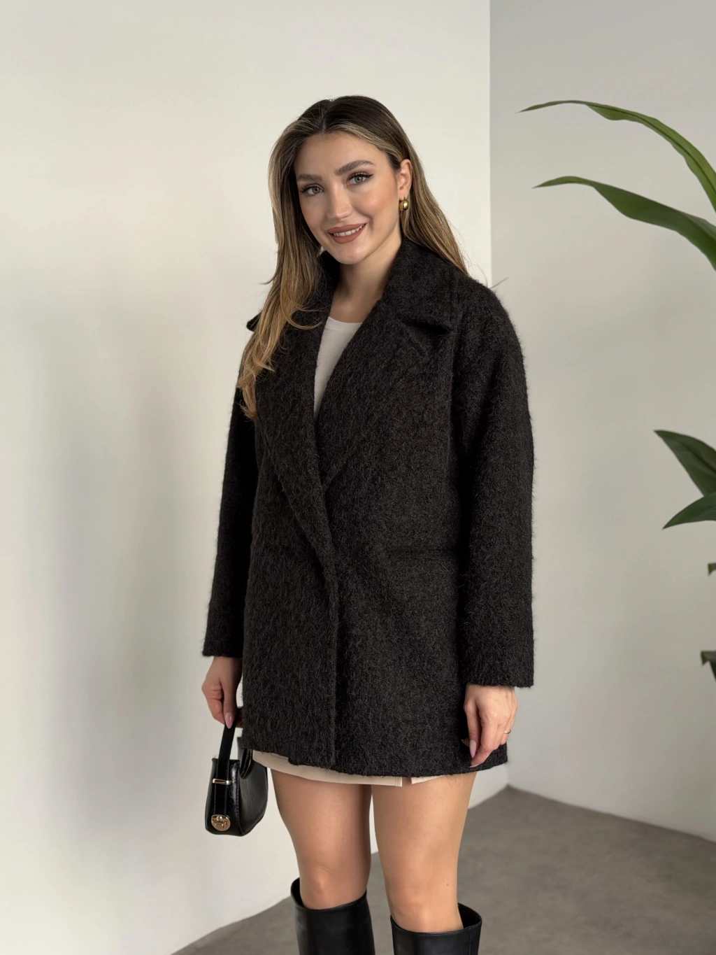 Dokulu süet içi peluşlu oversize marka model mont siyah