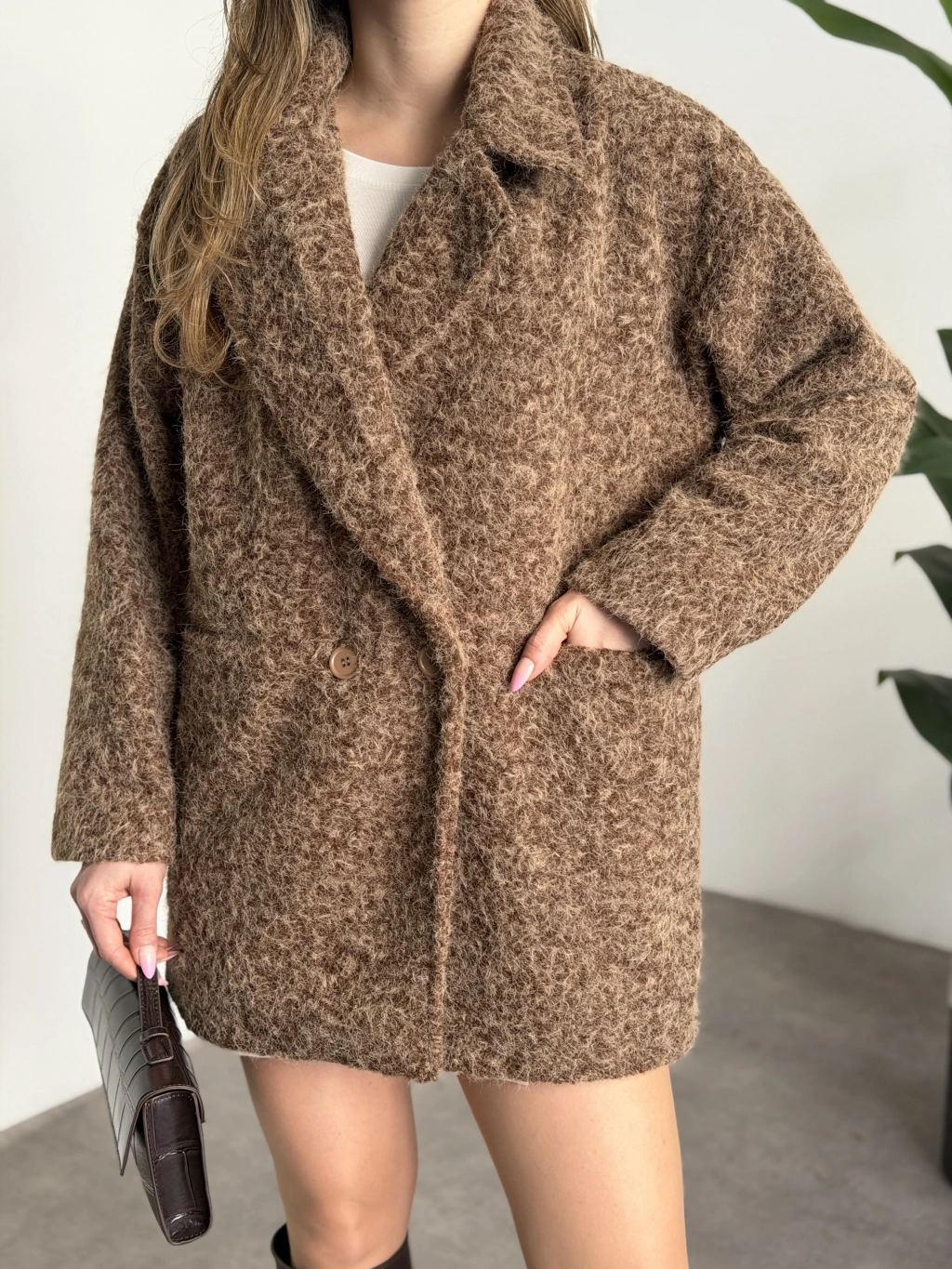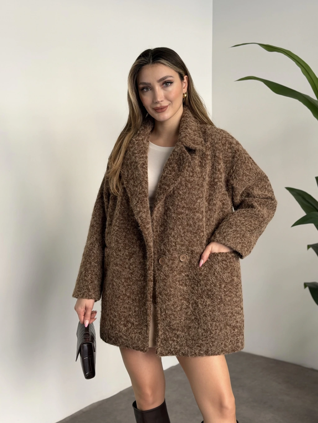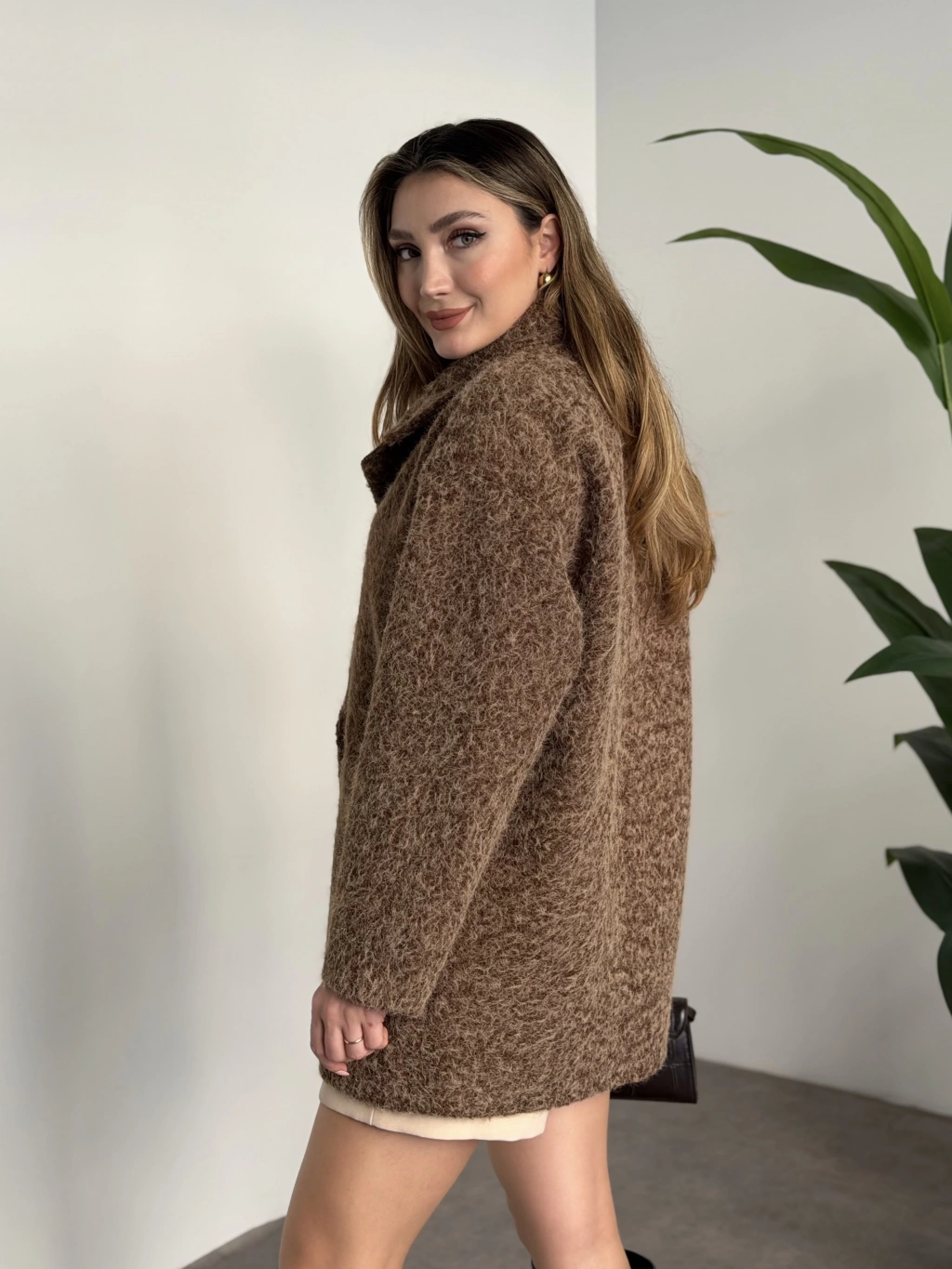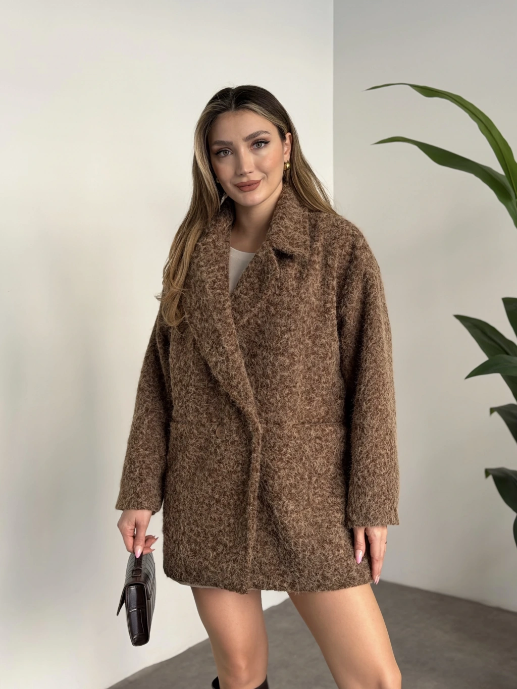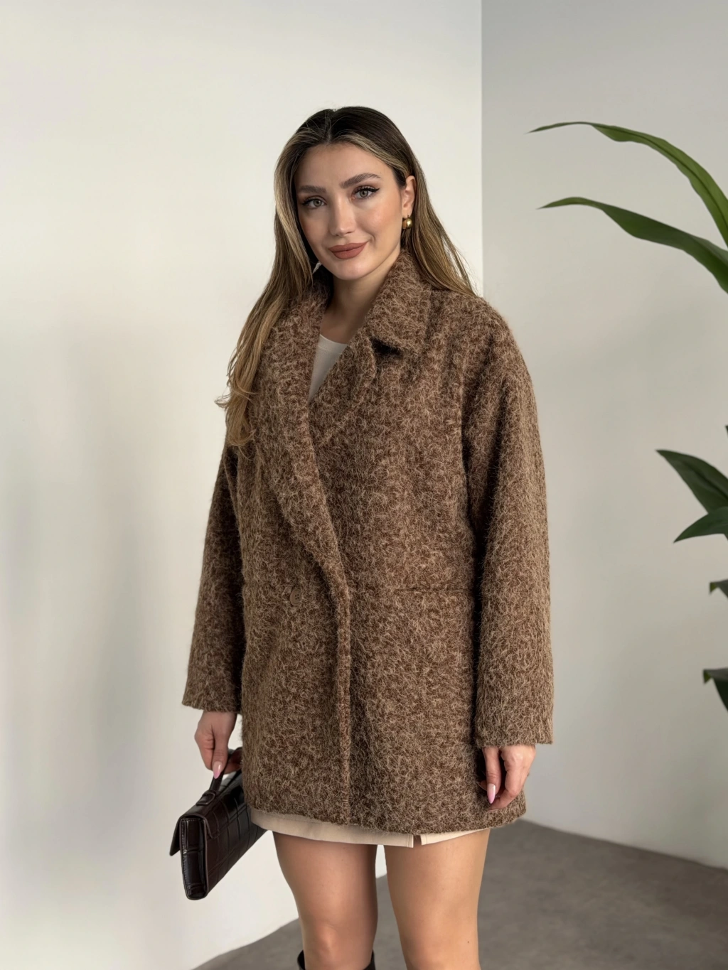 Dokulu süet içi peluşlu oversize marka model mont kahve