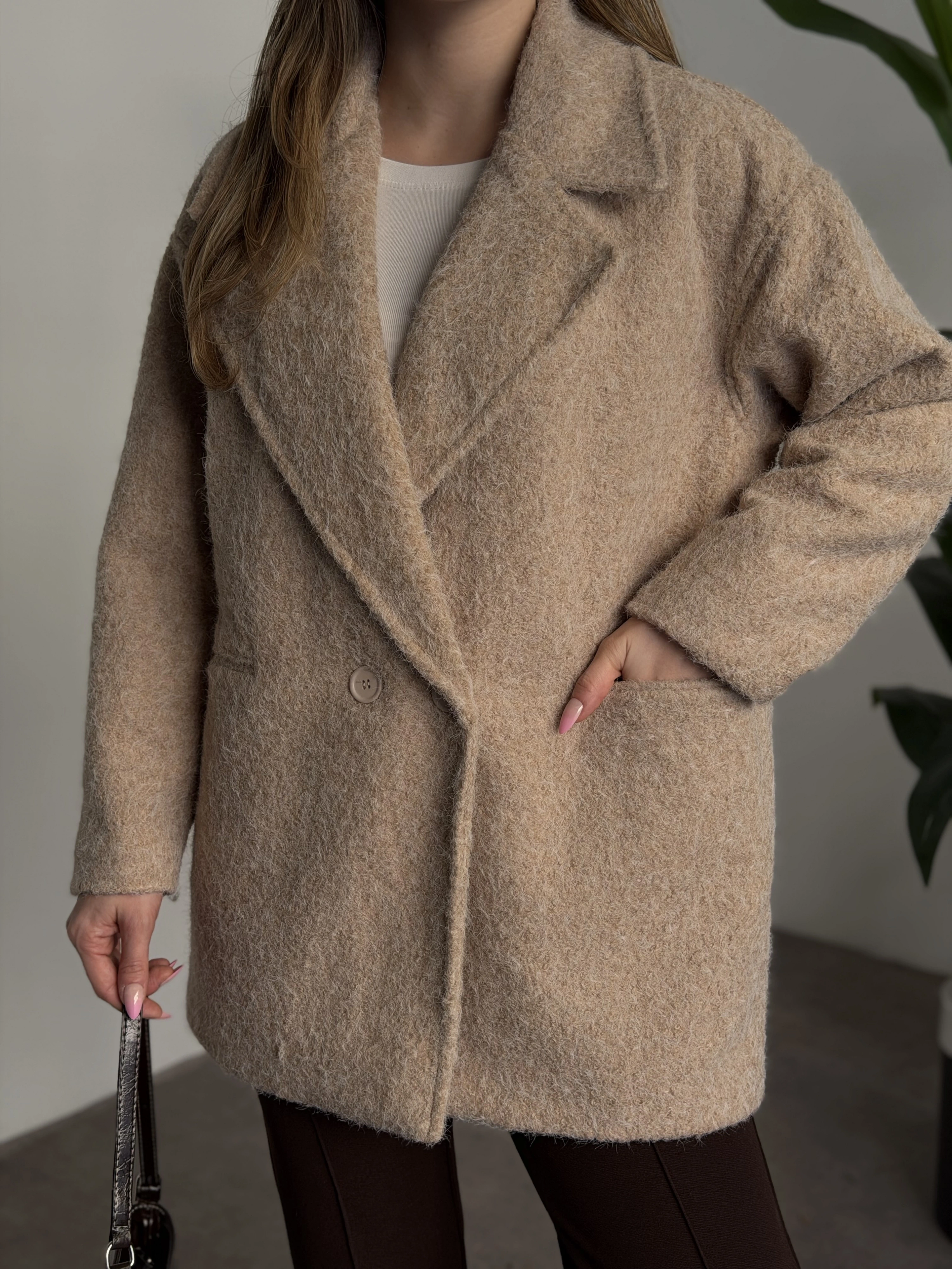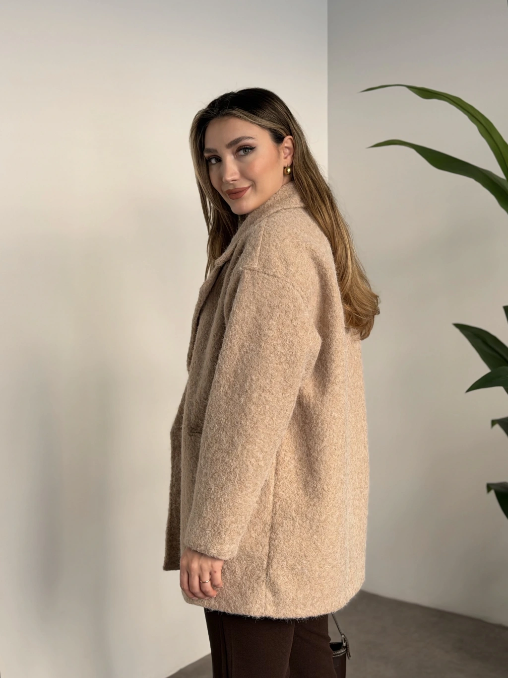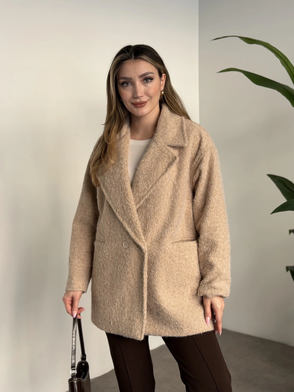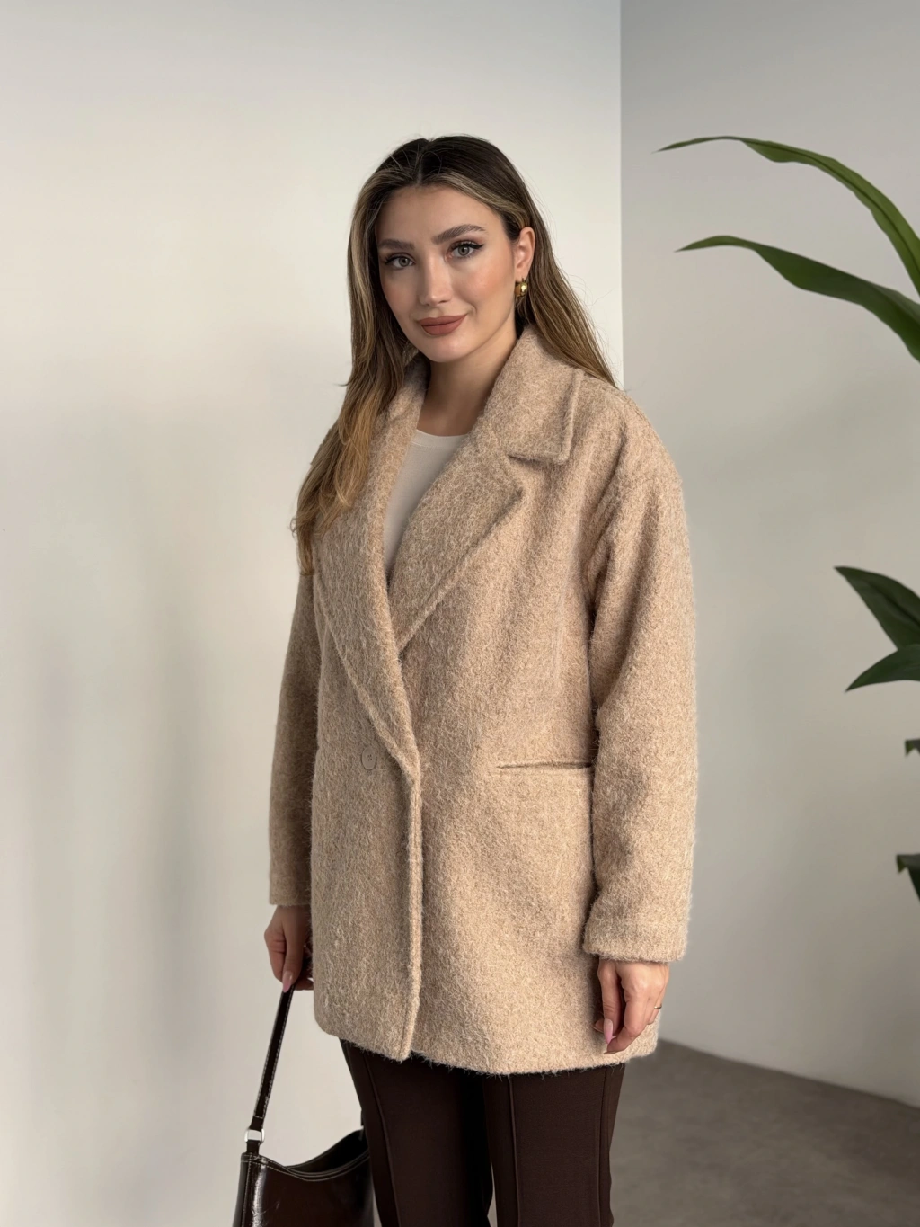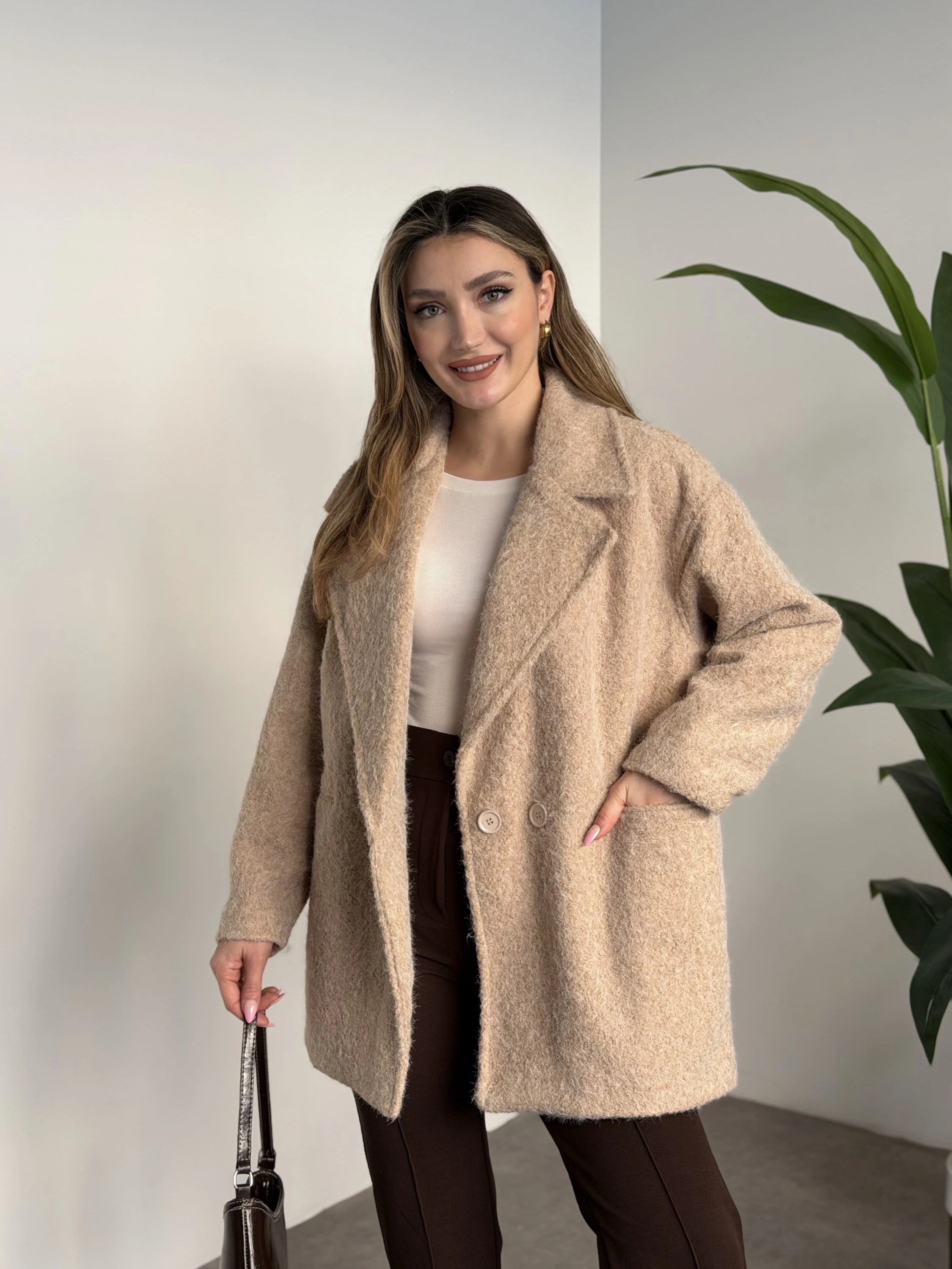Dokulu süet içi peluşlu oversize marka model mont kahve