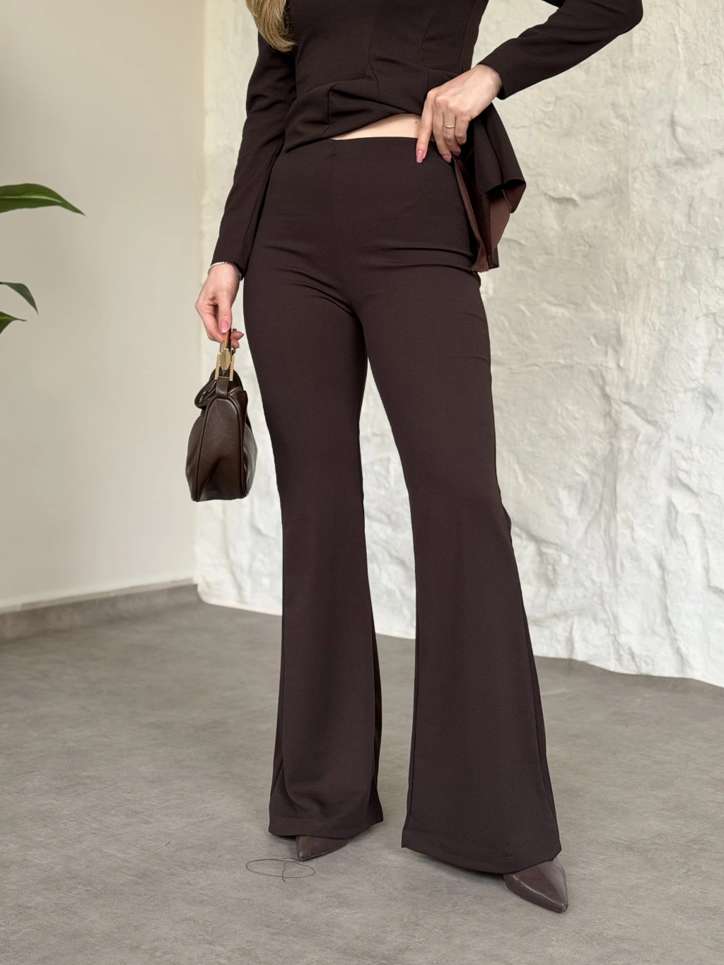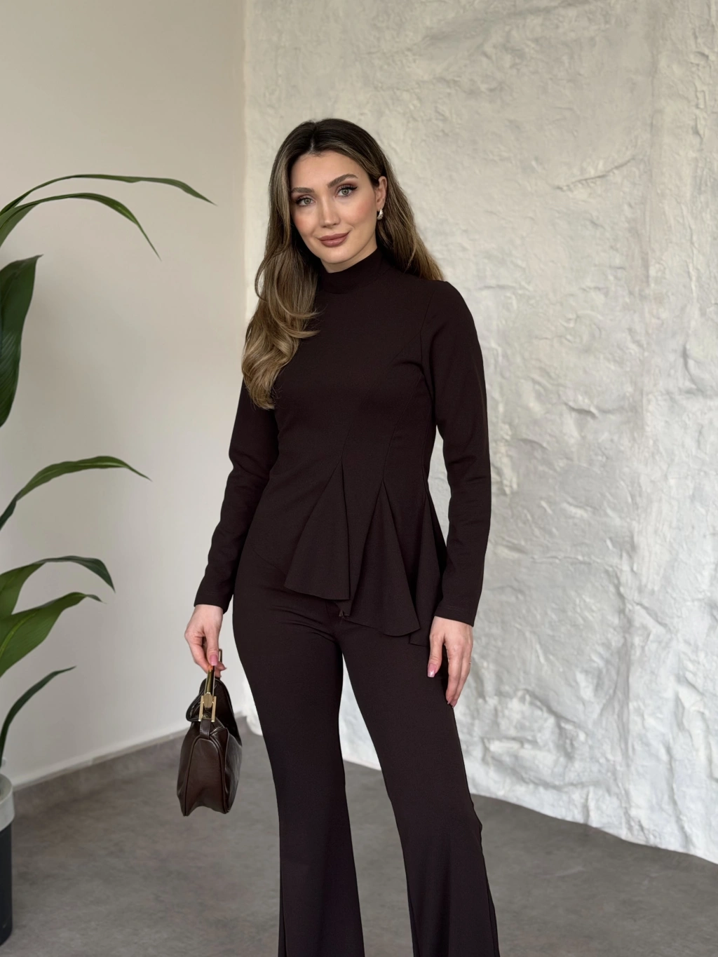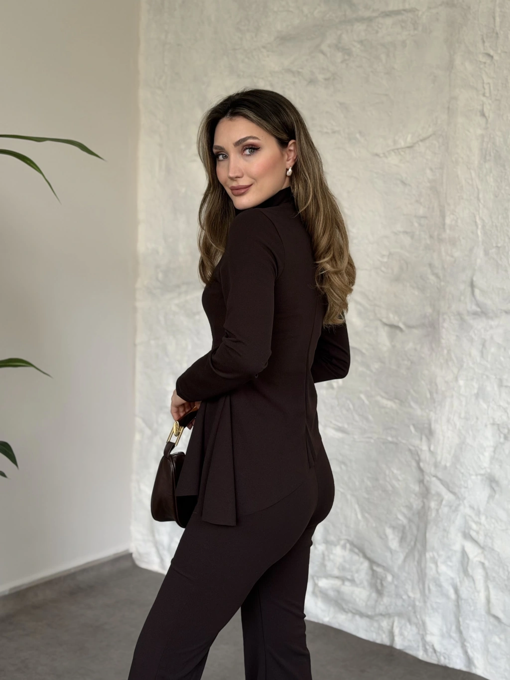 Premium yandan bağlama detaylı double kumaş takım mürdüm