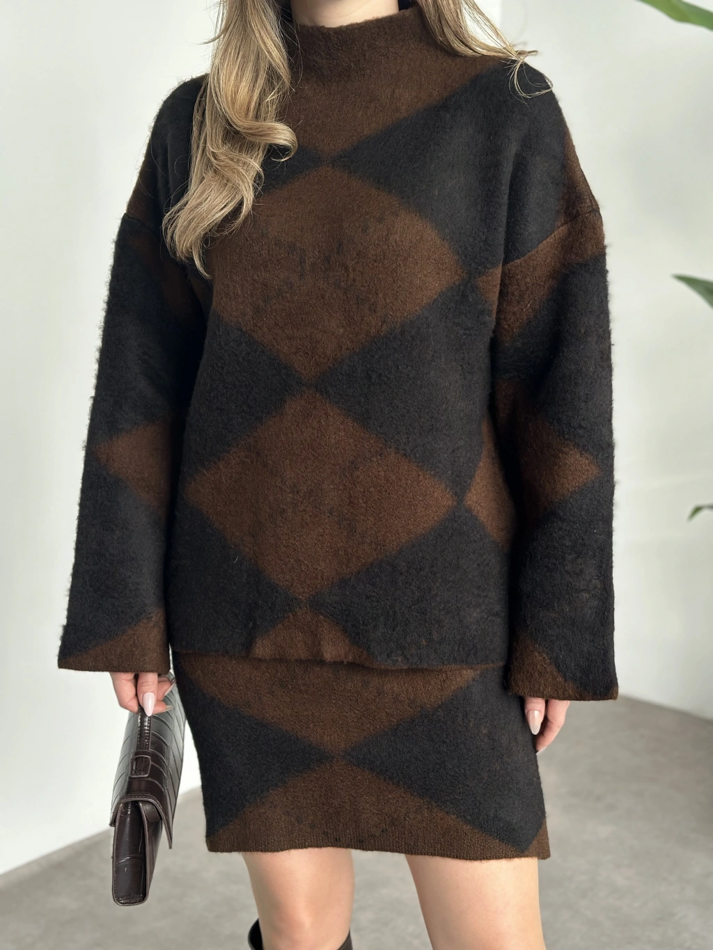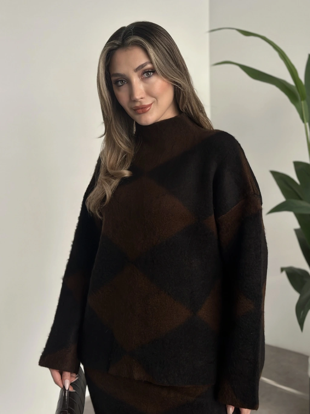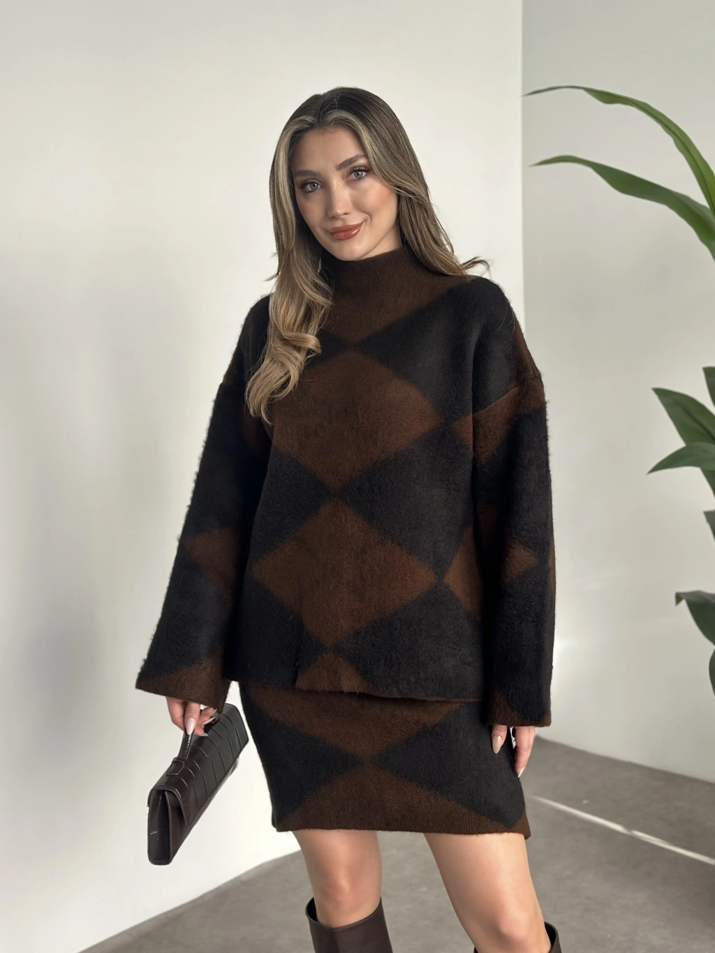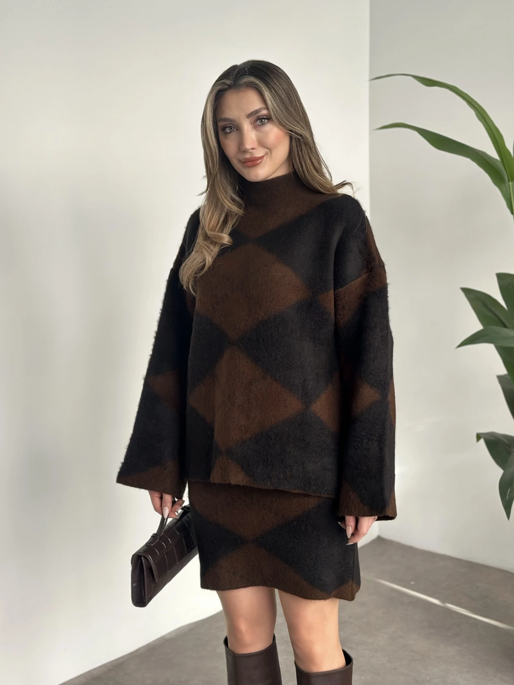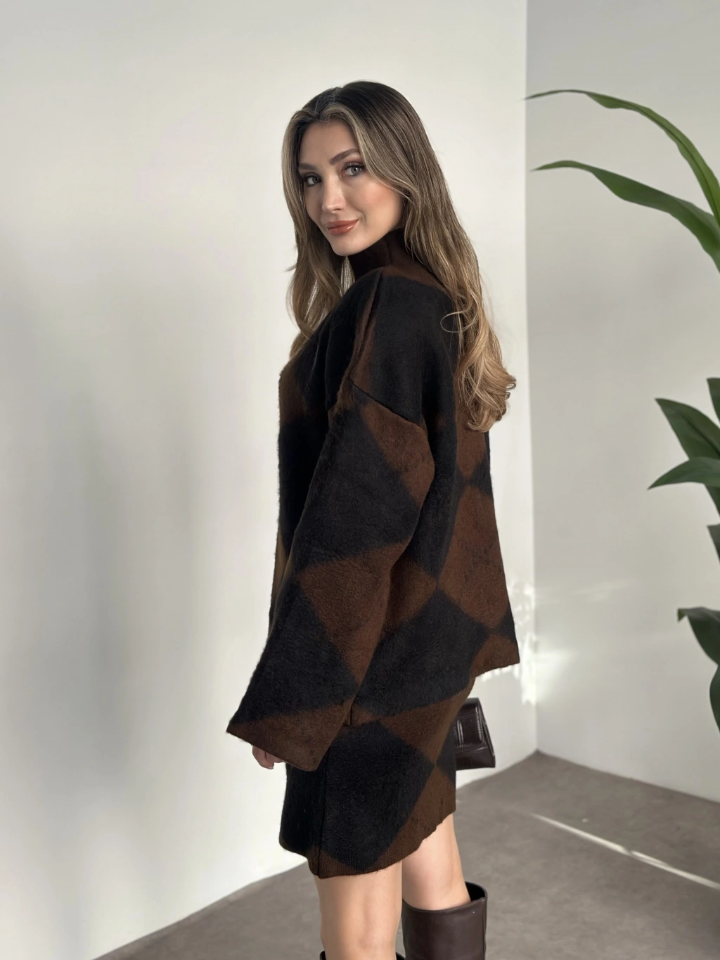 Sırtı bağlama dekolte detaylı tensel kumaş takım vizon