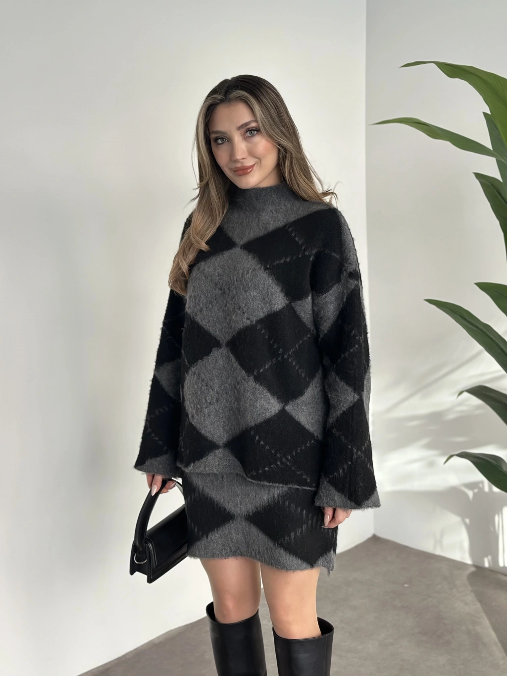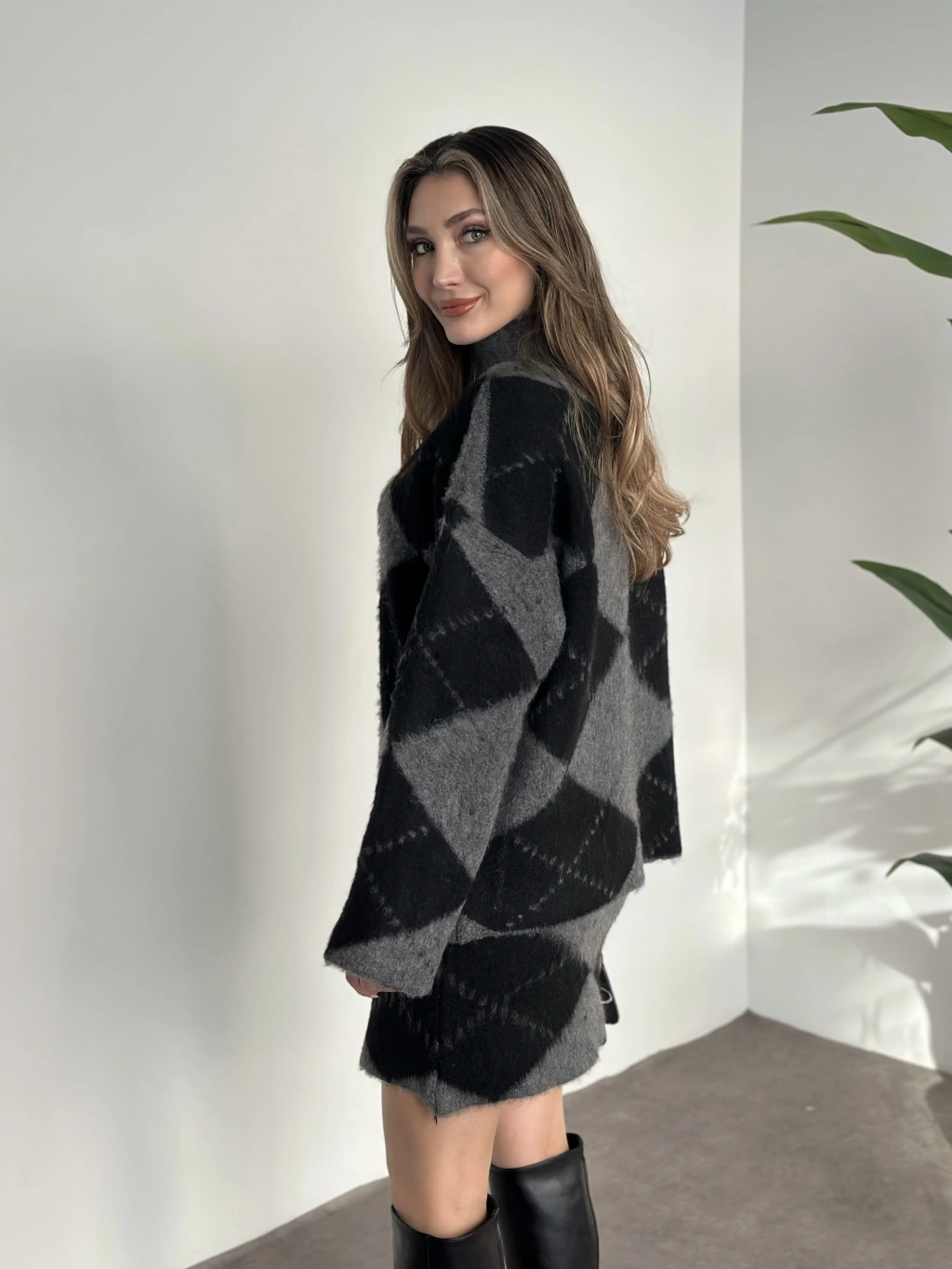 Belinden kuşaklı çıt çıt düğmeli kot takım