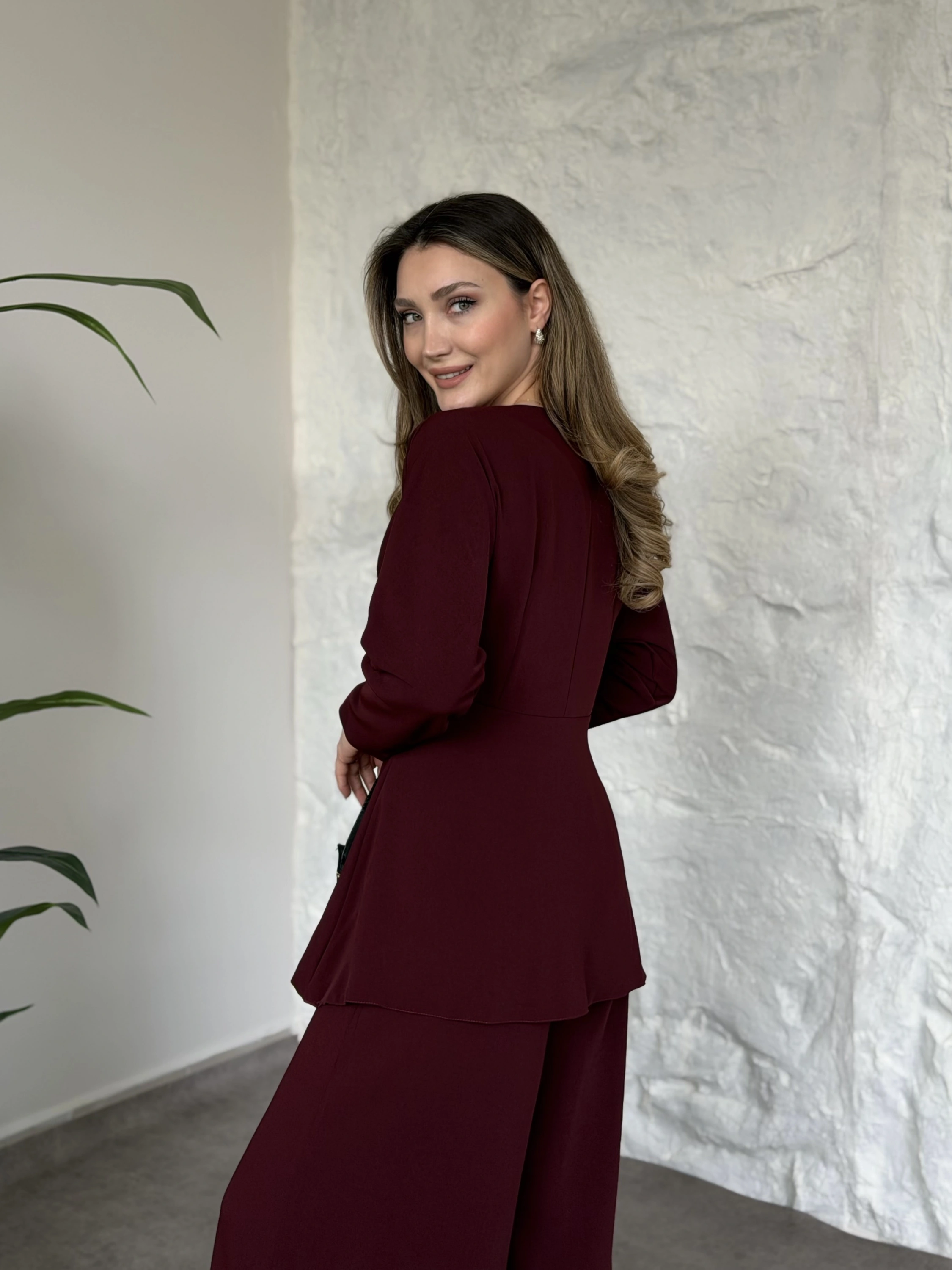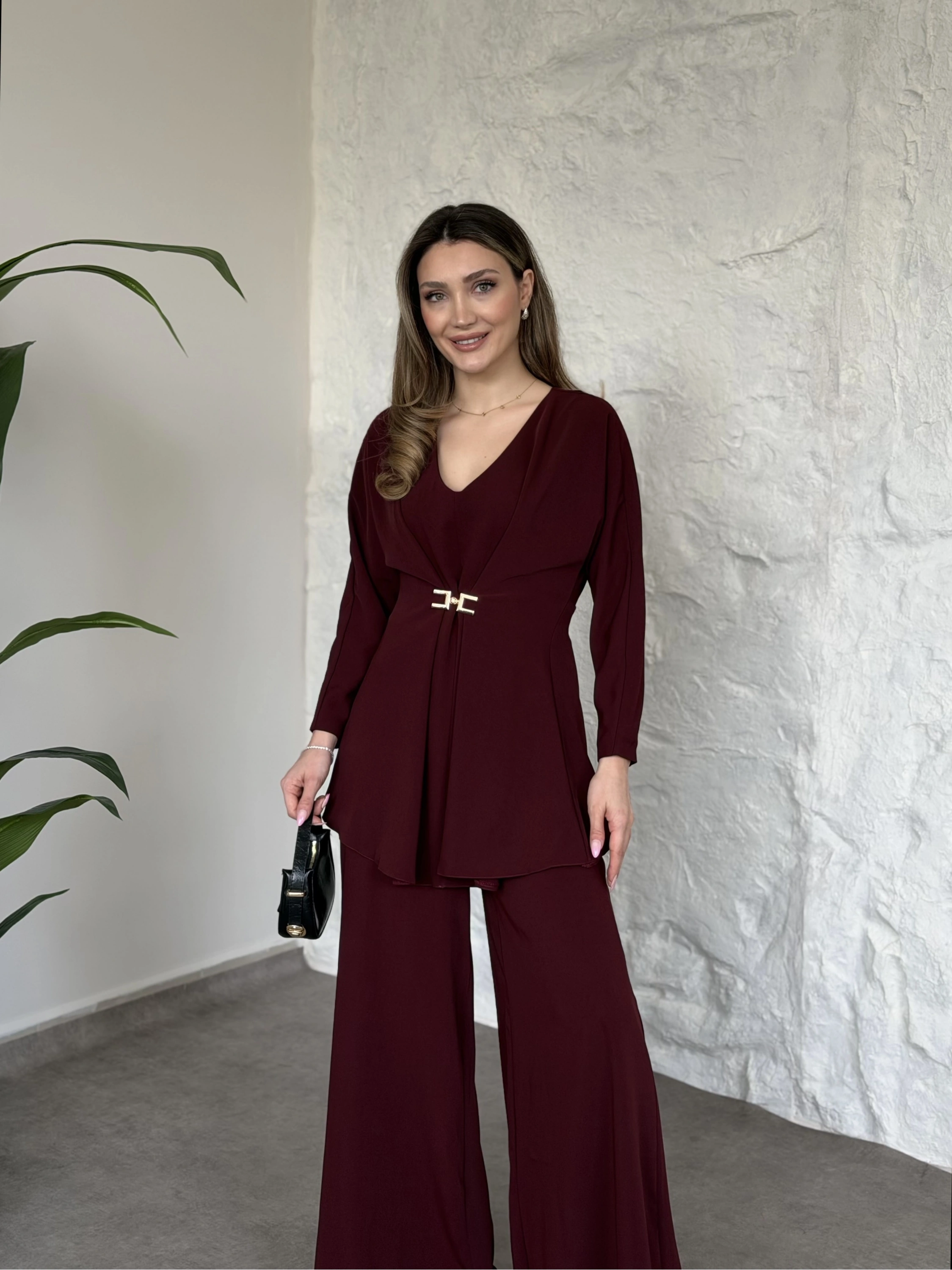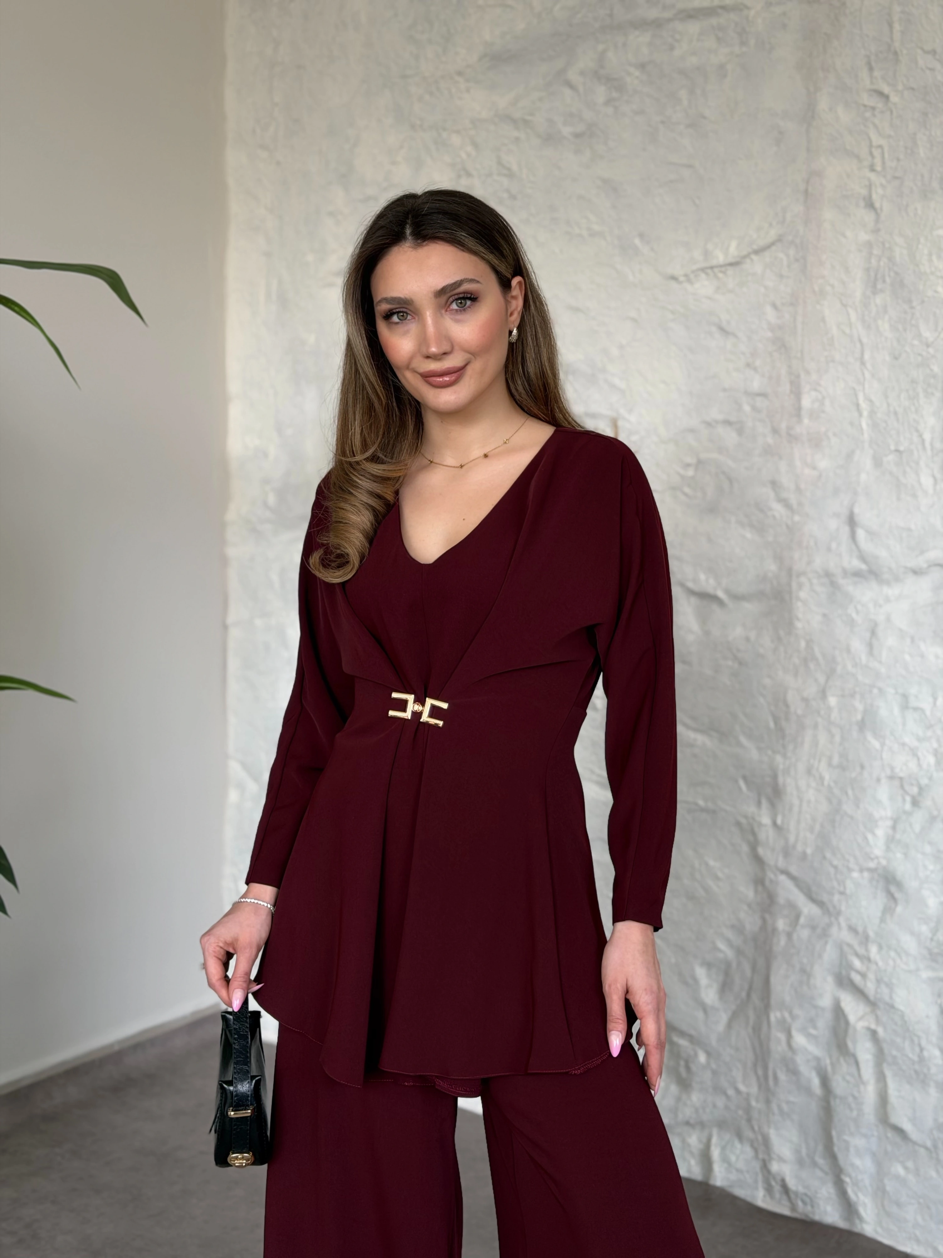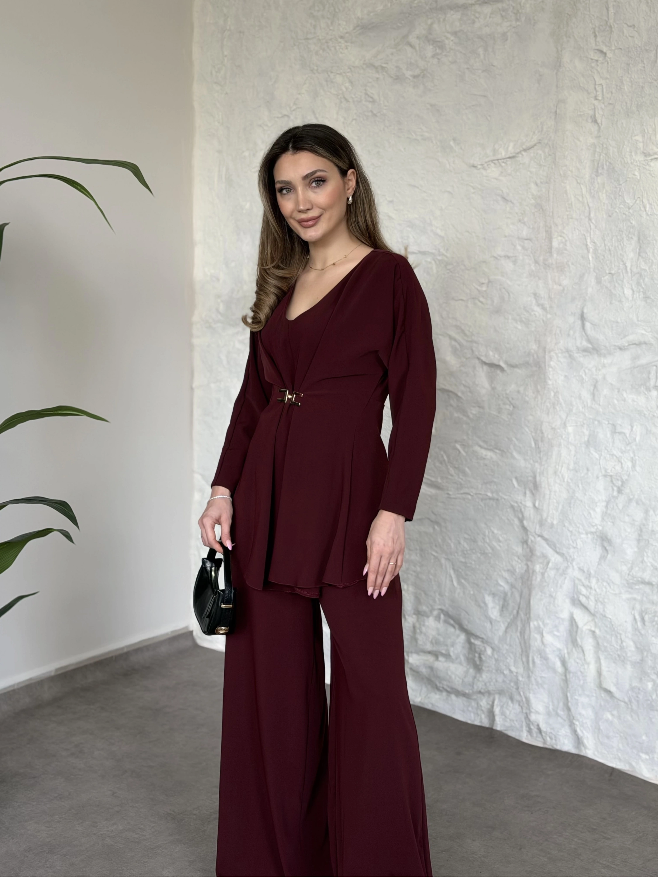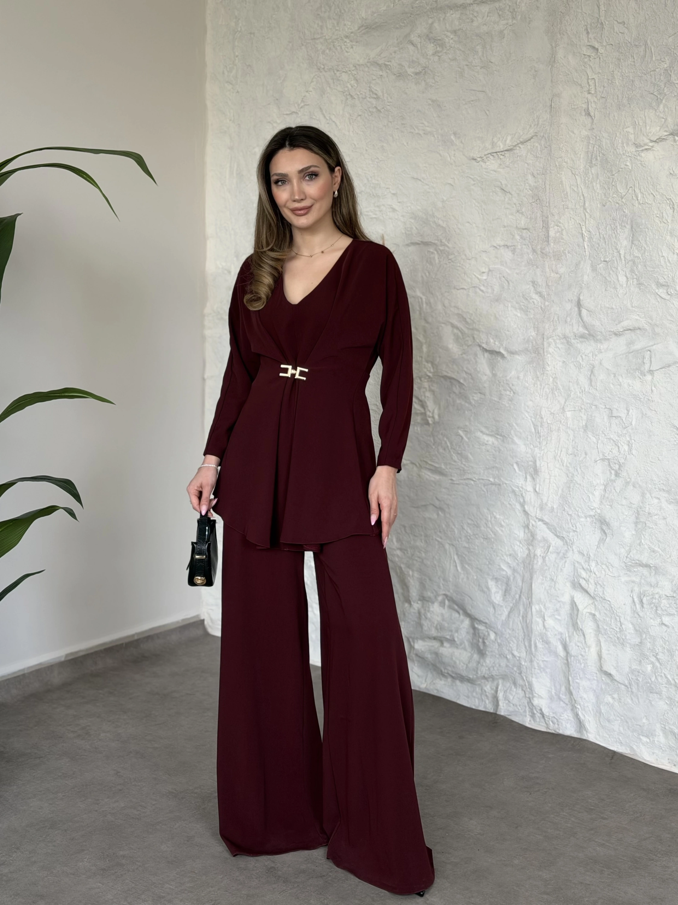 Bel toka detaylı latina takım bordo