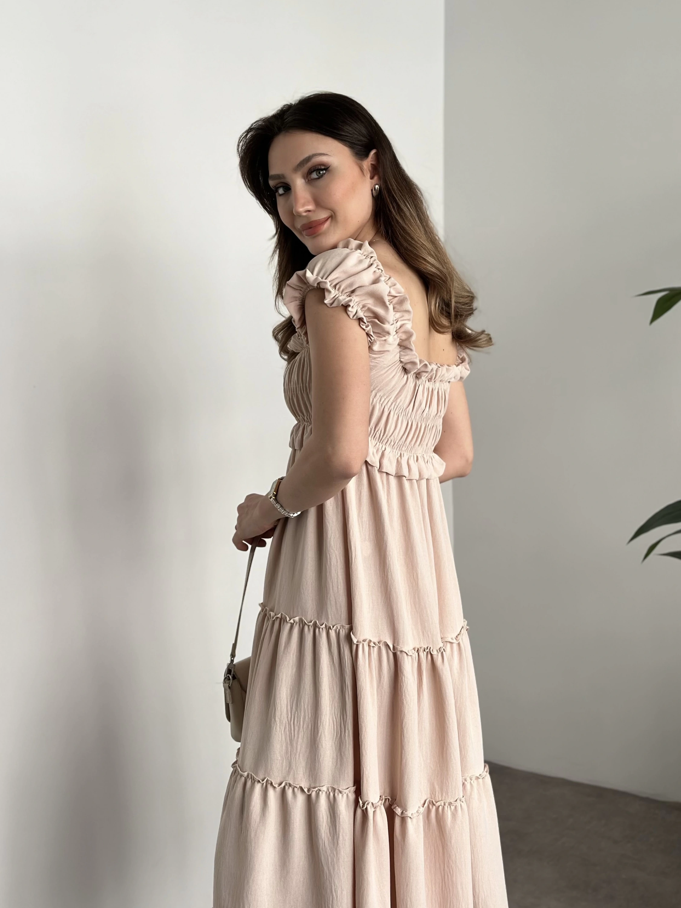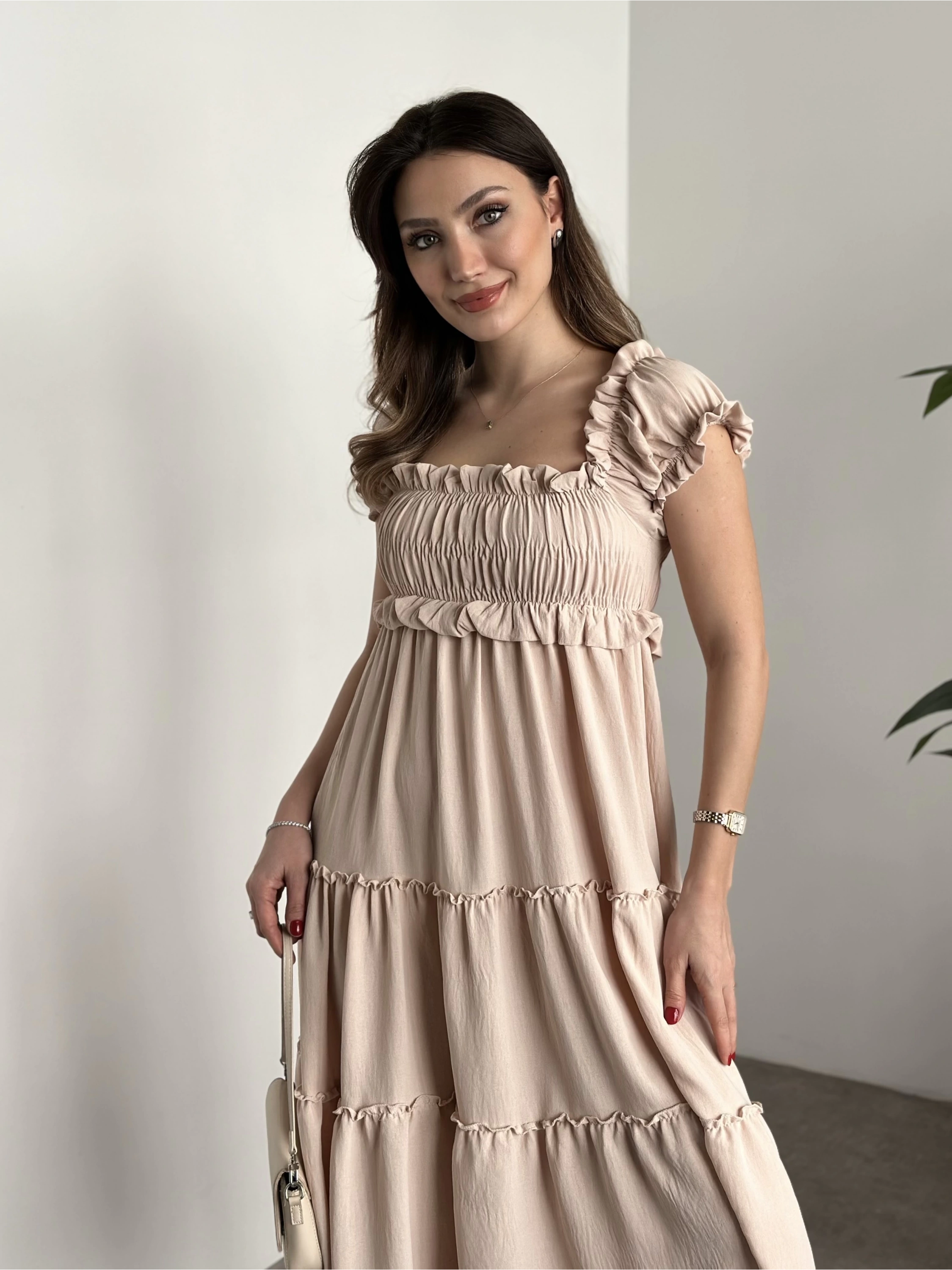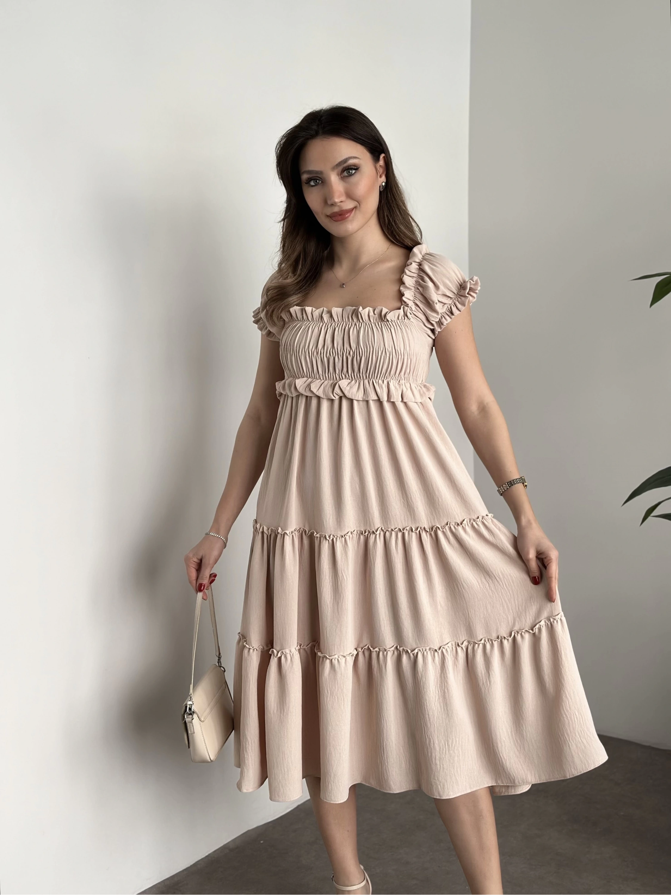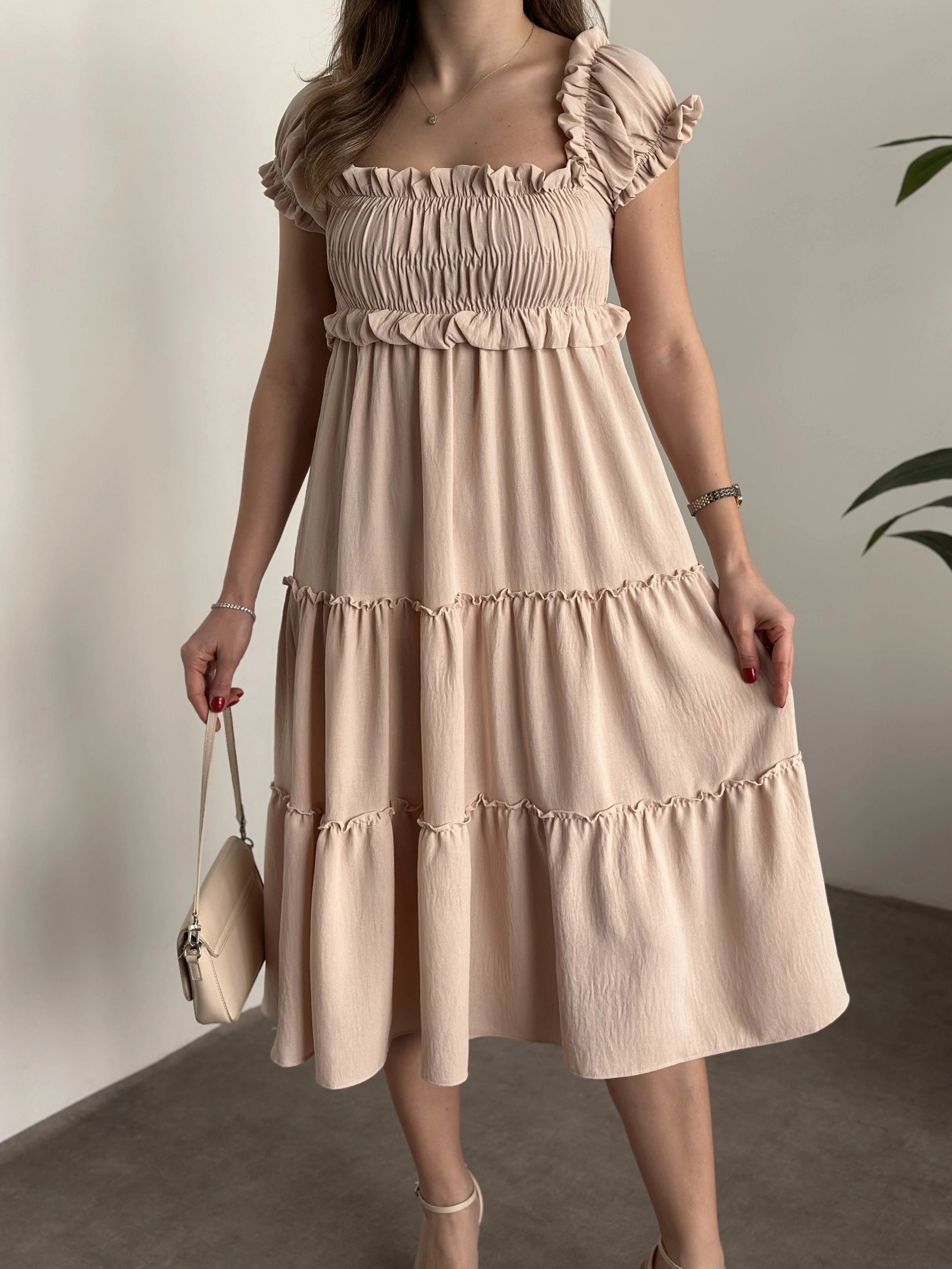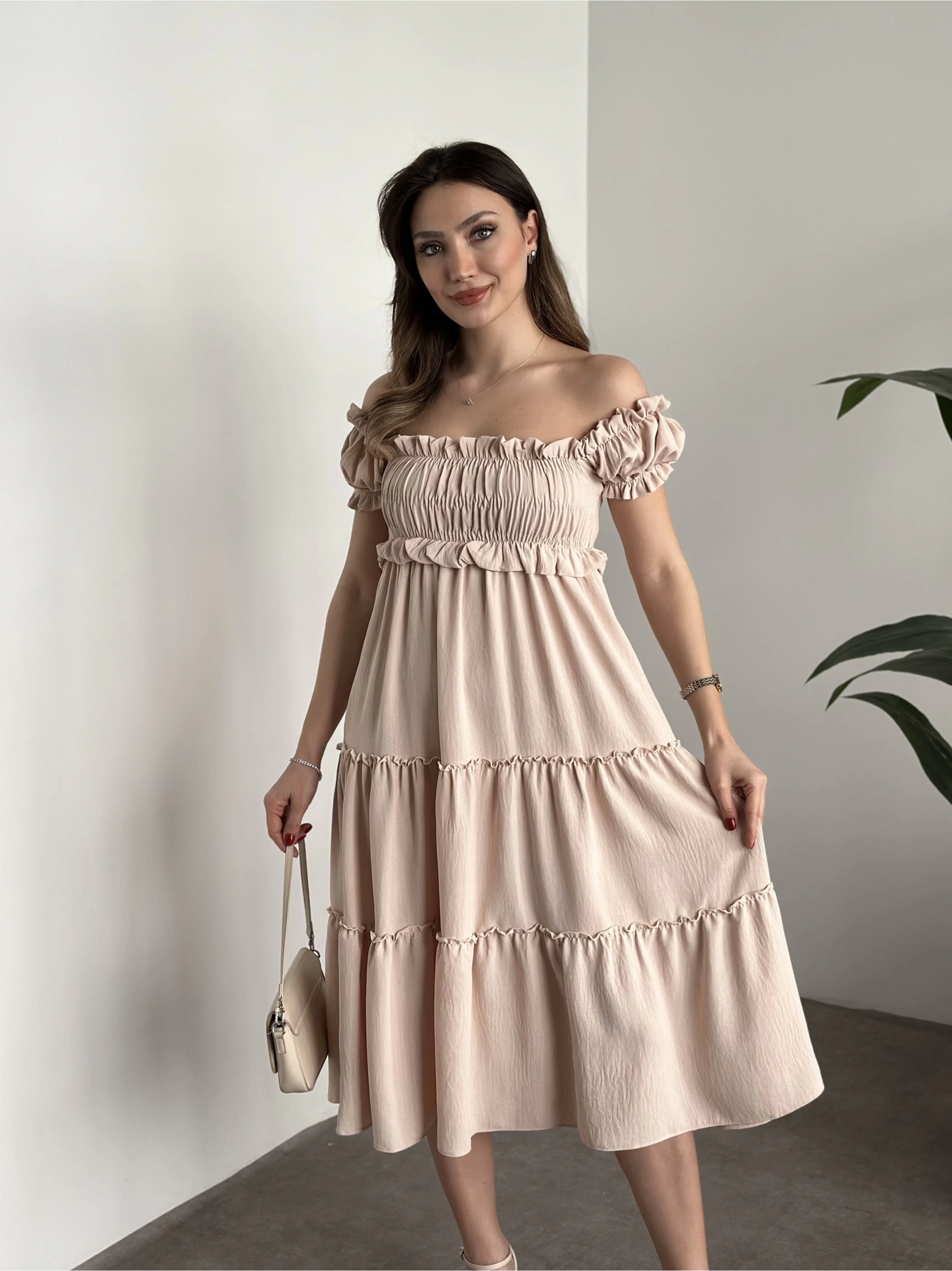 Bisiklet ve madonna yaka ayrobin elbise krem