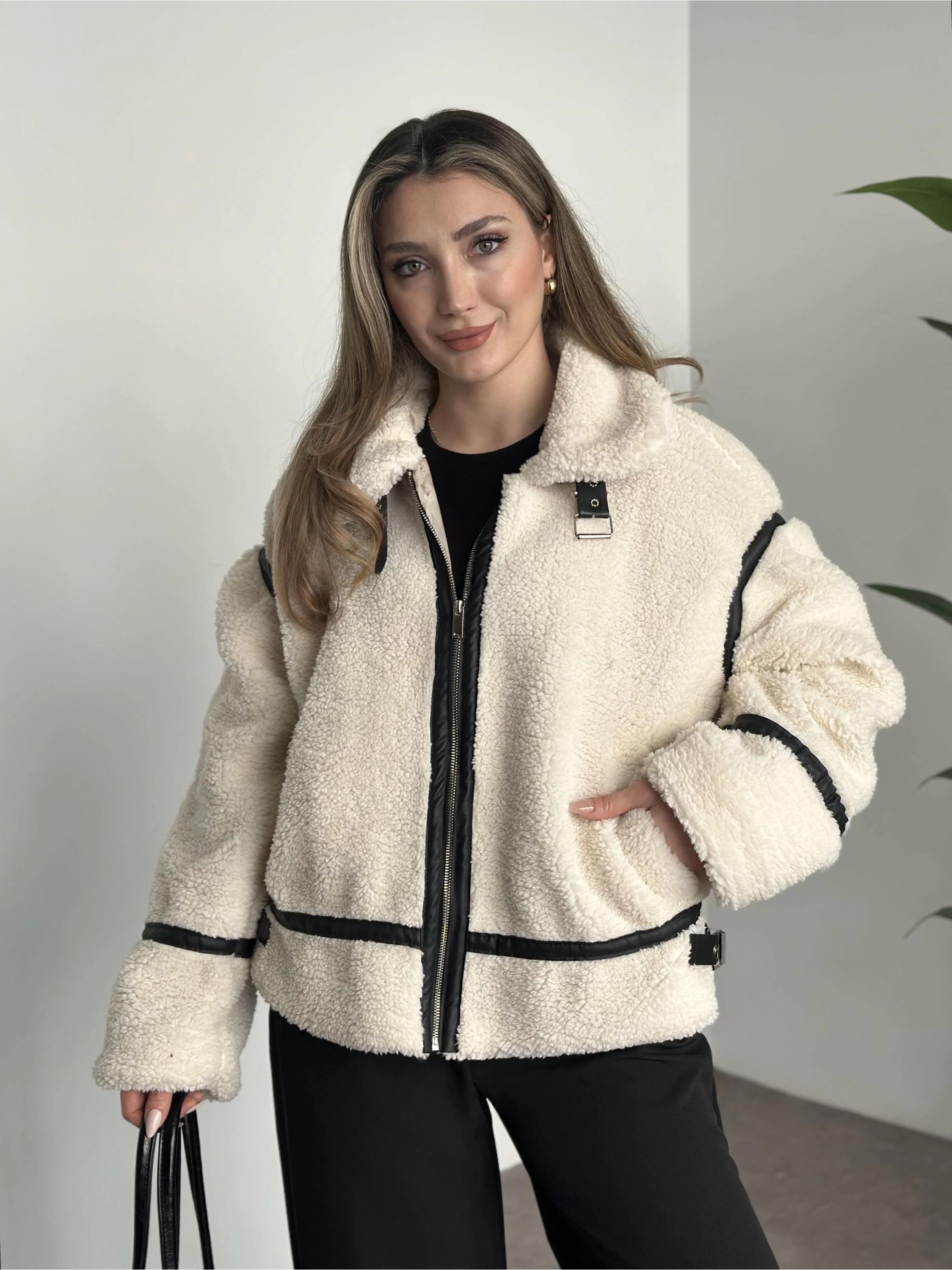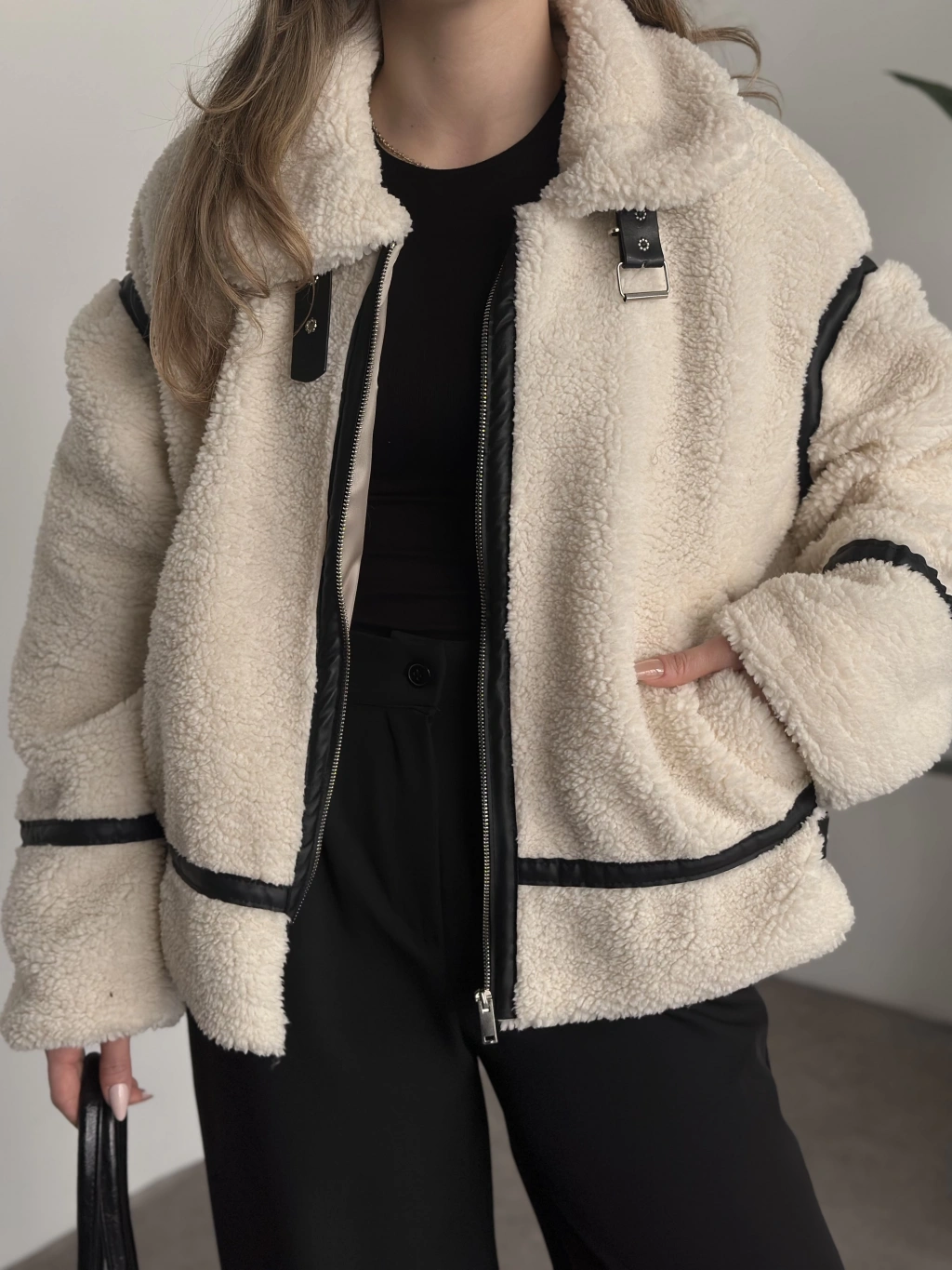 Dokulu süet içi peluşlu oversize marka model mont siyah