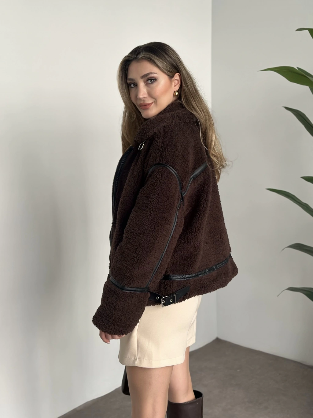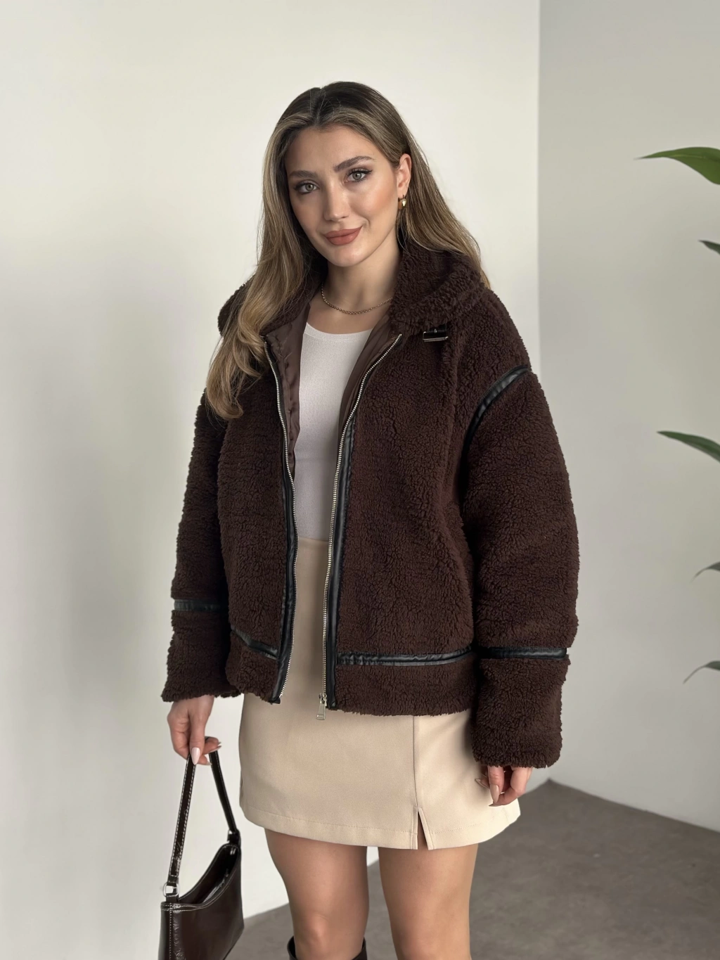 Dokulu süet içi peluşlu oversize marka model mont kahve