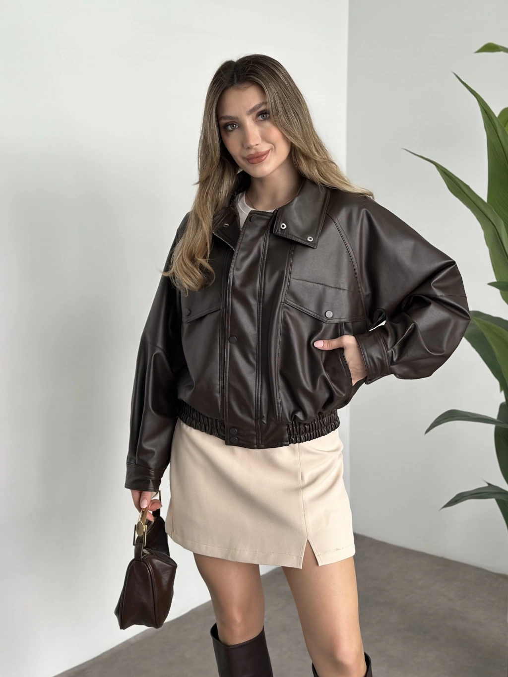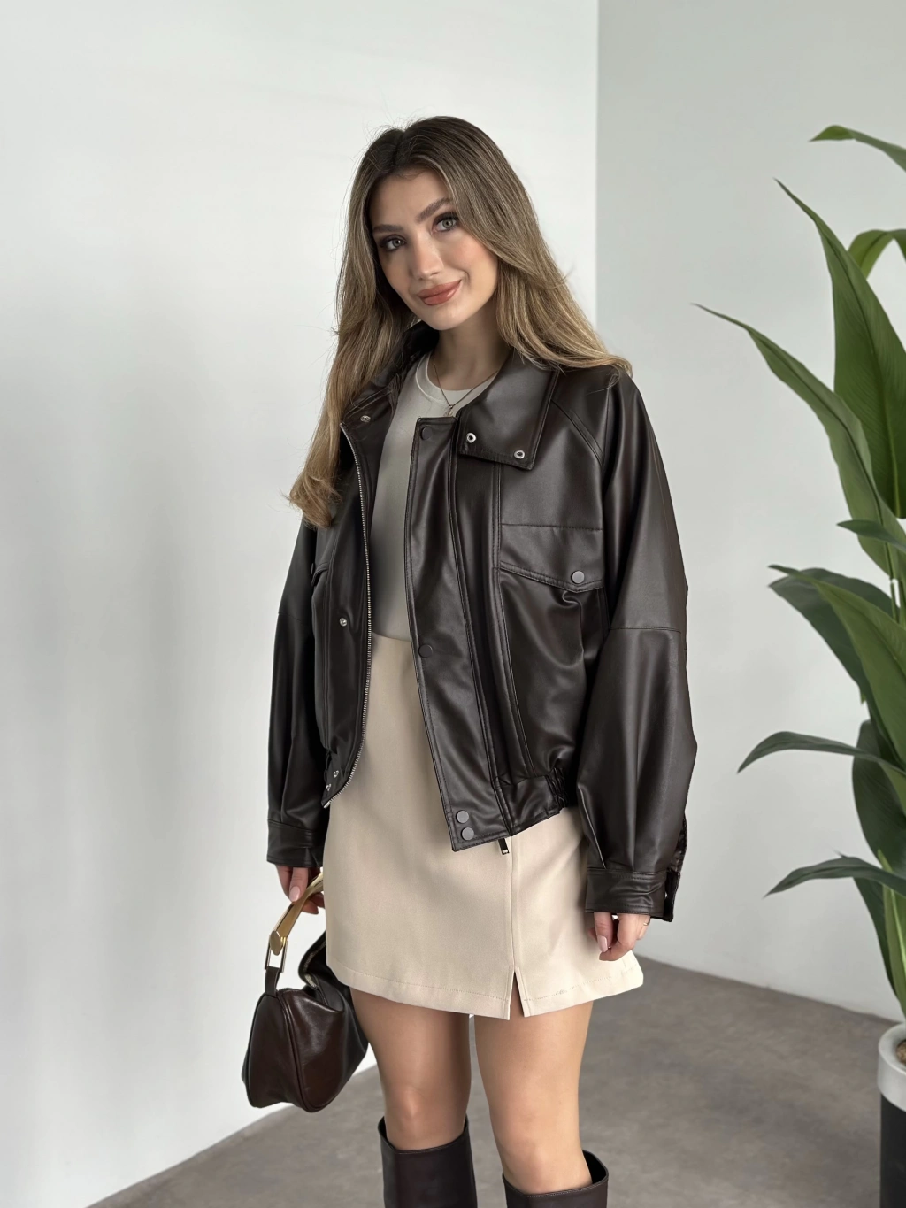 Dokulu süet içi peluşlu oversize marka model mont kahve