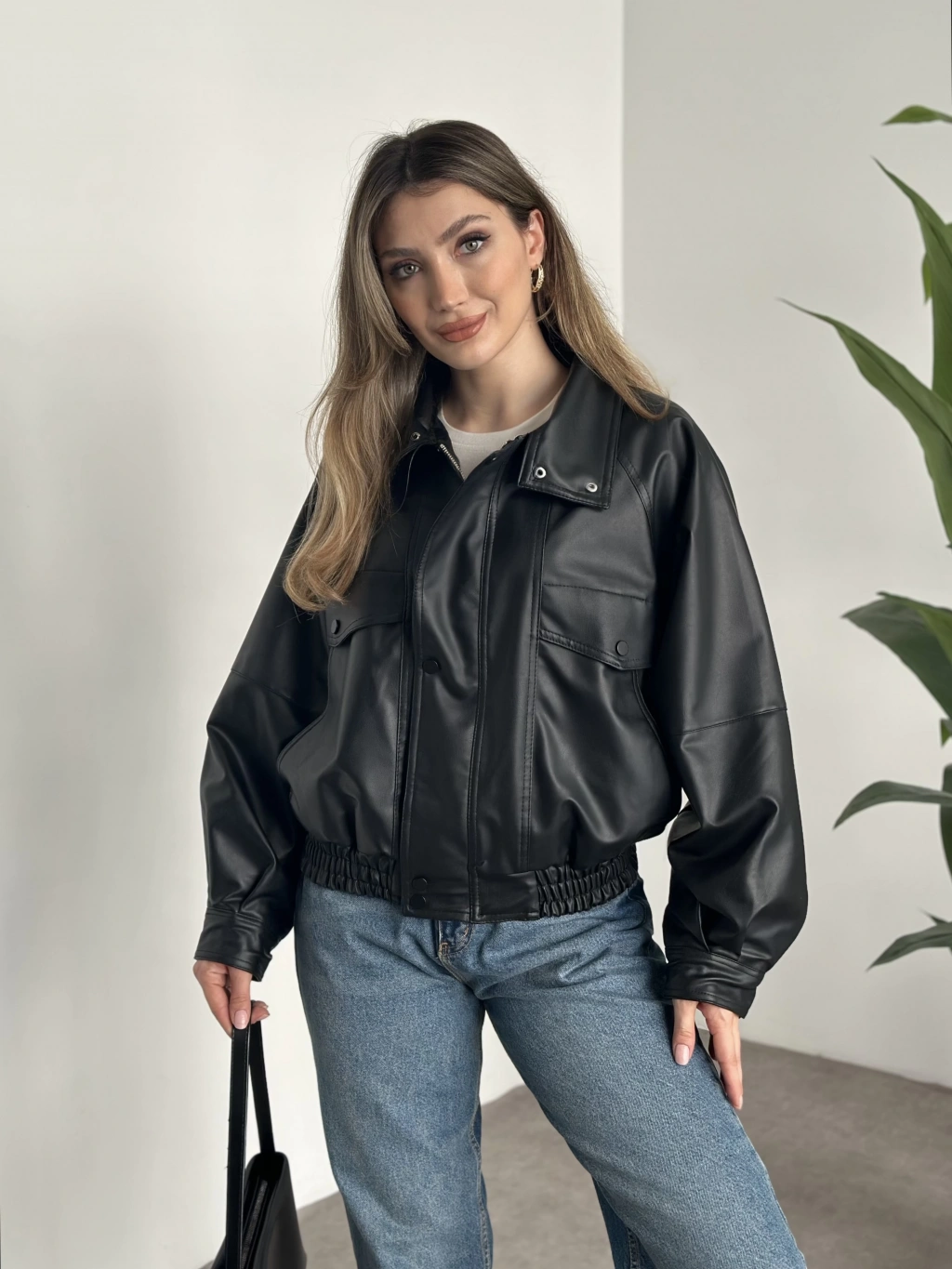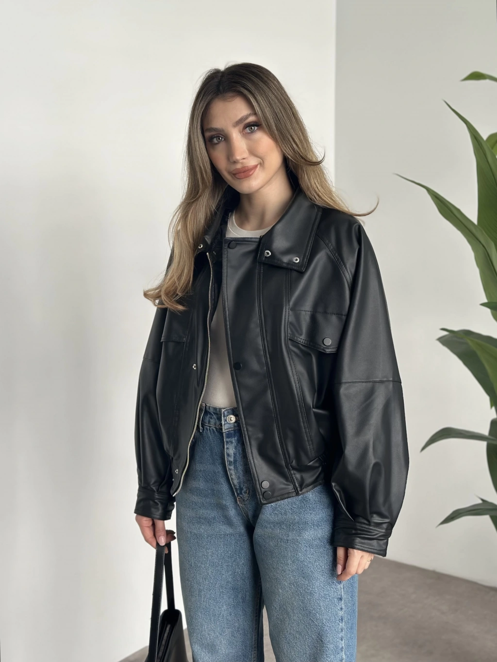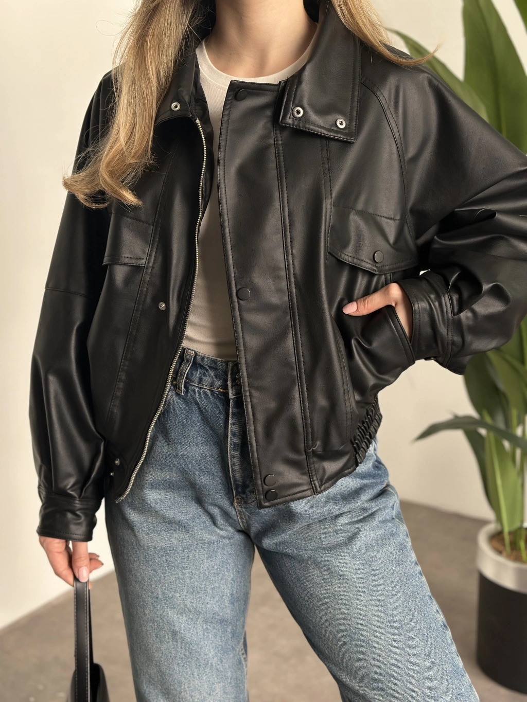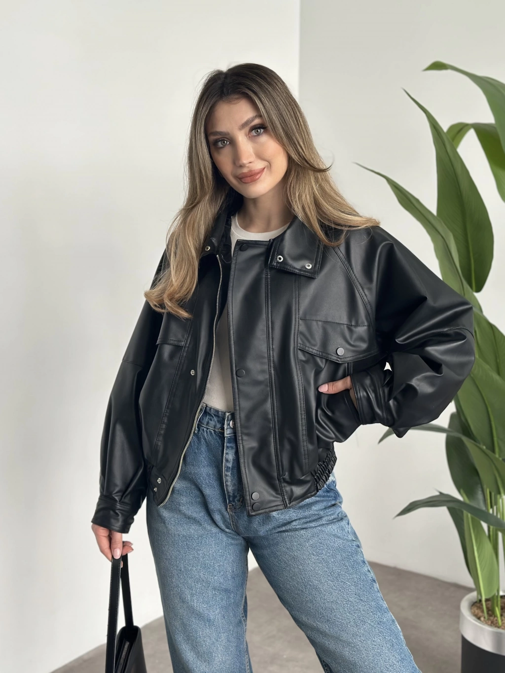 Dokulu süet içi peluşlu oversize marka model mont siyah