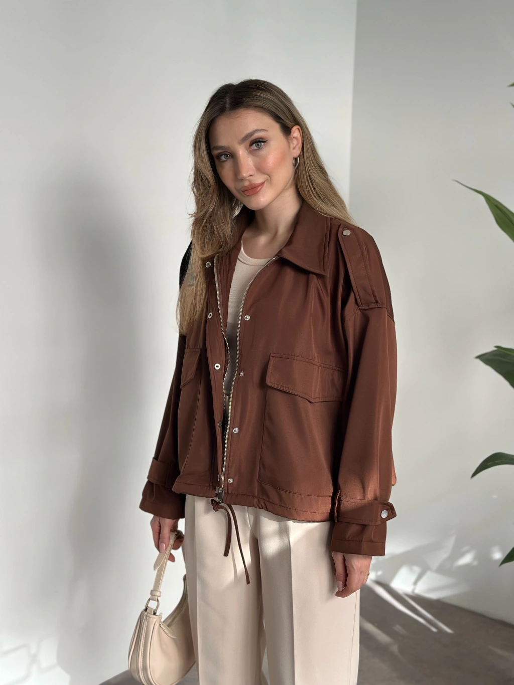 Bol kesim cep detaylı yağmurluk ceket kahve