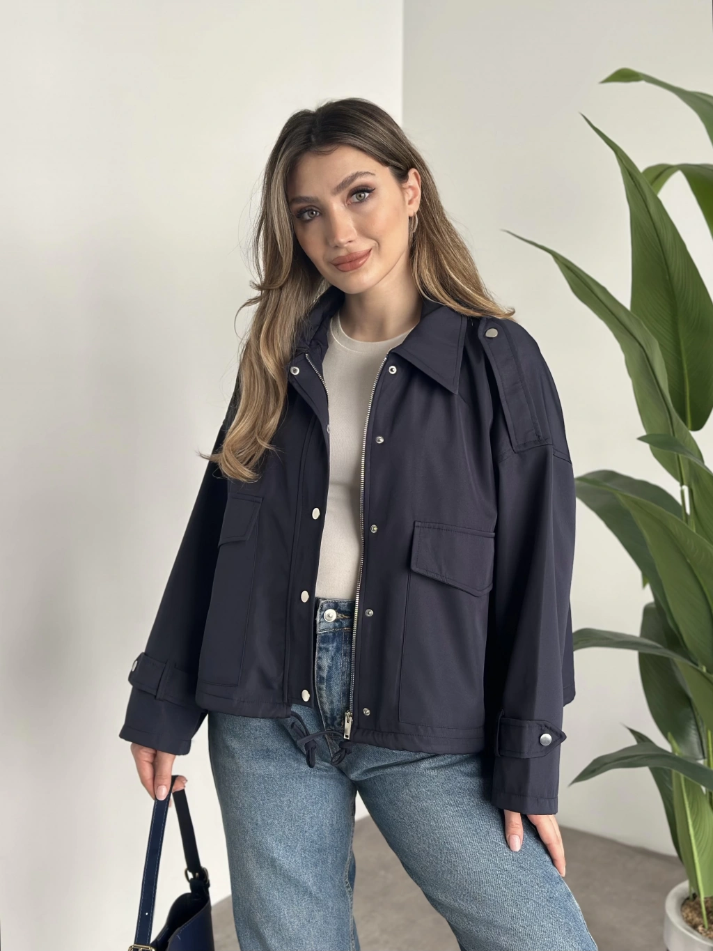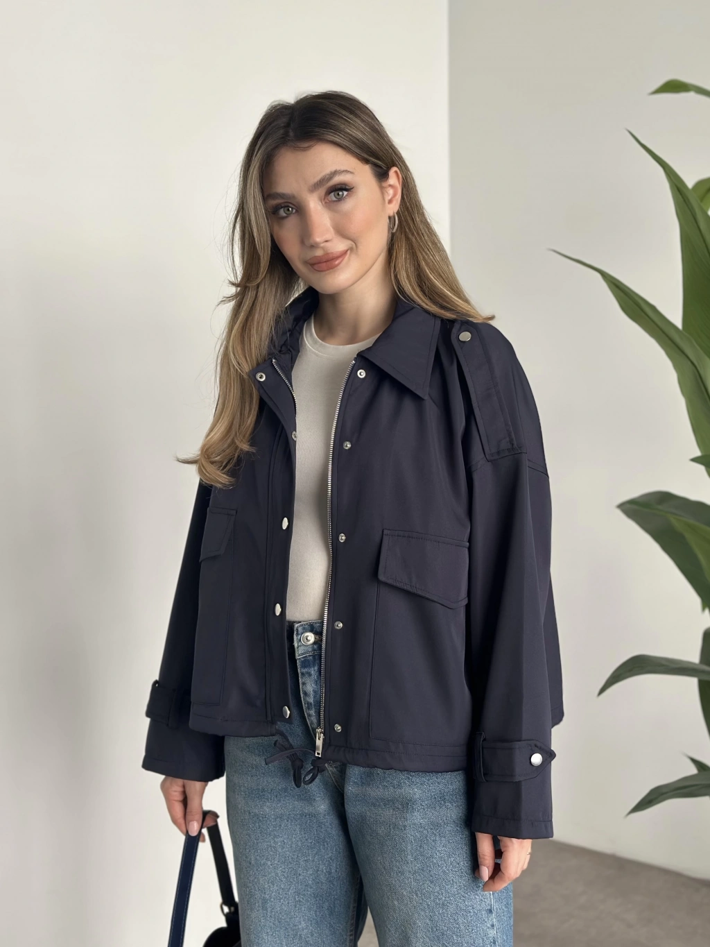 Bol kesim cep detaylı yağmurluk ceket lacivert