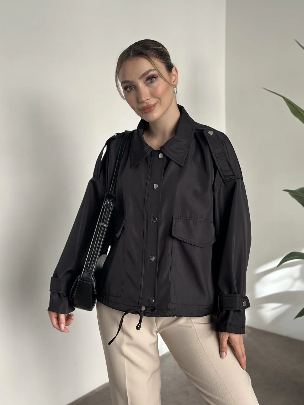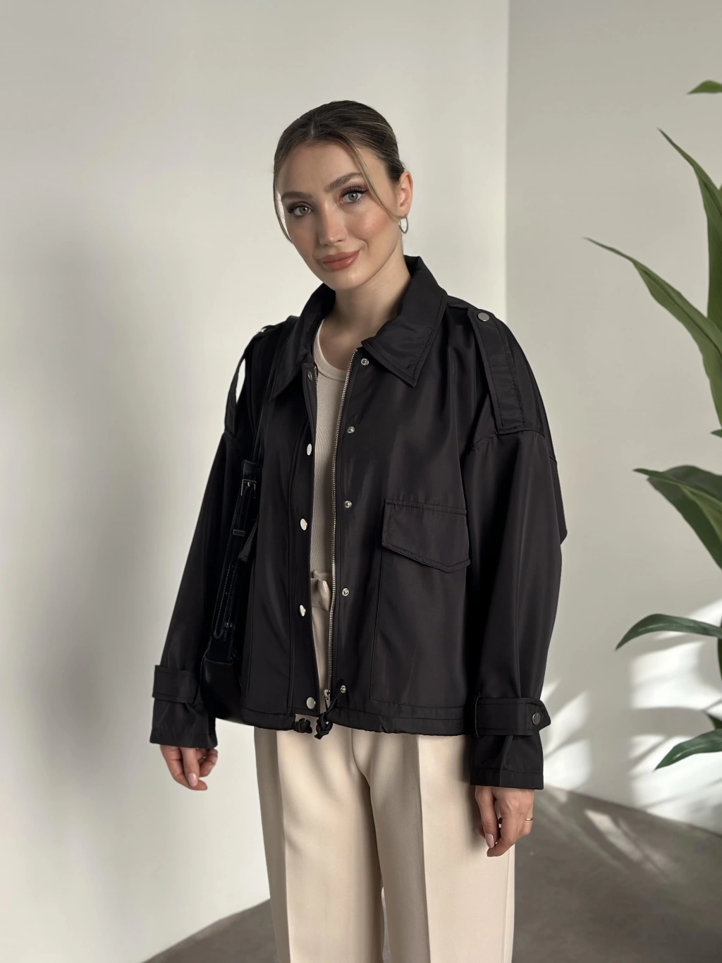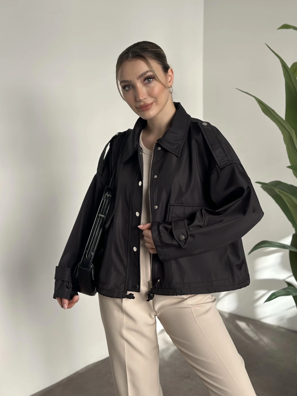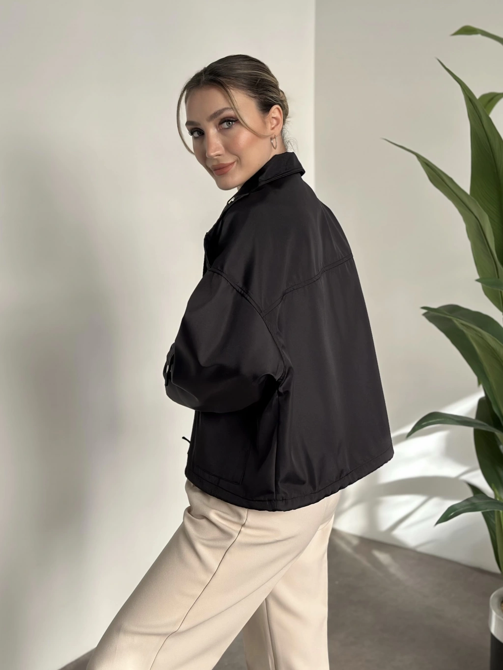 Bol kesim cep detaylı yağmurluk ceket siyah