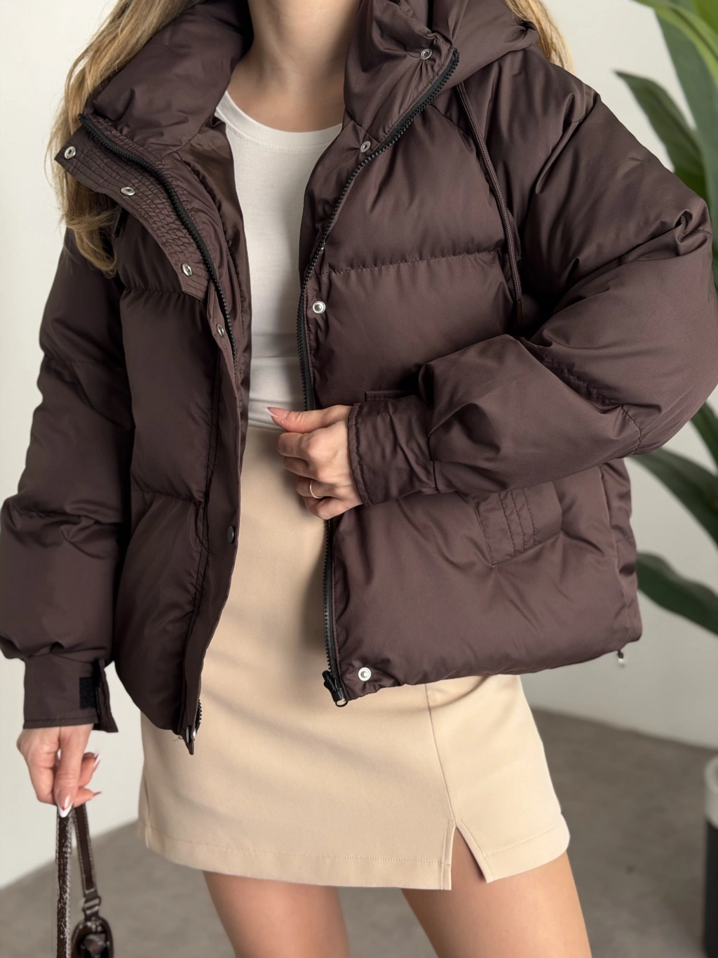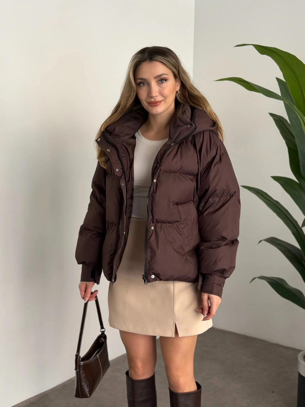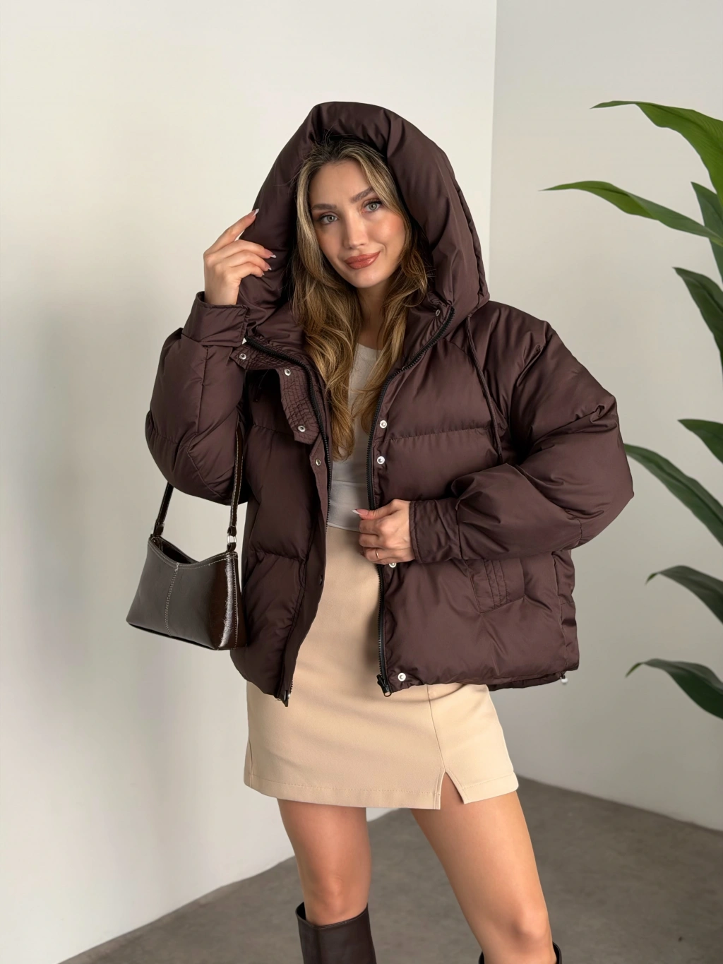 Dokulu süet içi peluşlu oversize marka model mont kahve