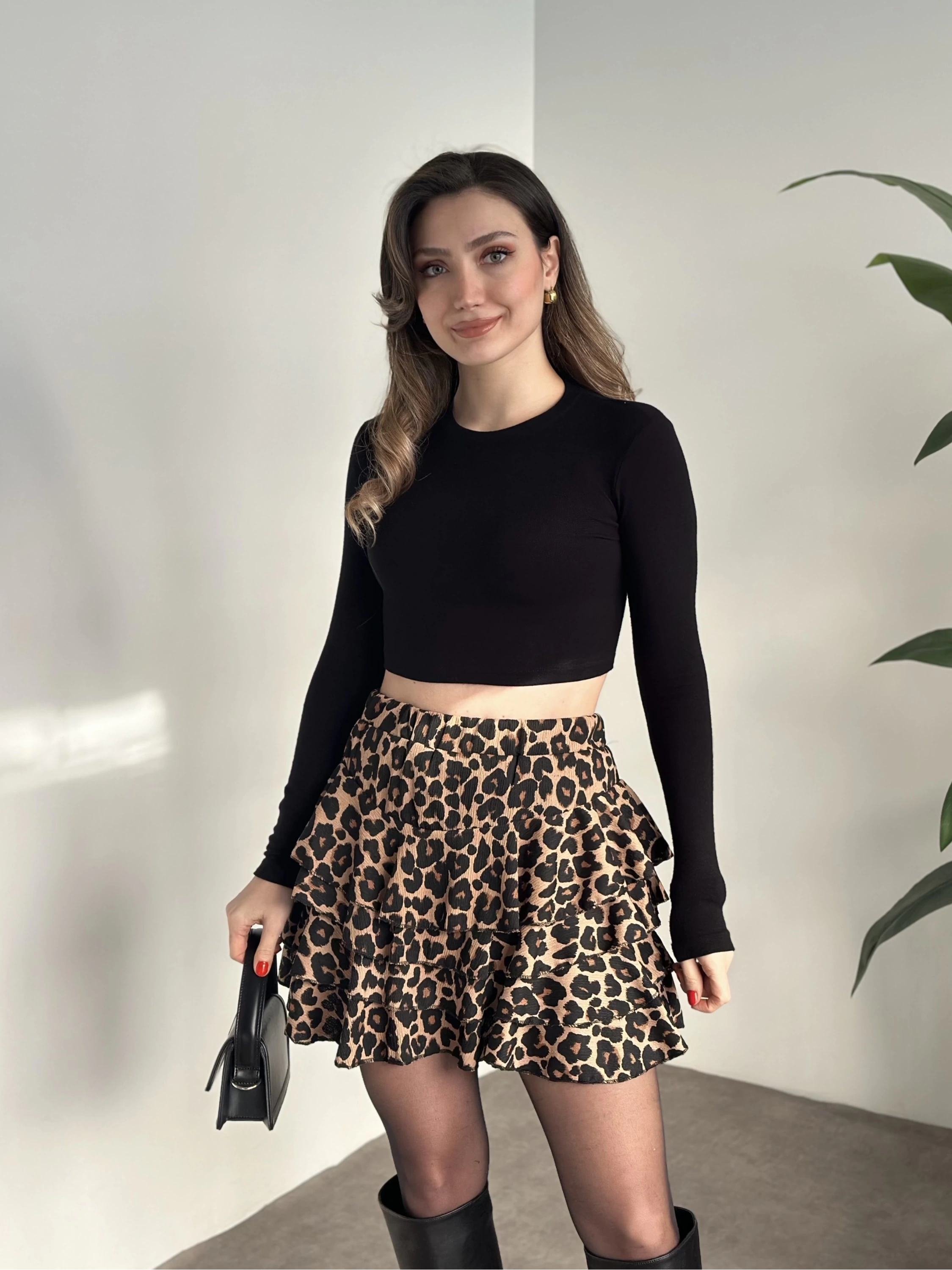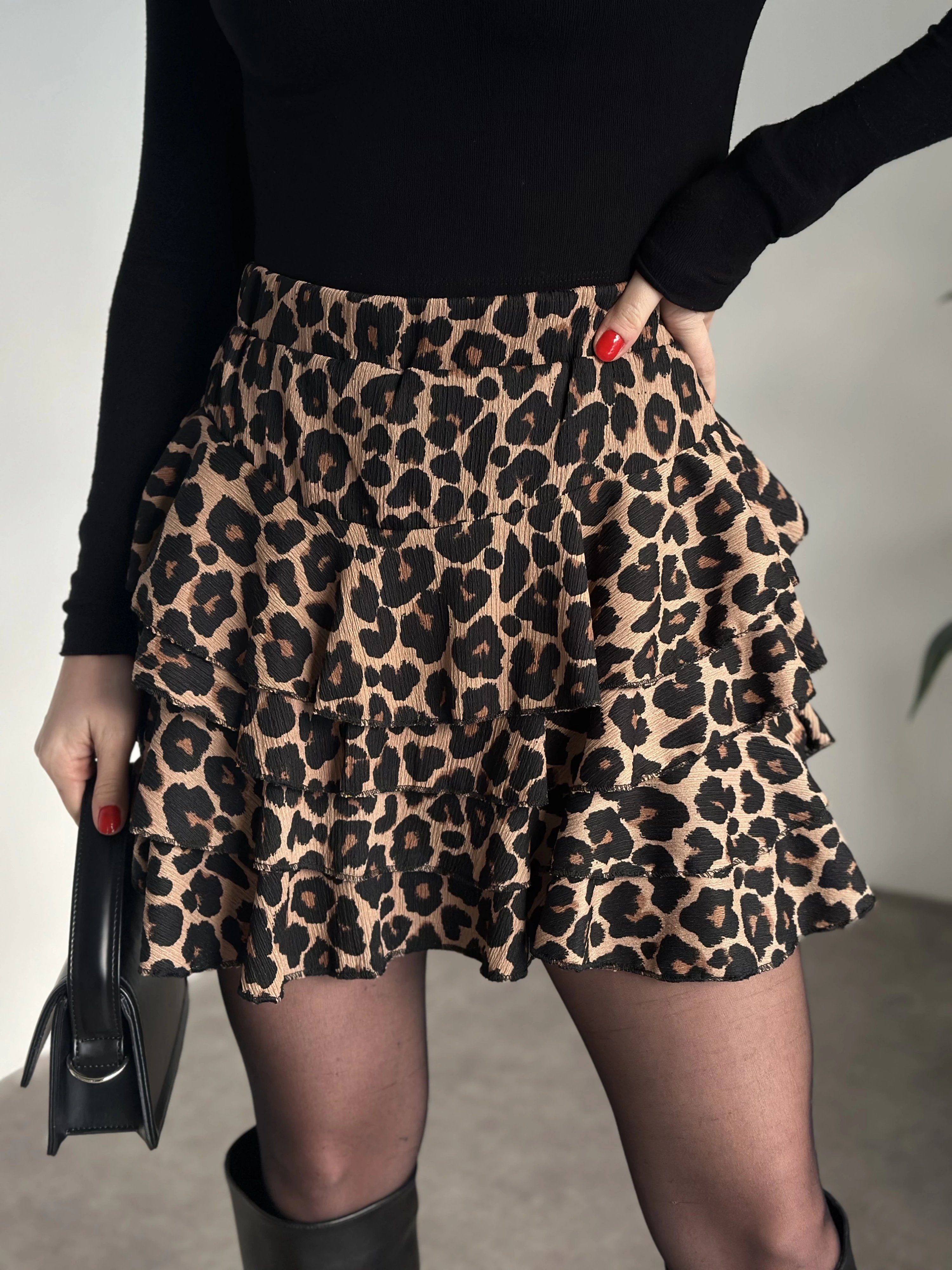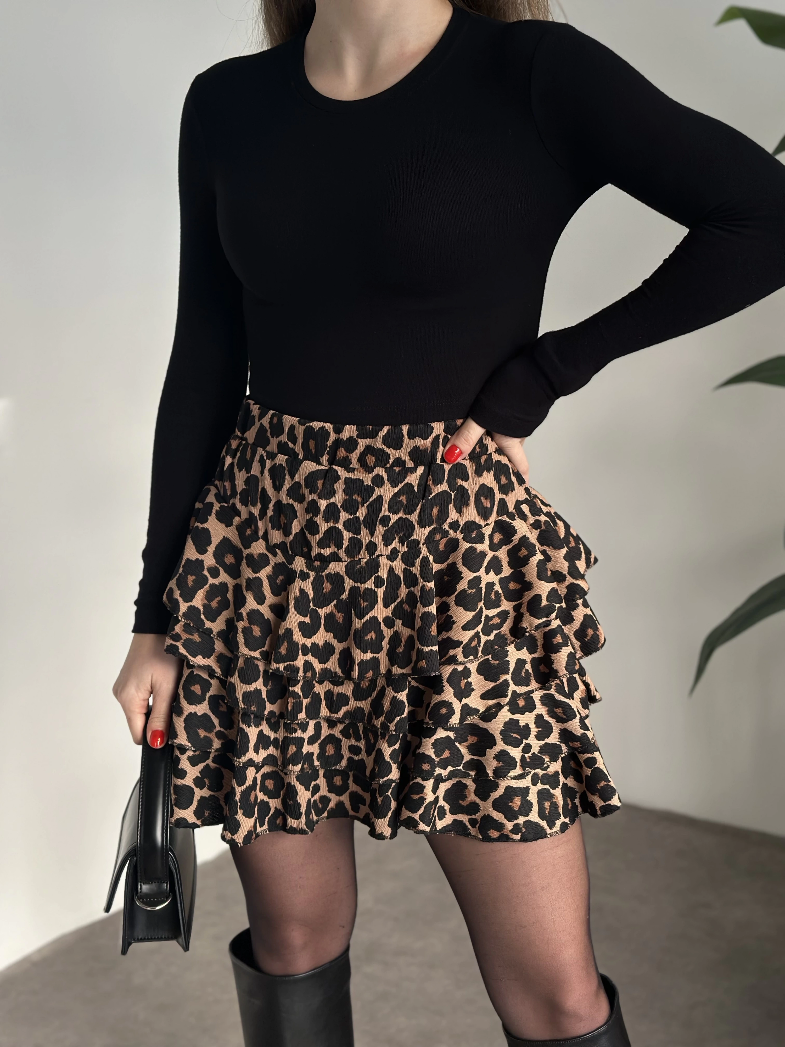 Bürümcük şortlu mini etek leopar