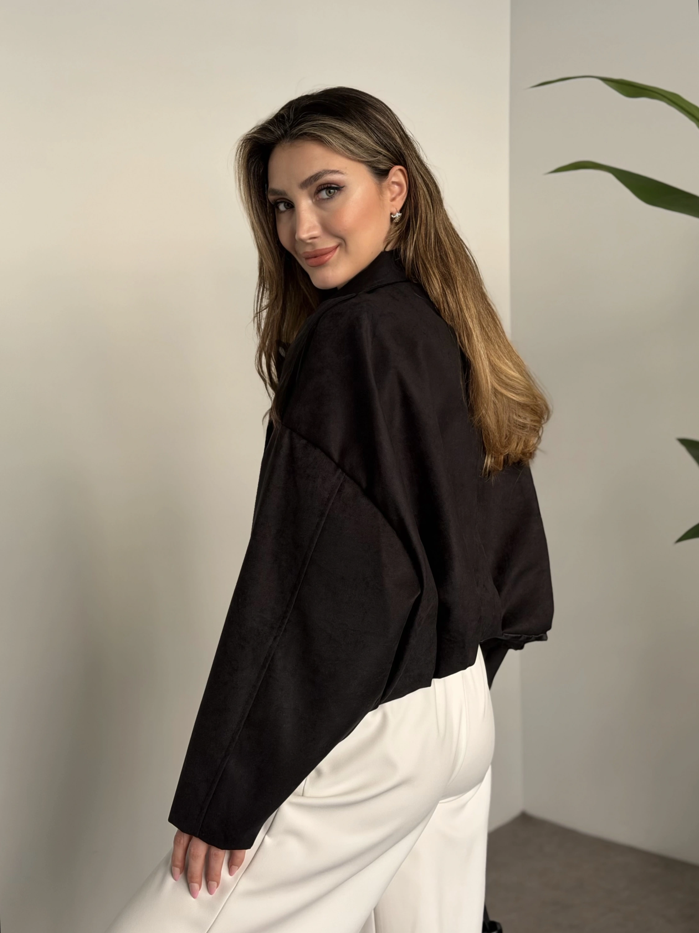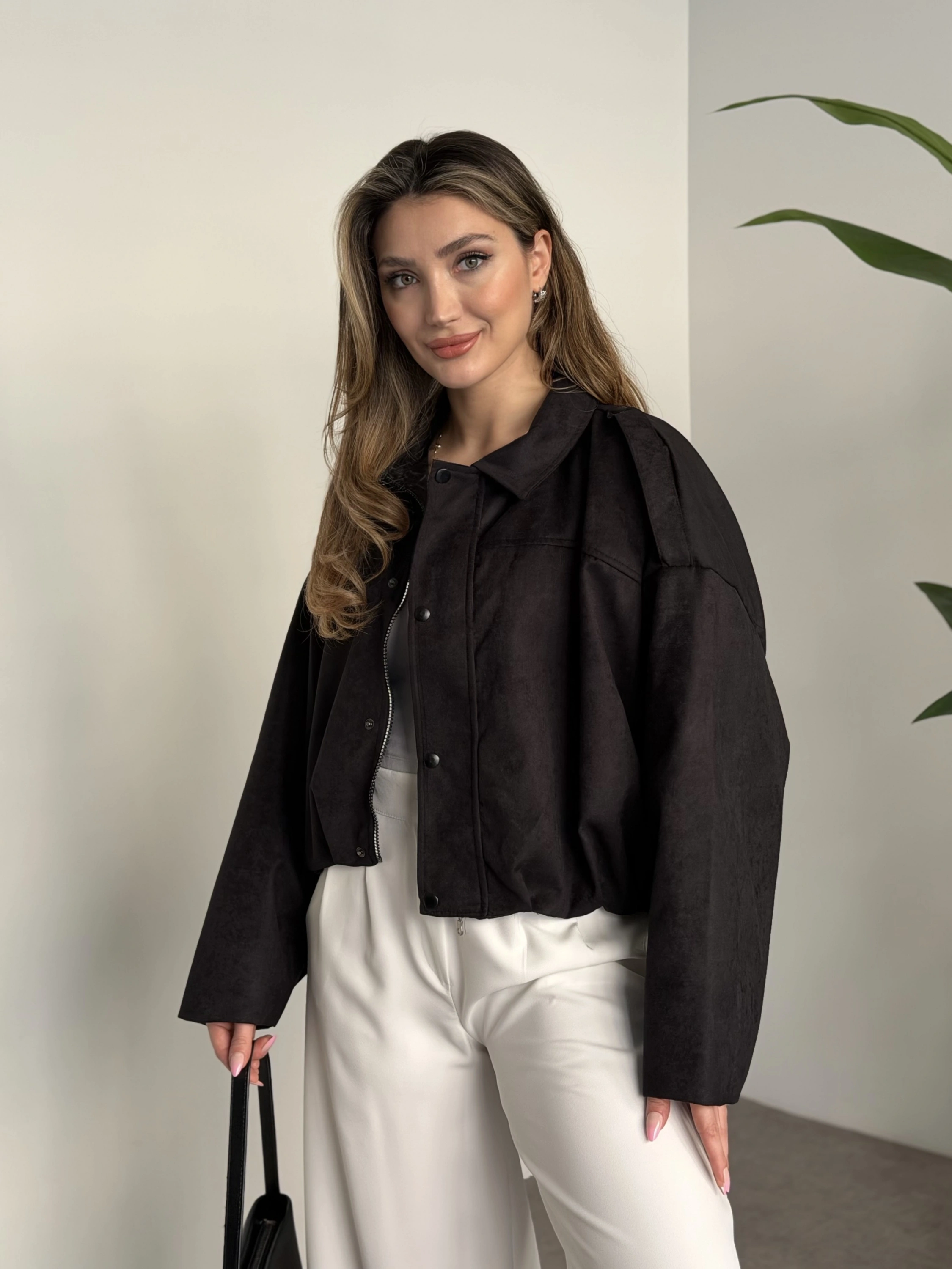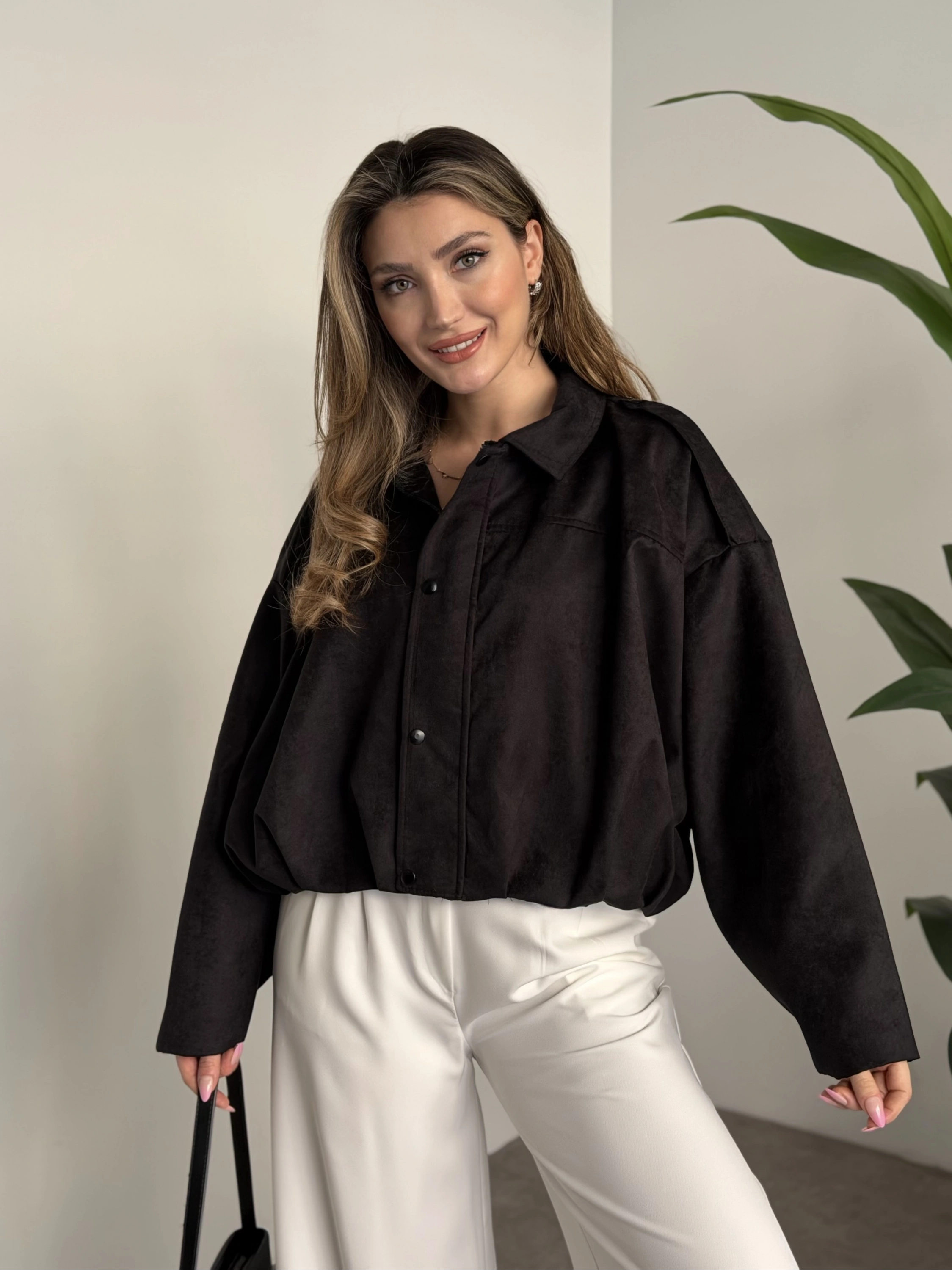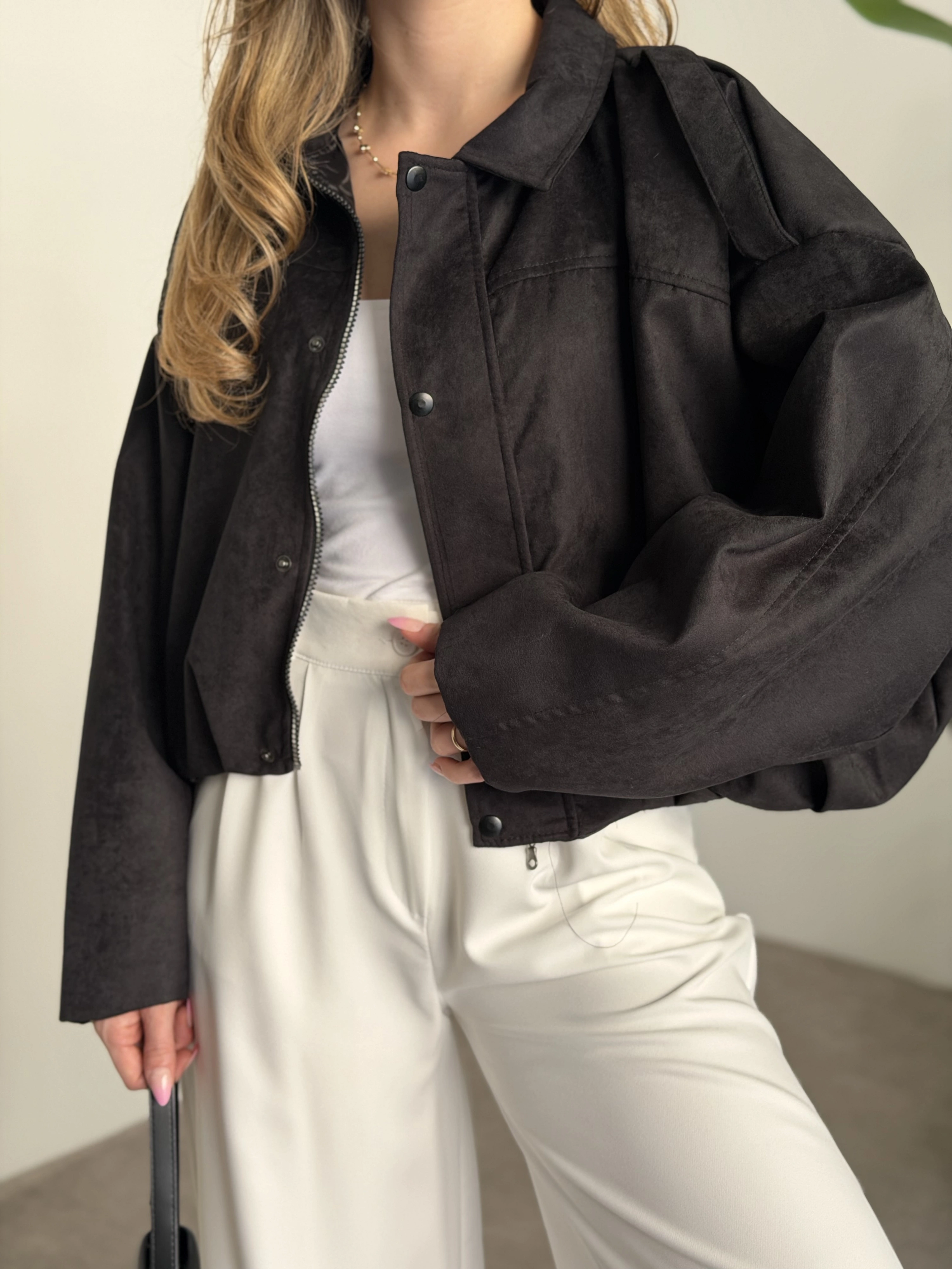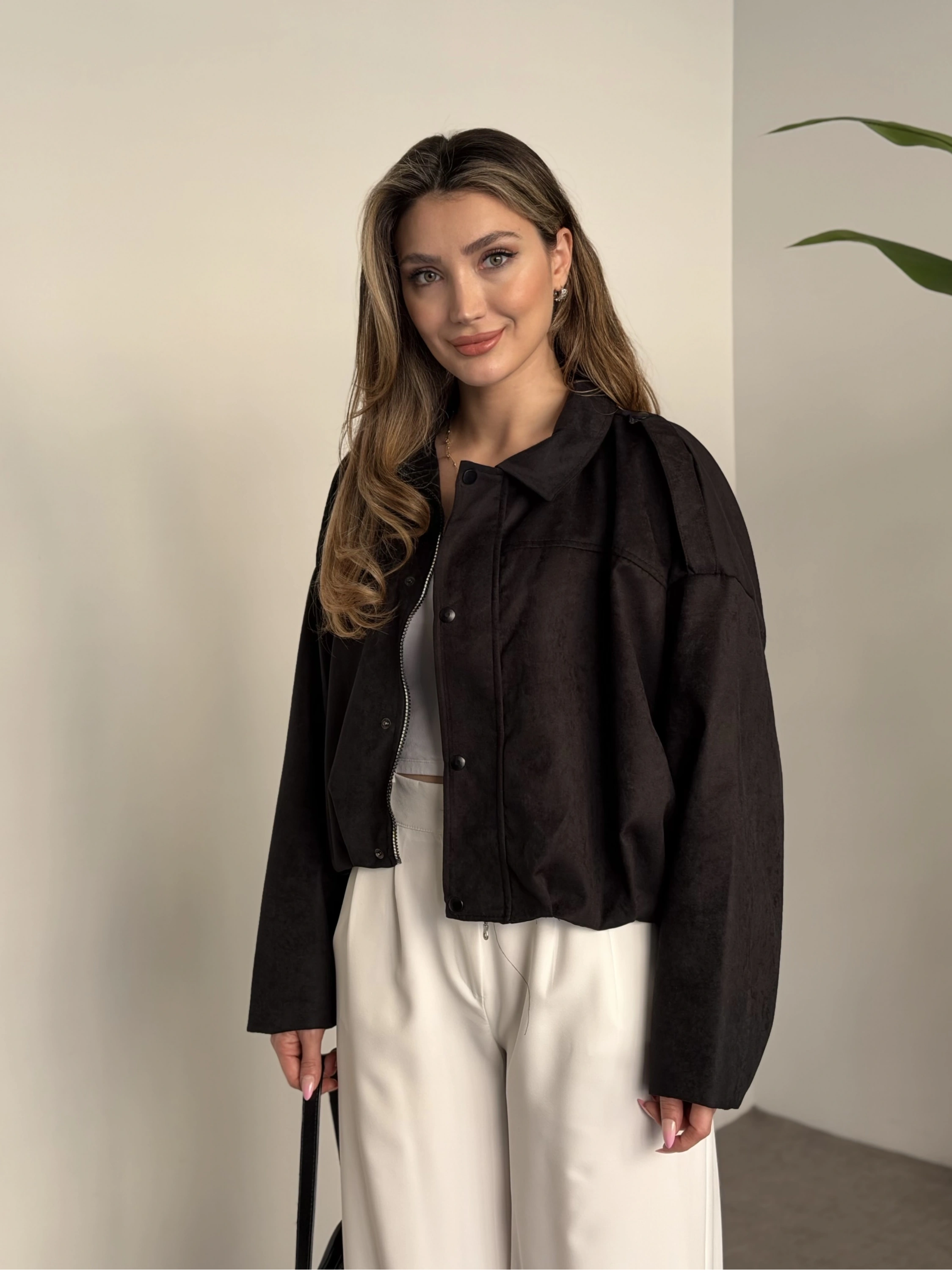 Dokulu süet içi peluşlu oversize marka model mont kahve