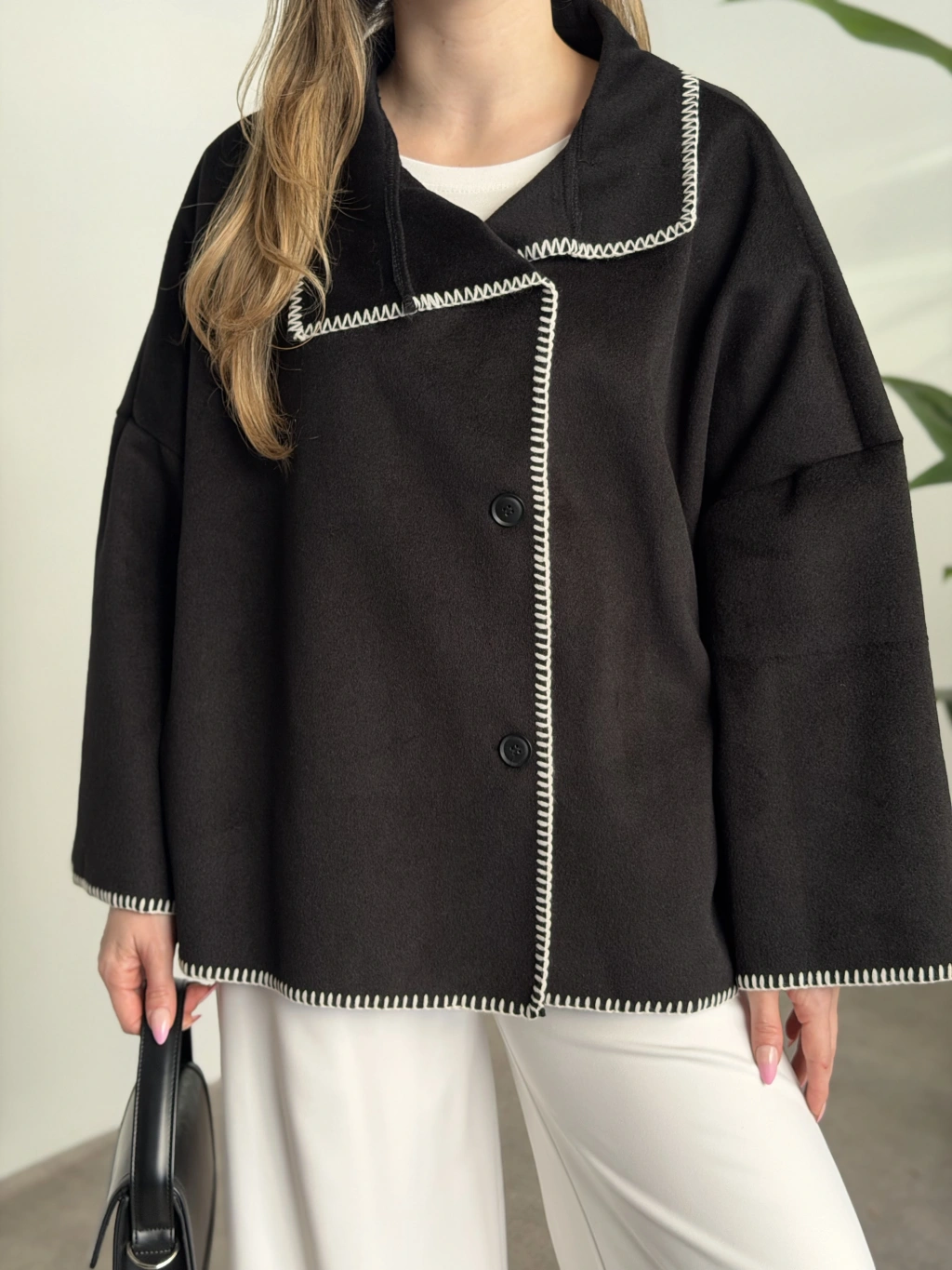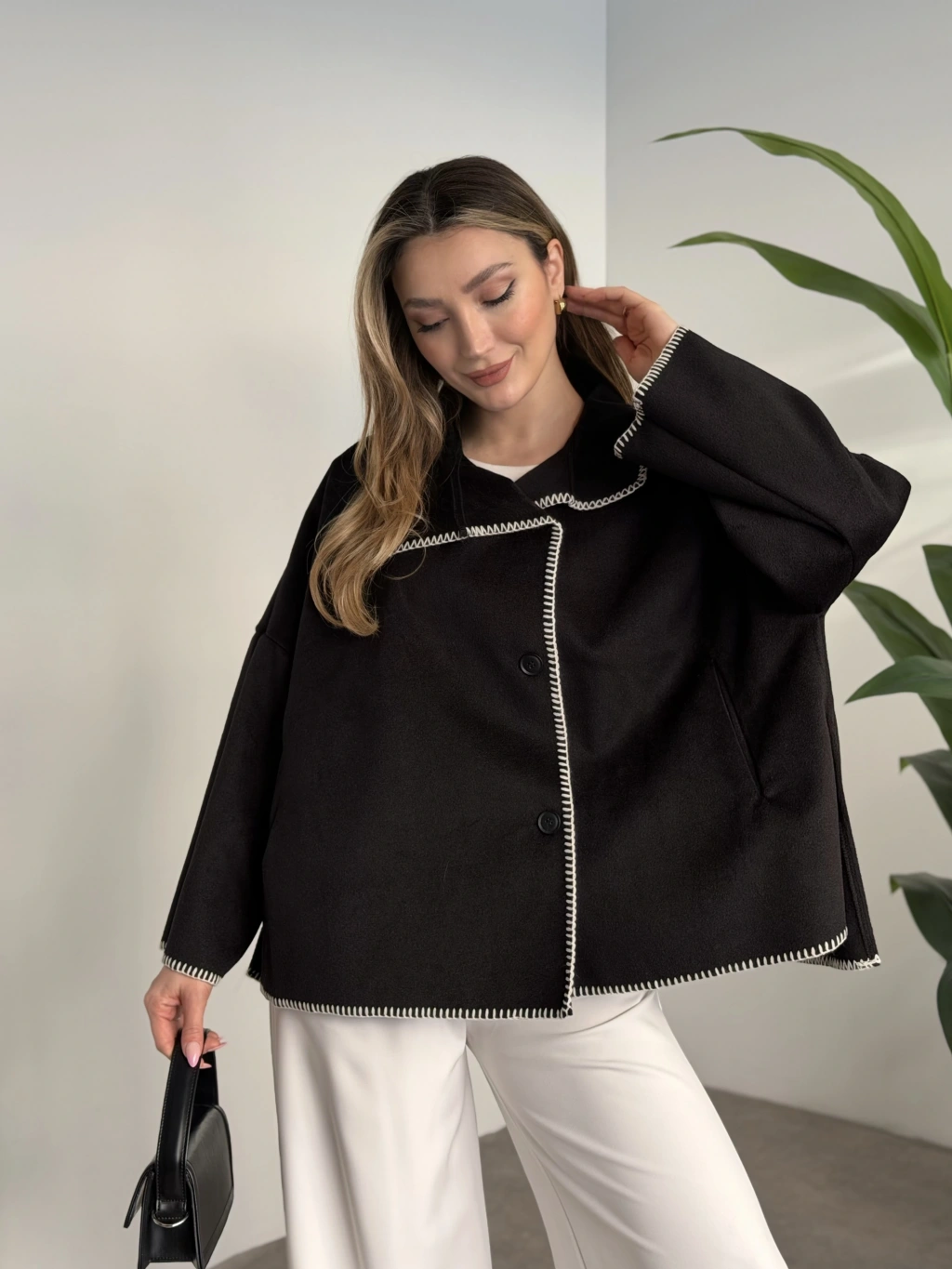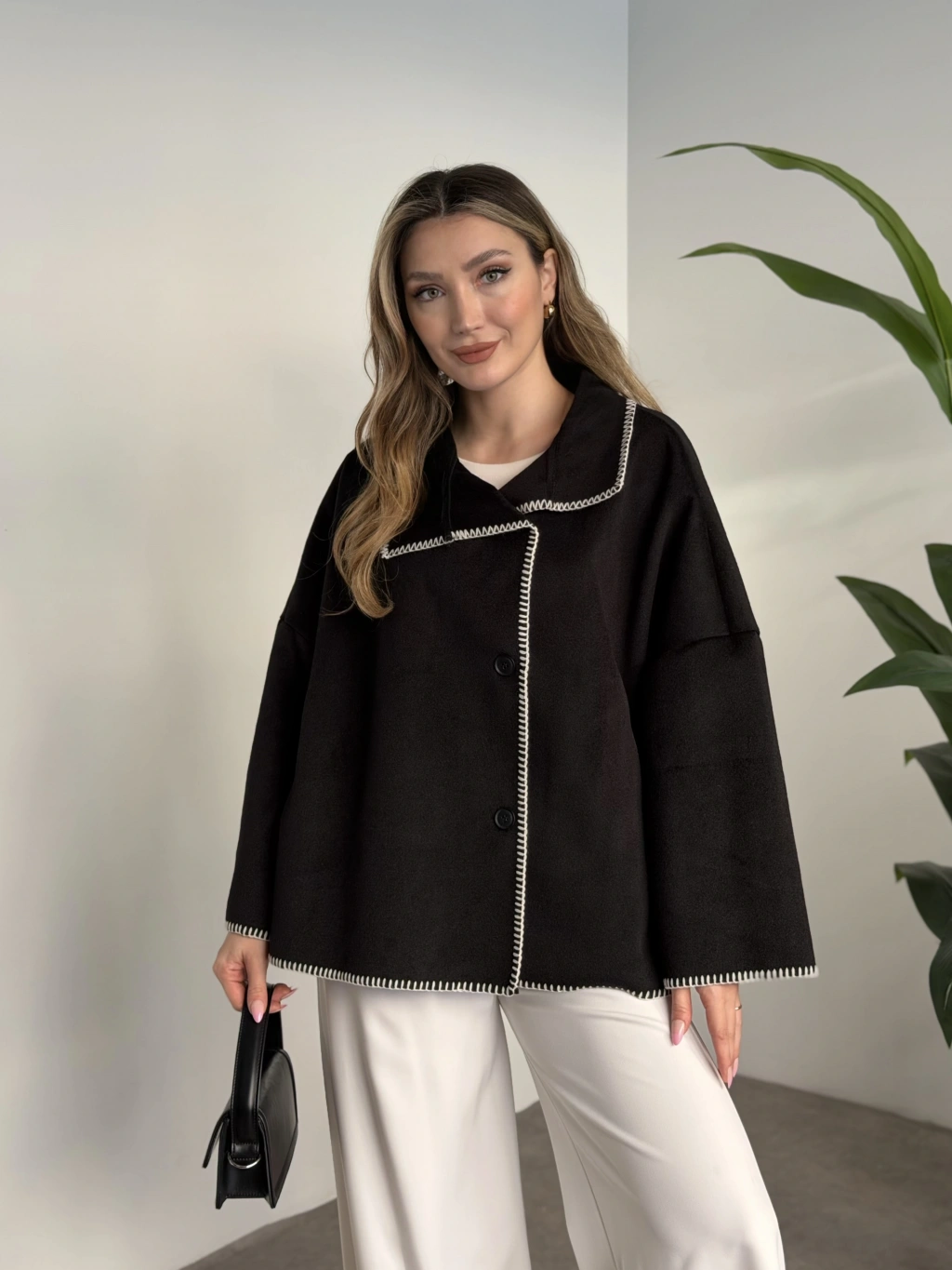 Dokulu süet içi peluşlu oversize marka model mont siyah