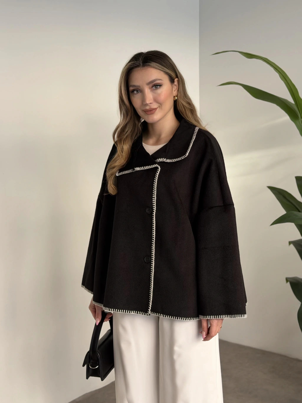 Ara boy düğmeli saçaklı kaşe kaban taş