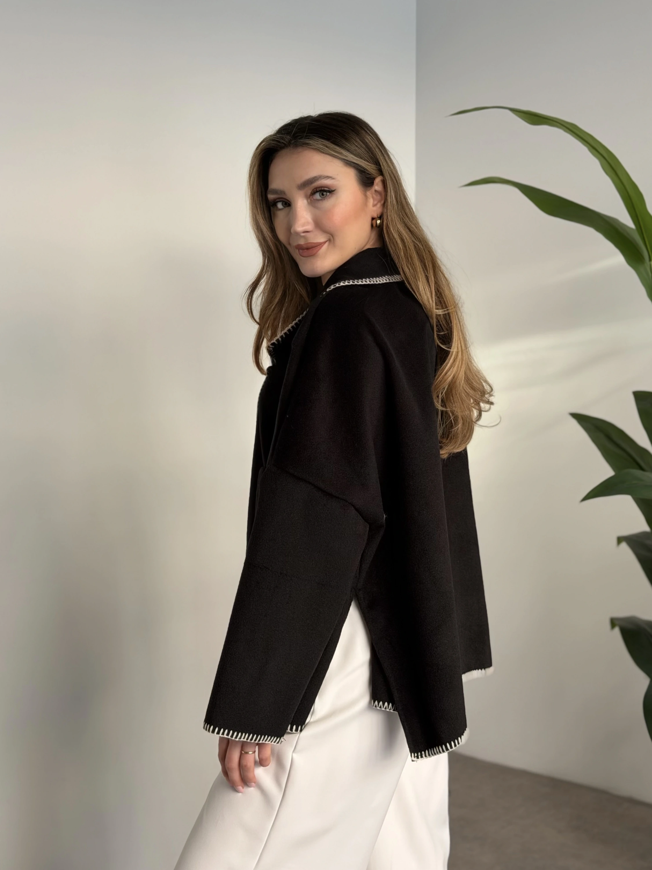 Çoban dikiş kaşe panço siyah