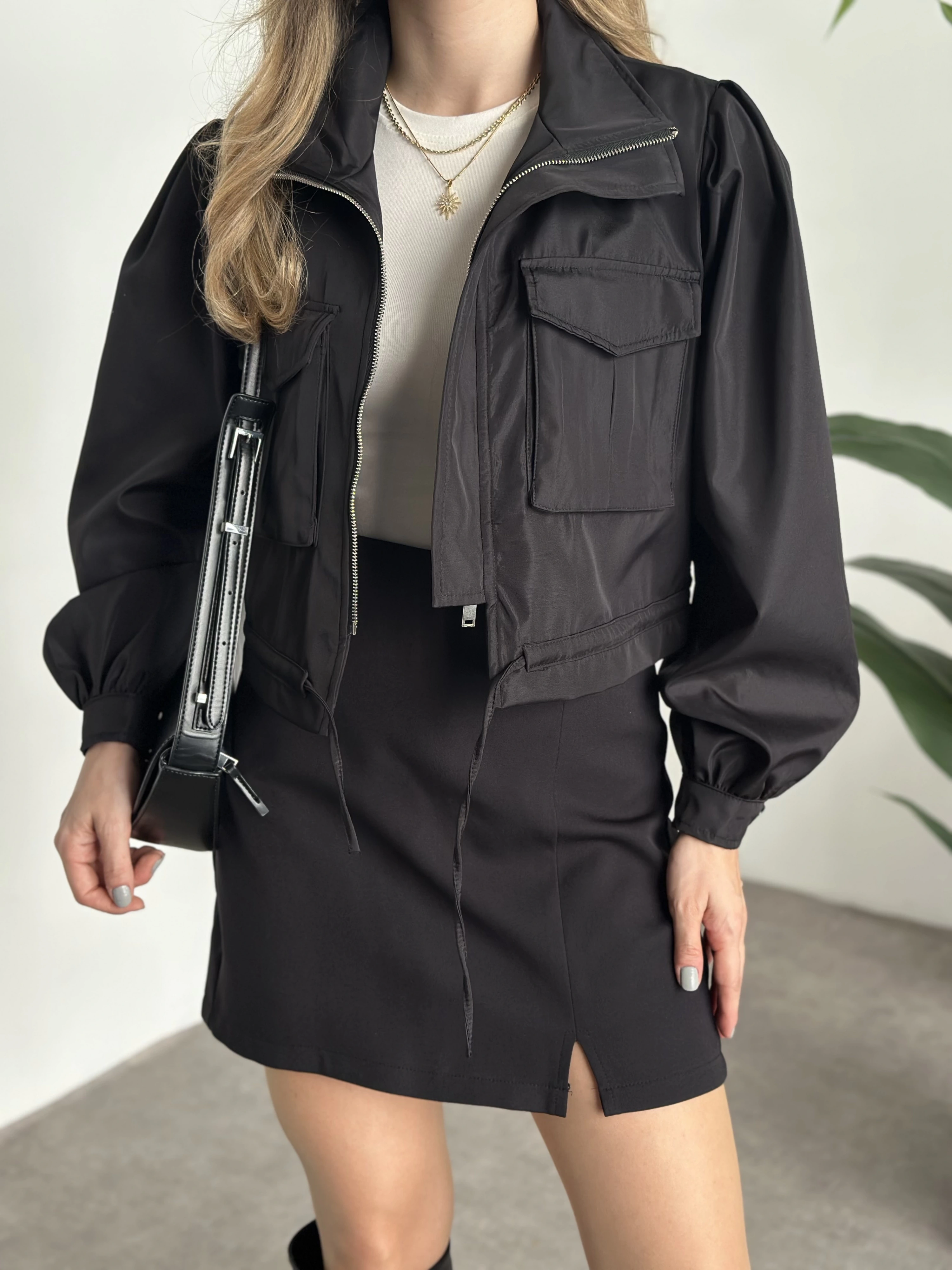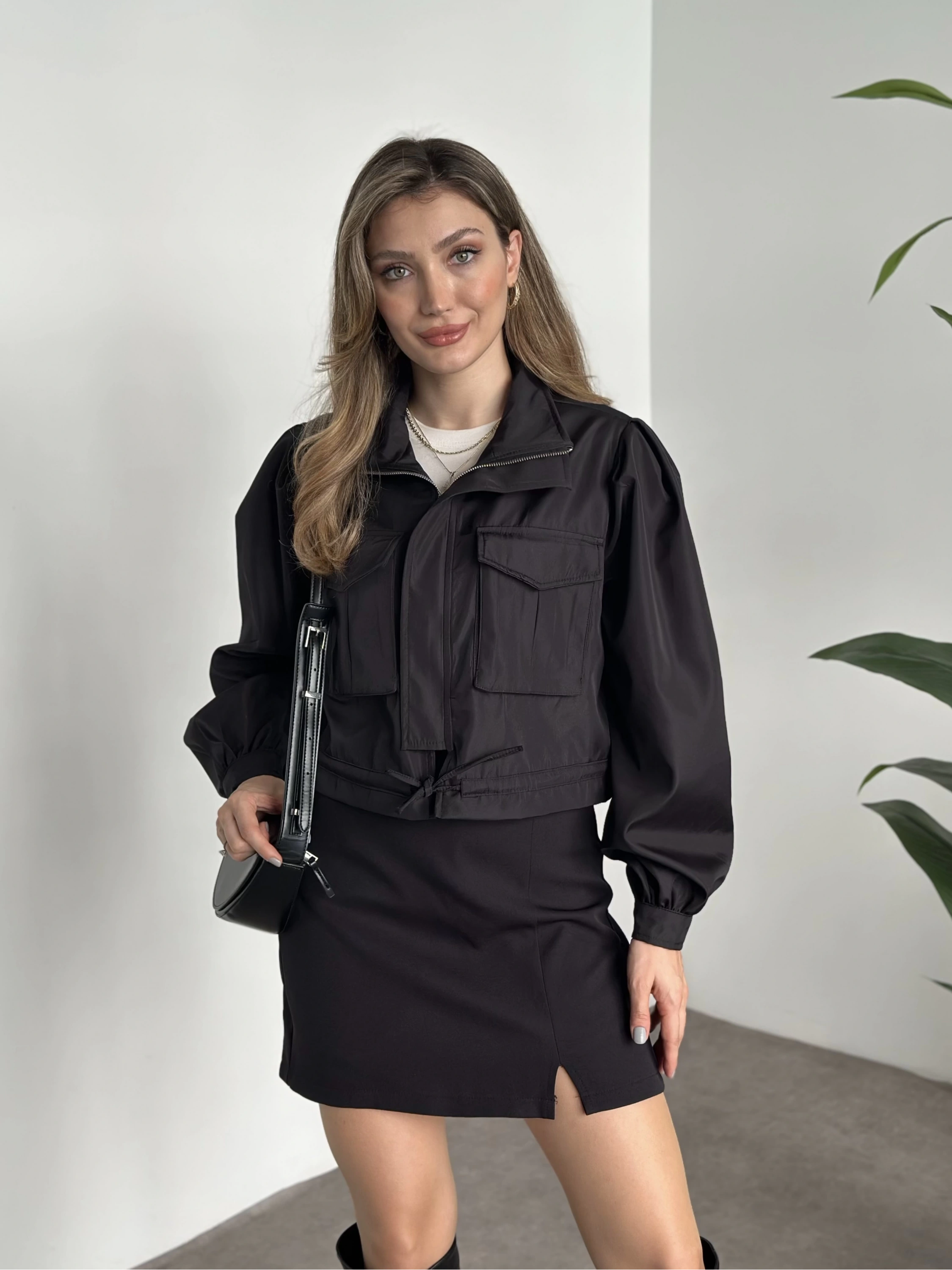Dokulu süet içi peluşlu oversize marka model mont siyah
