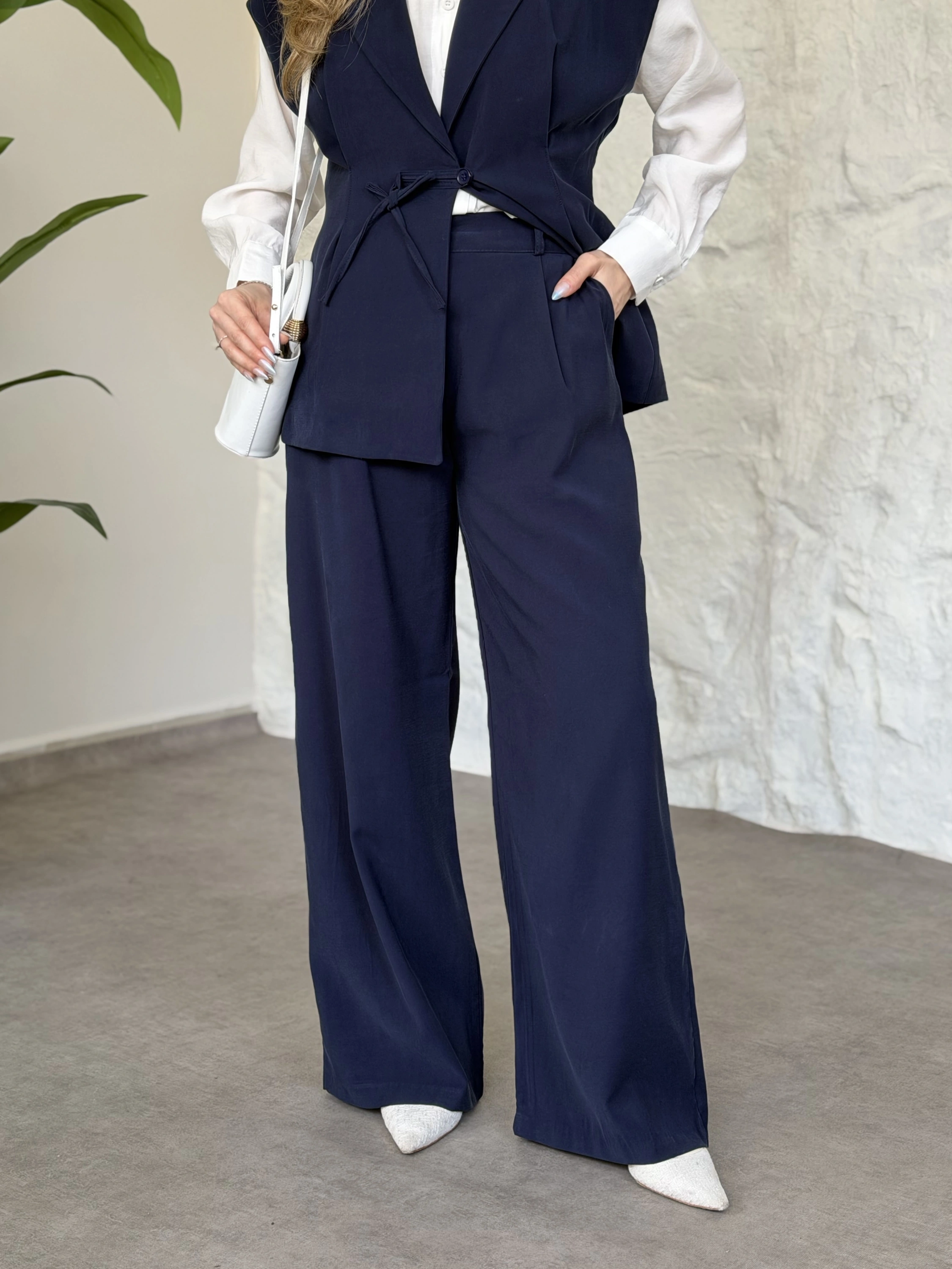 Meşhur Beli Cırt Cırtlı Bol Paça Pantolon Lacivert