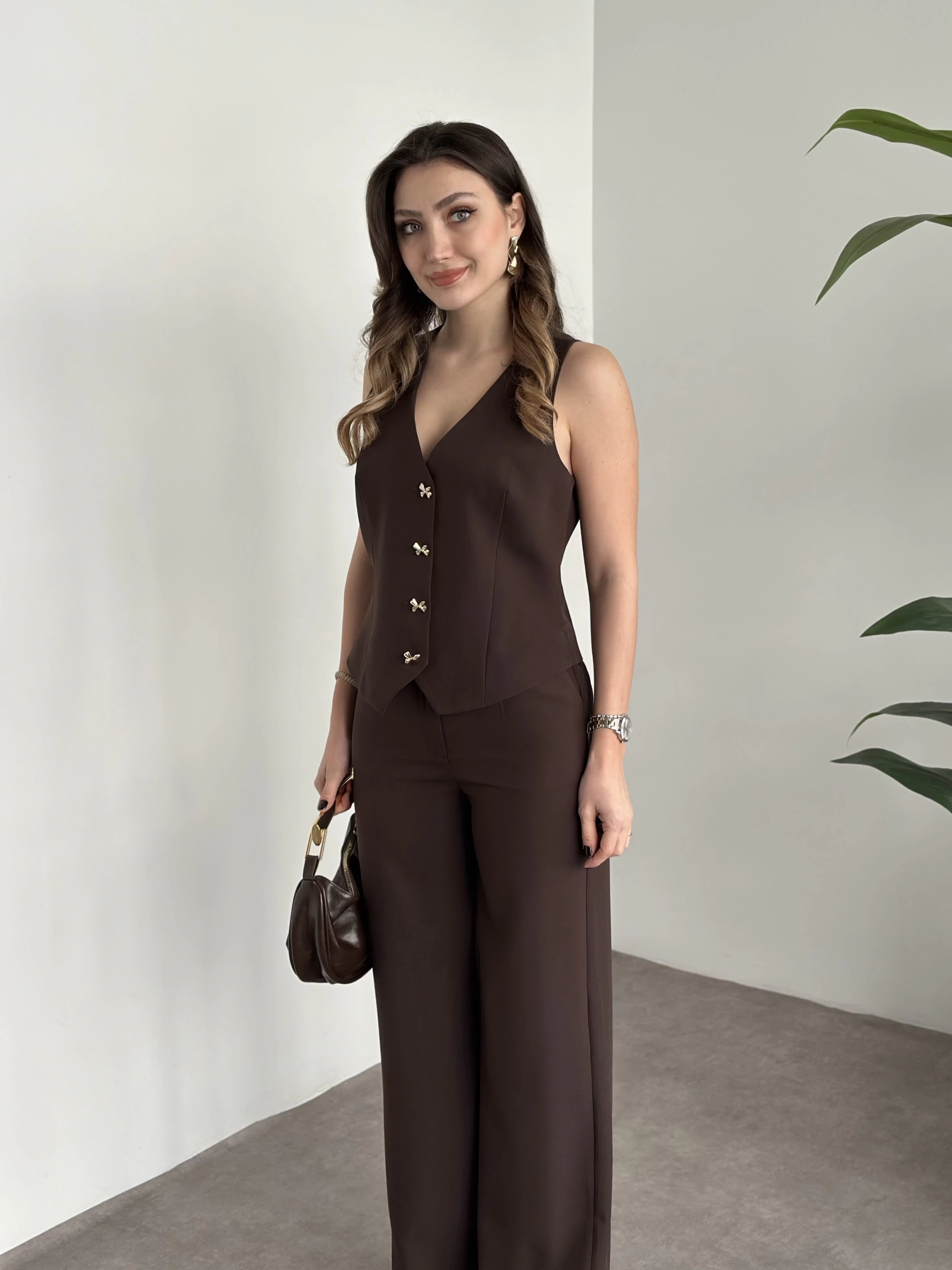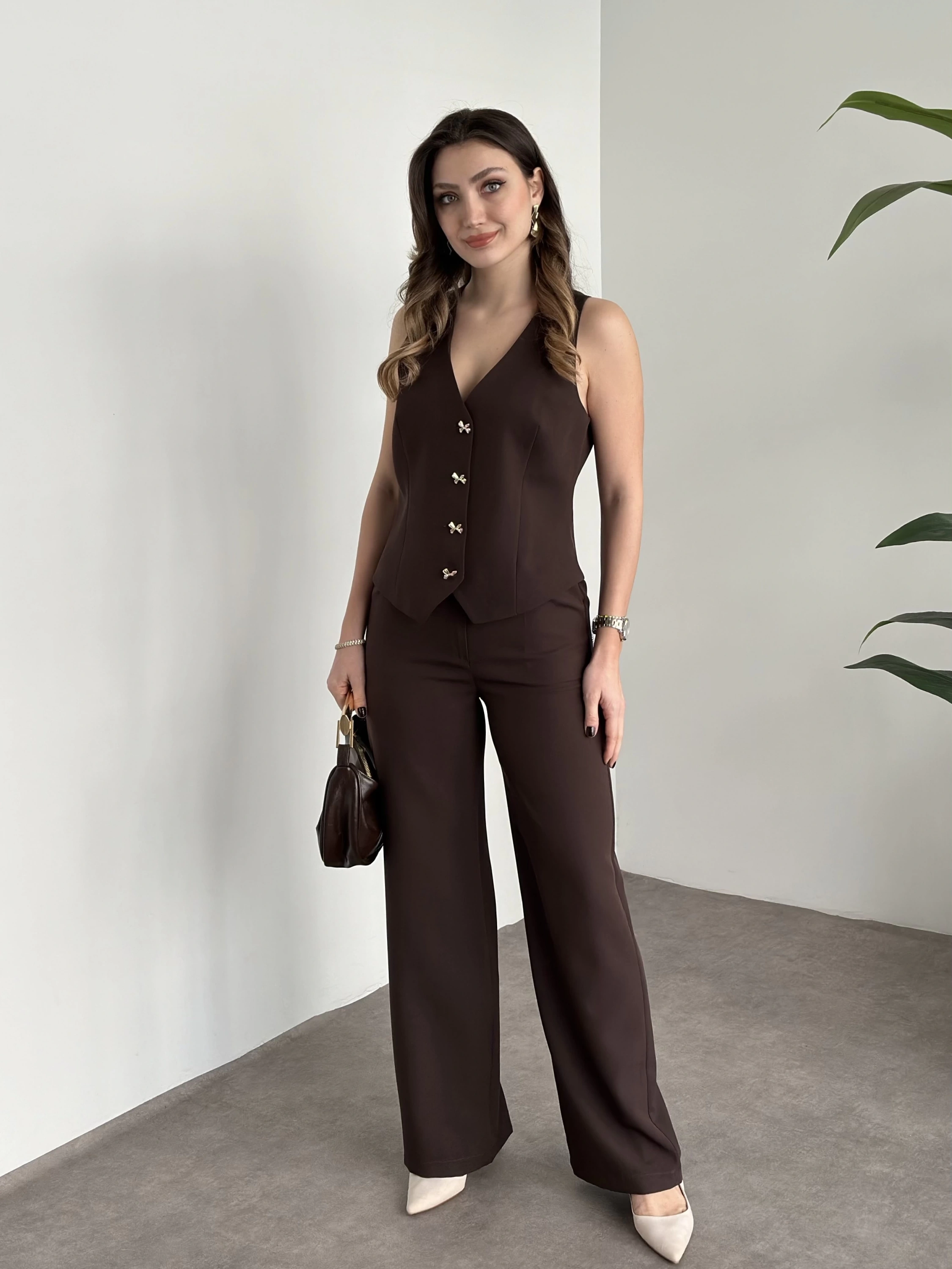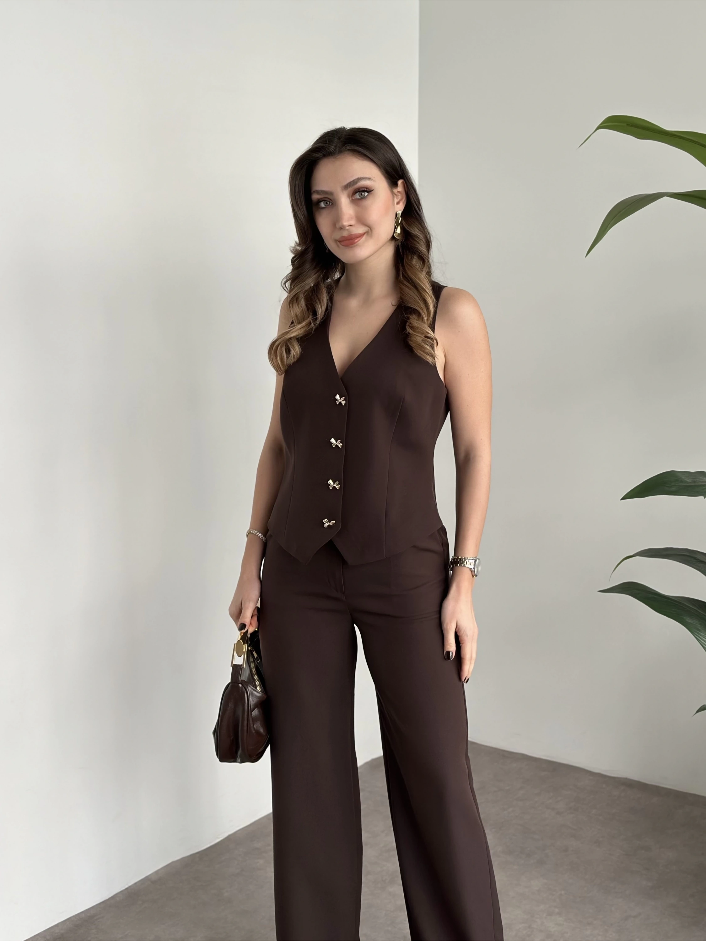 Premium yandan bağlama detaylı double kumaş takım siyah
