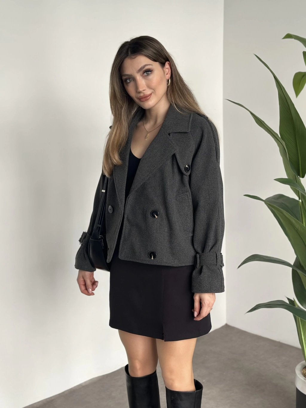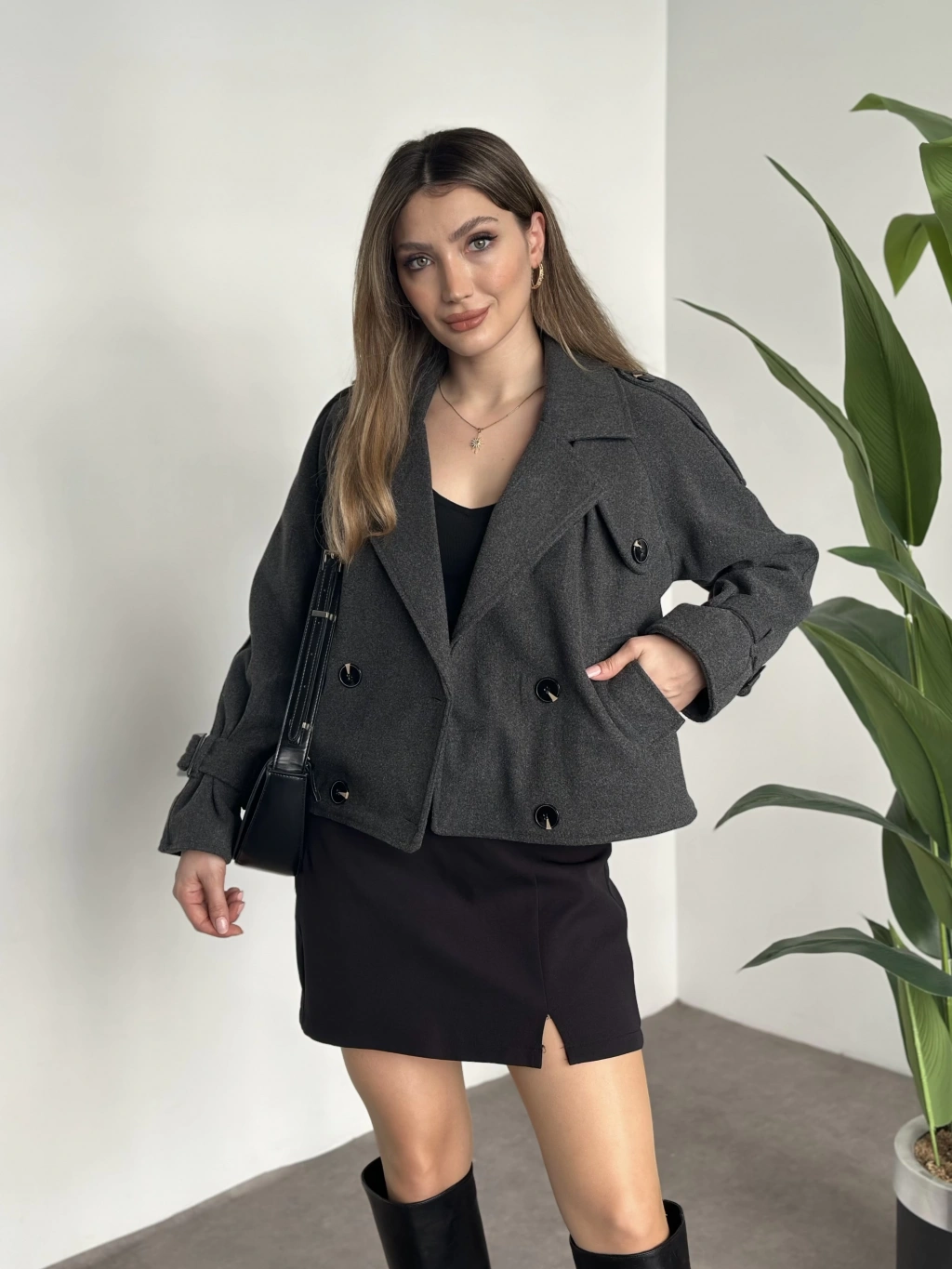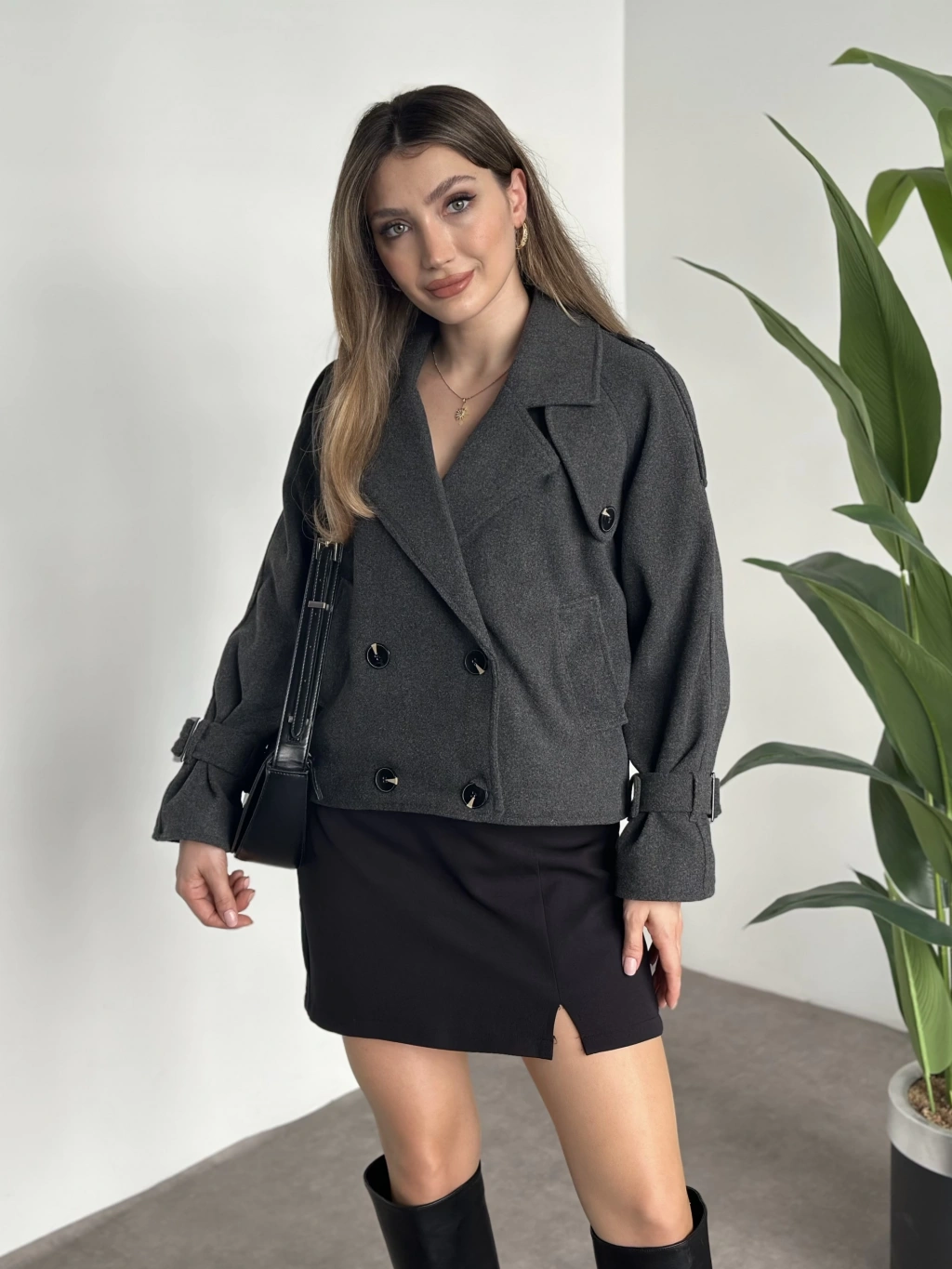 Düğmeli astarlı kısa kaşe kaban antrasit