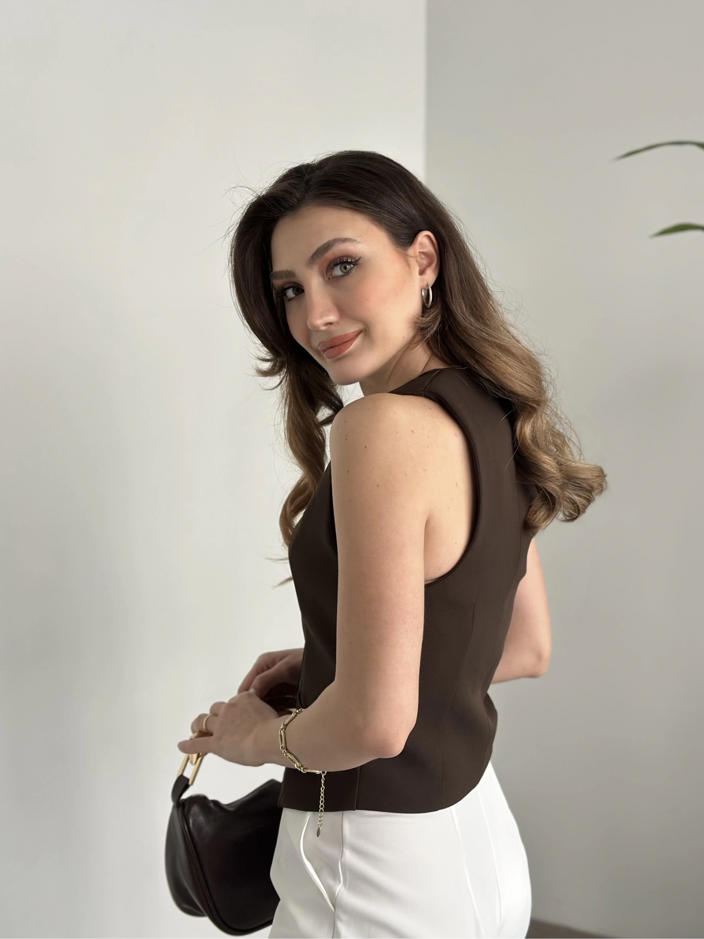 Sırt dekolteli askılı keten elbise yağ yeşili