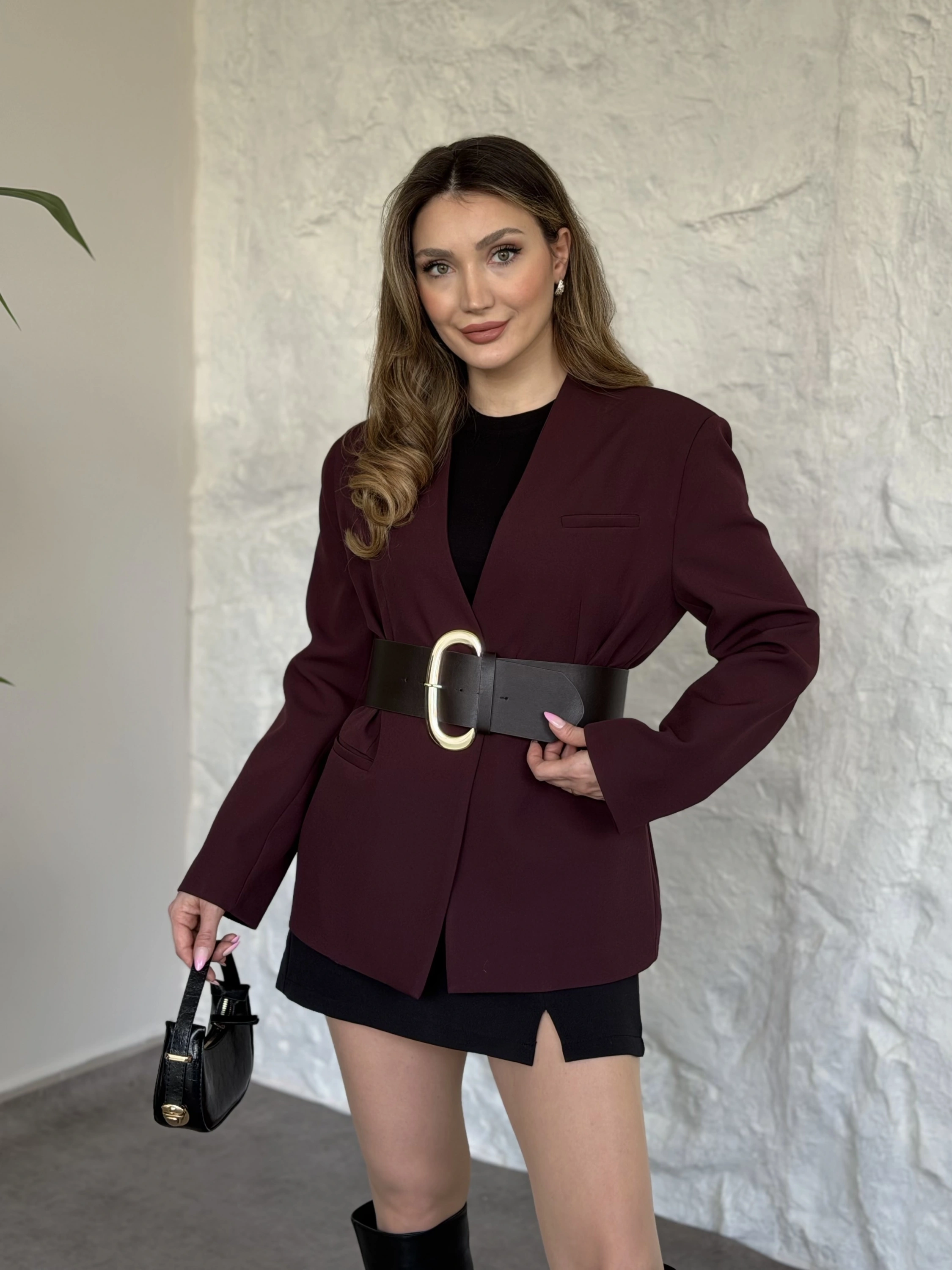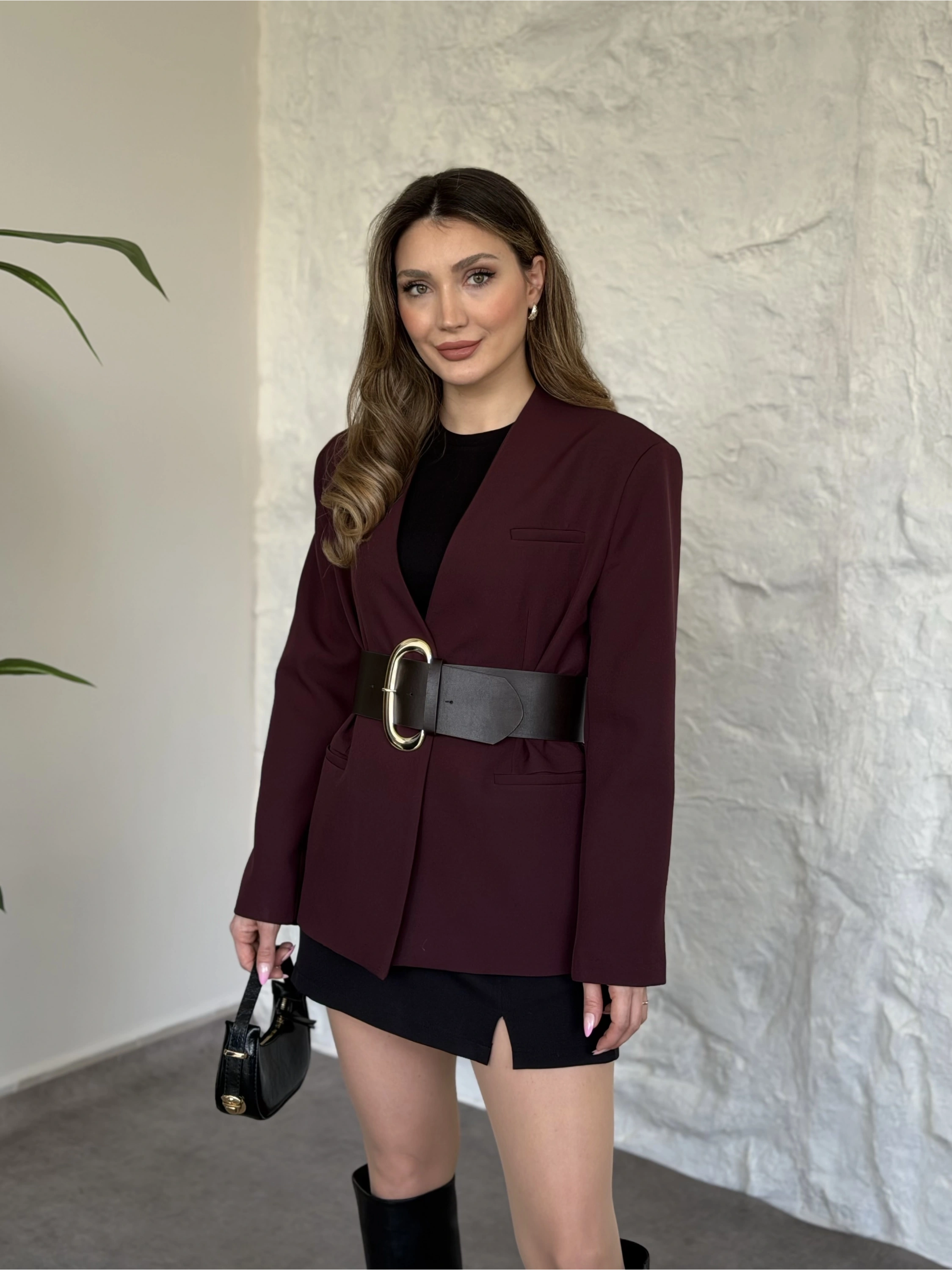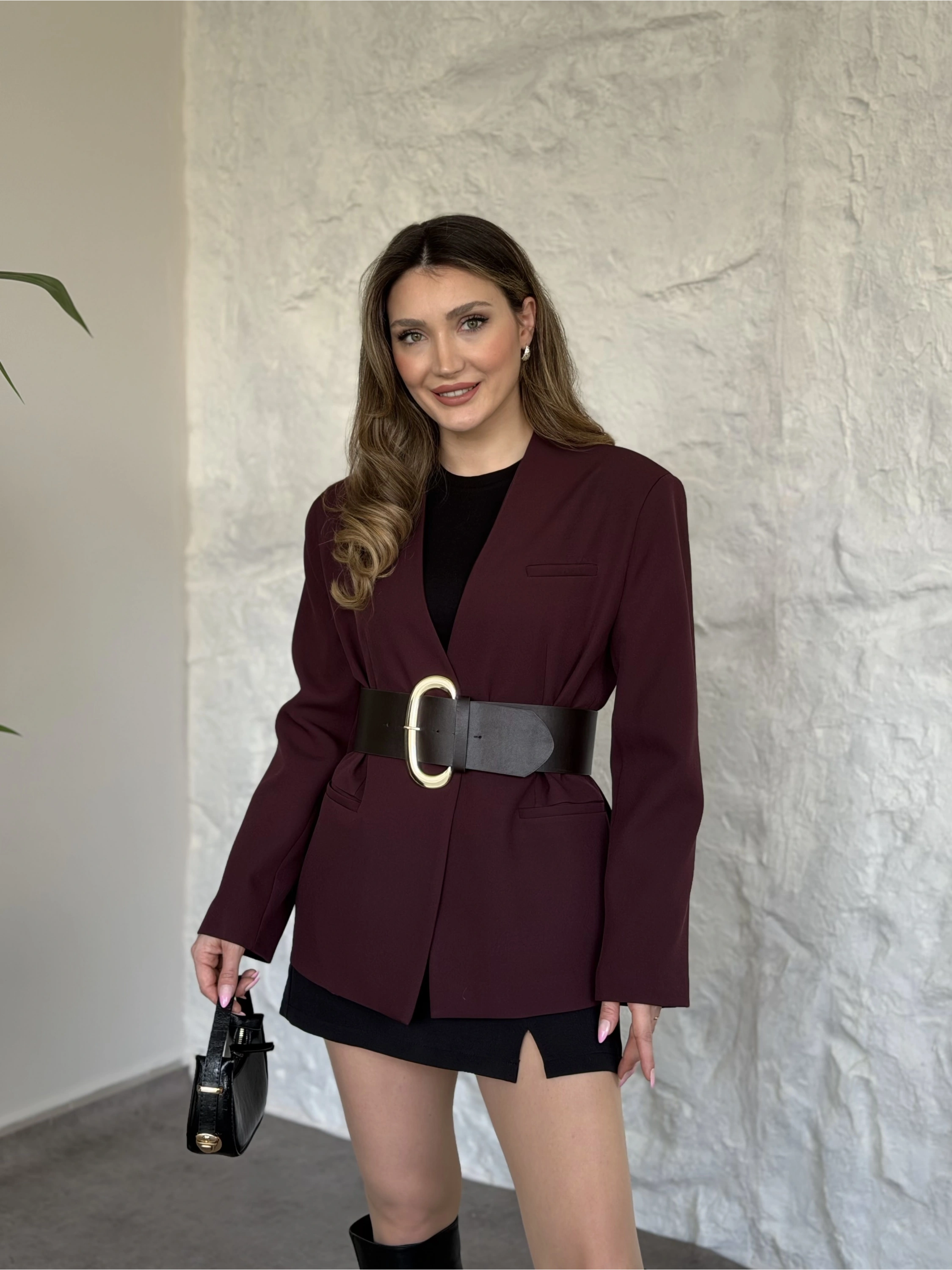 Düğmesiz geniş kemerli blazer ceket lacivert