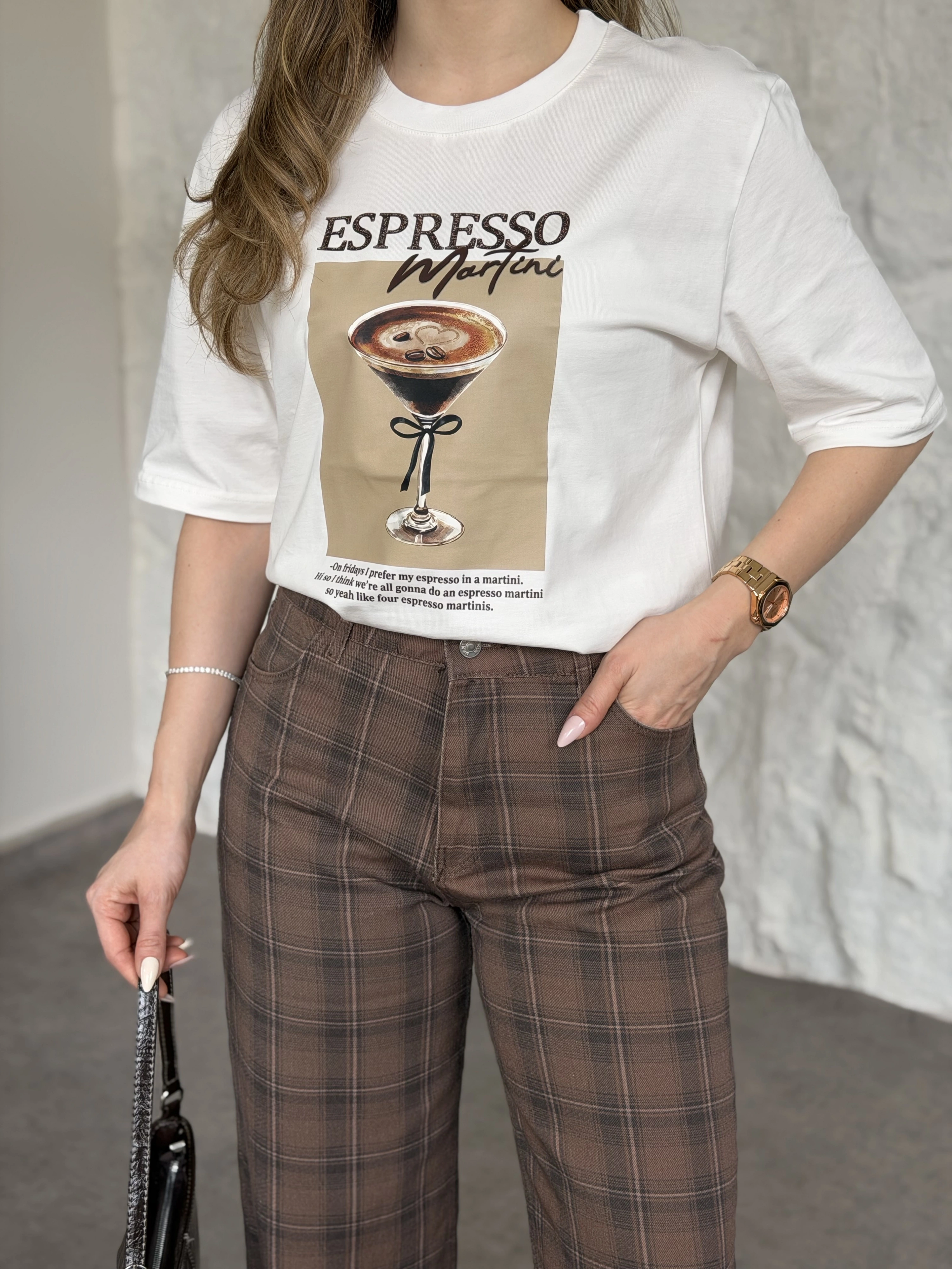 Espresso baskılı oversize basic tişört