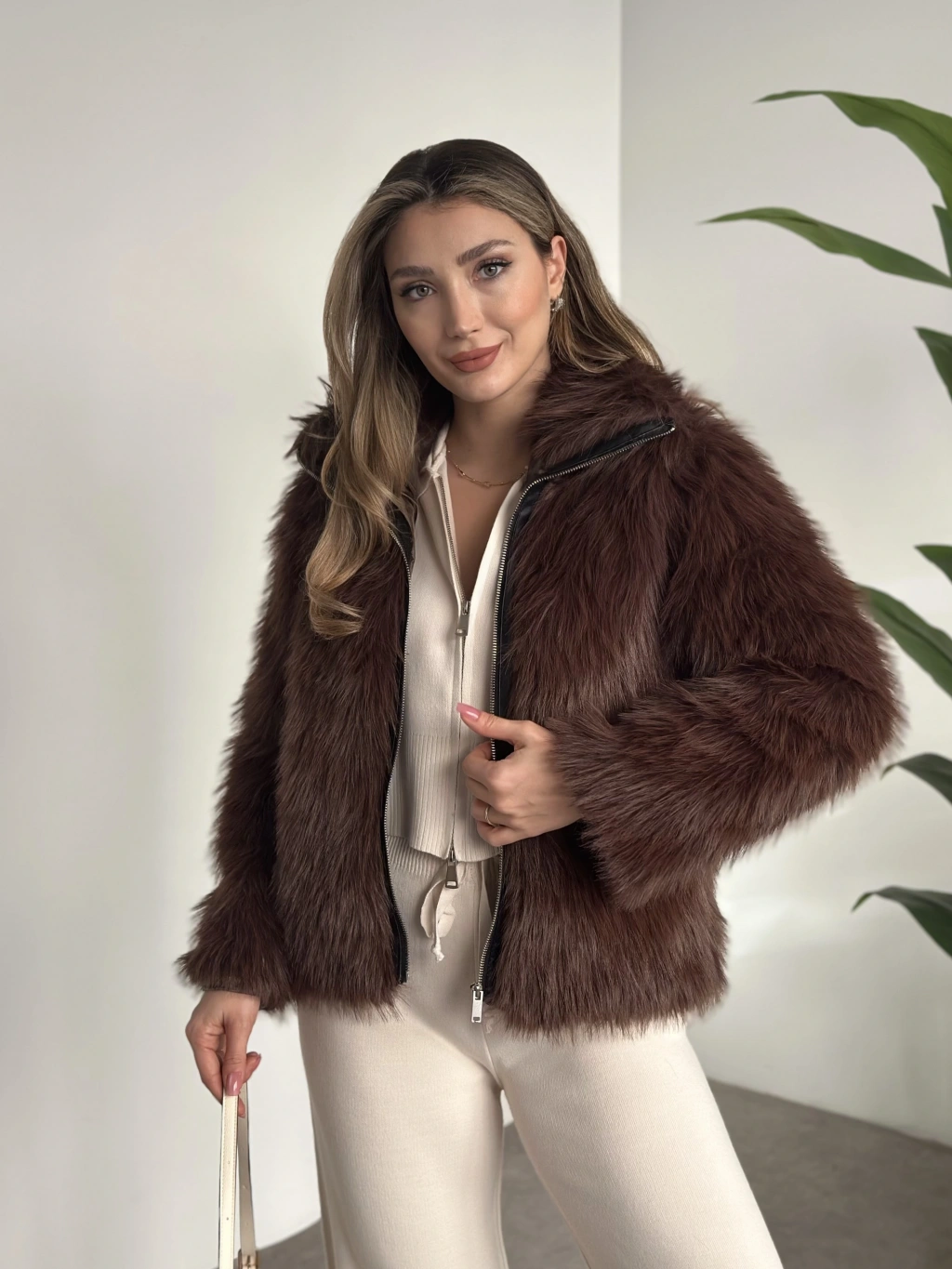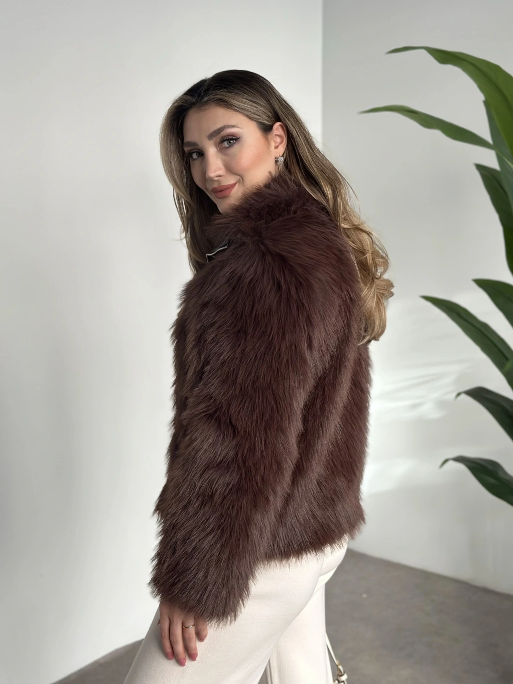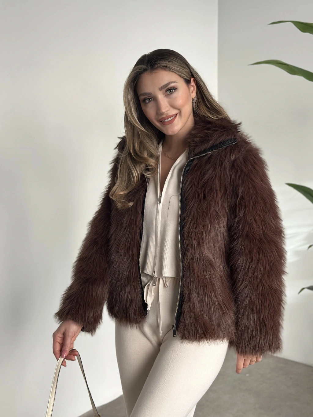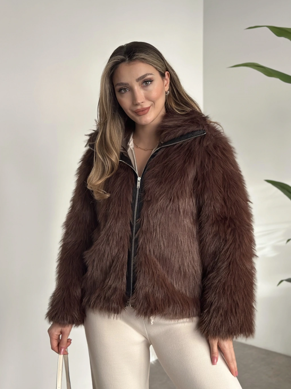 Dokulu süet içi peluşlu oversize marka model mont kahve