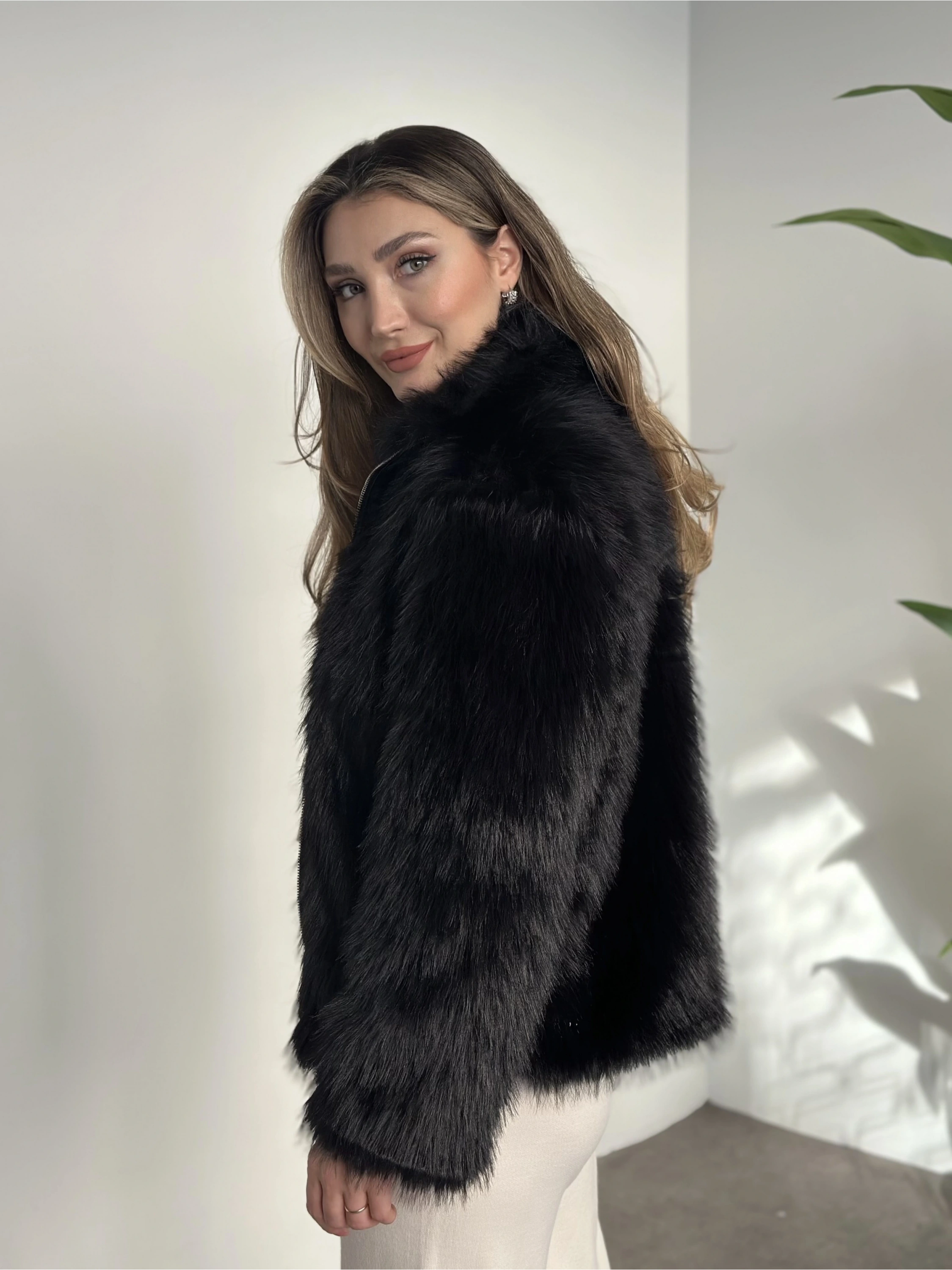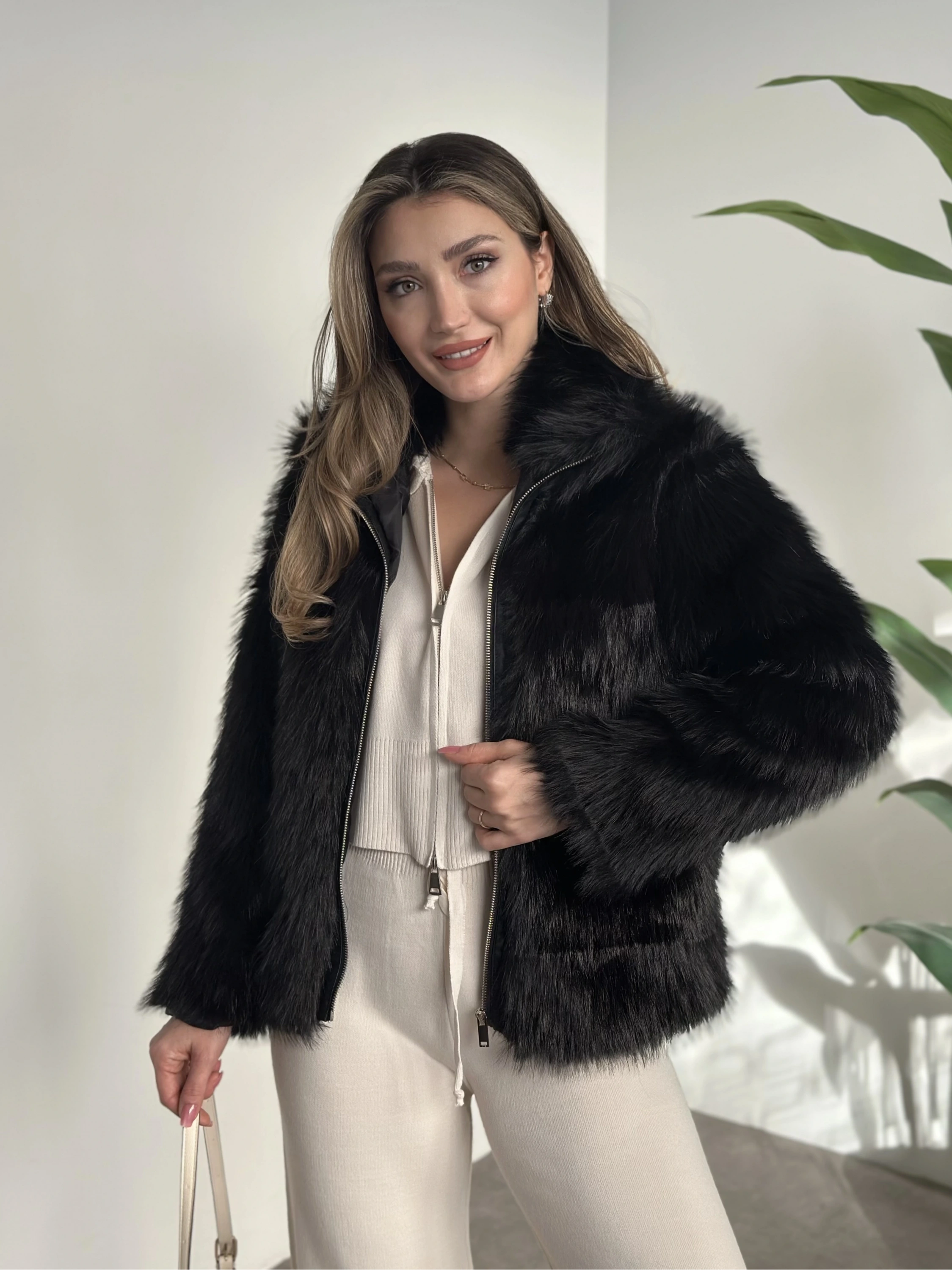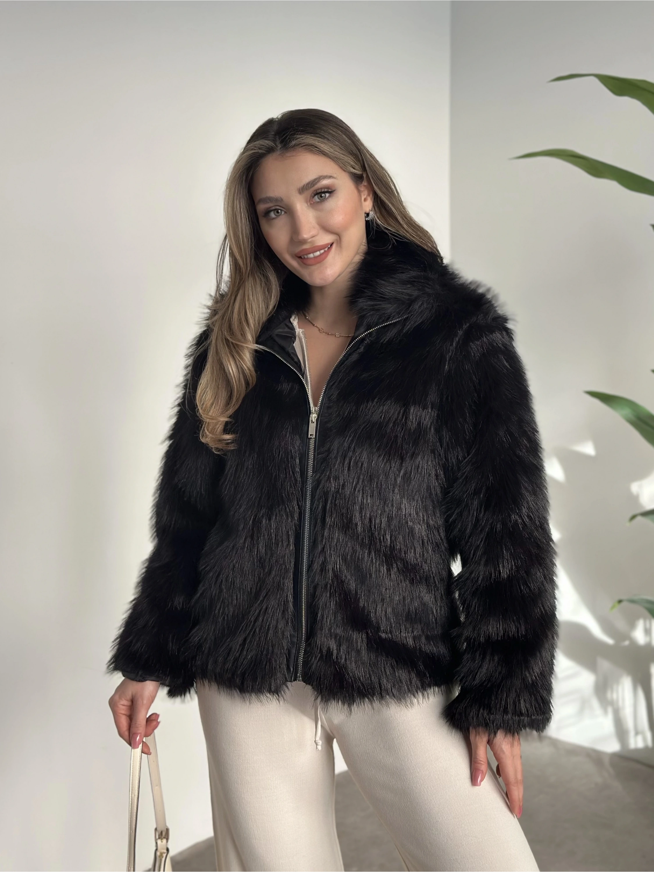 Dokulu süet içi peluşlu oversize marka model mont siyah