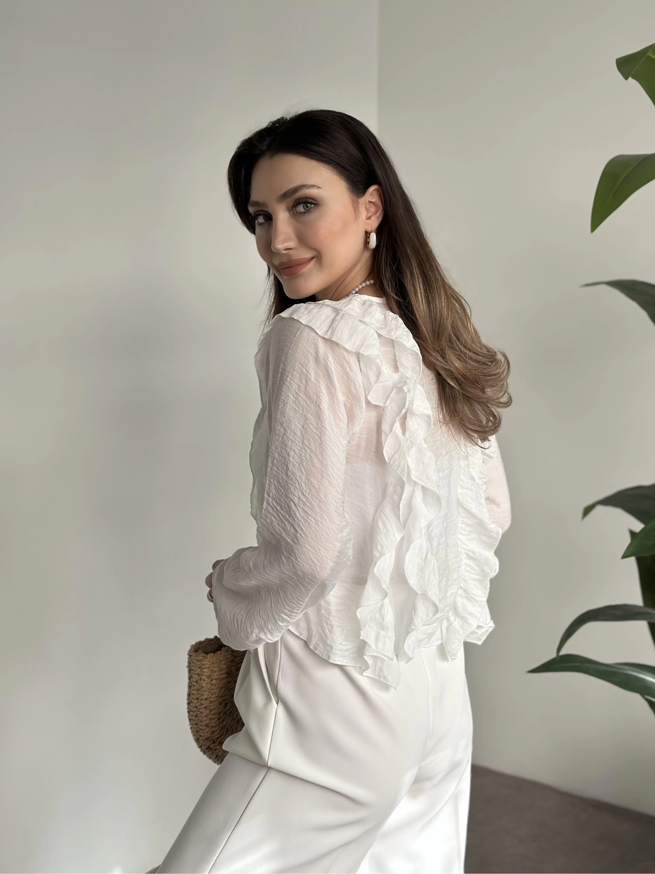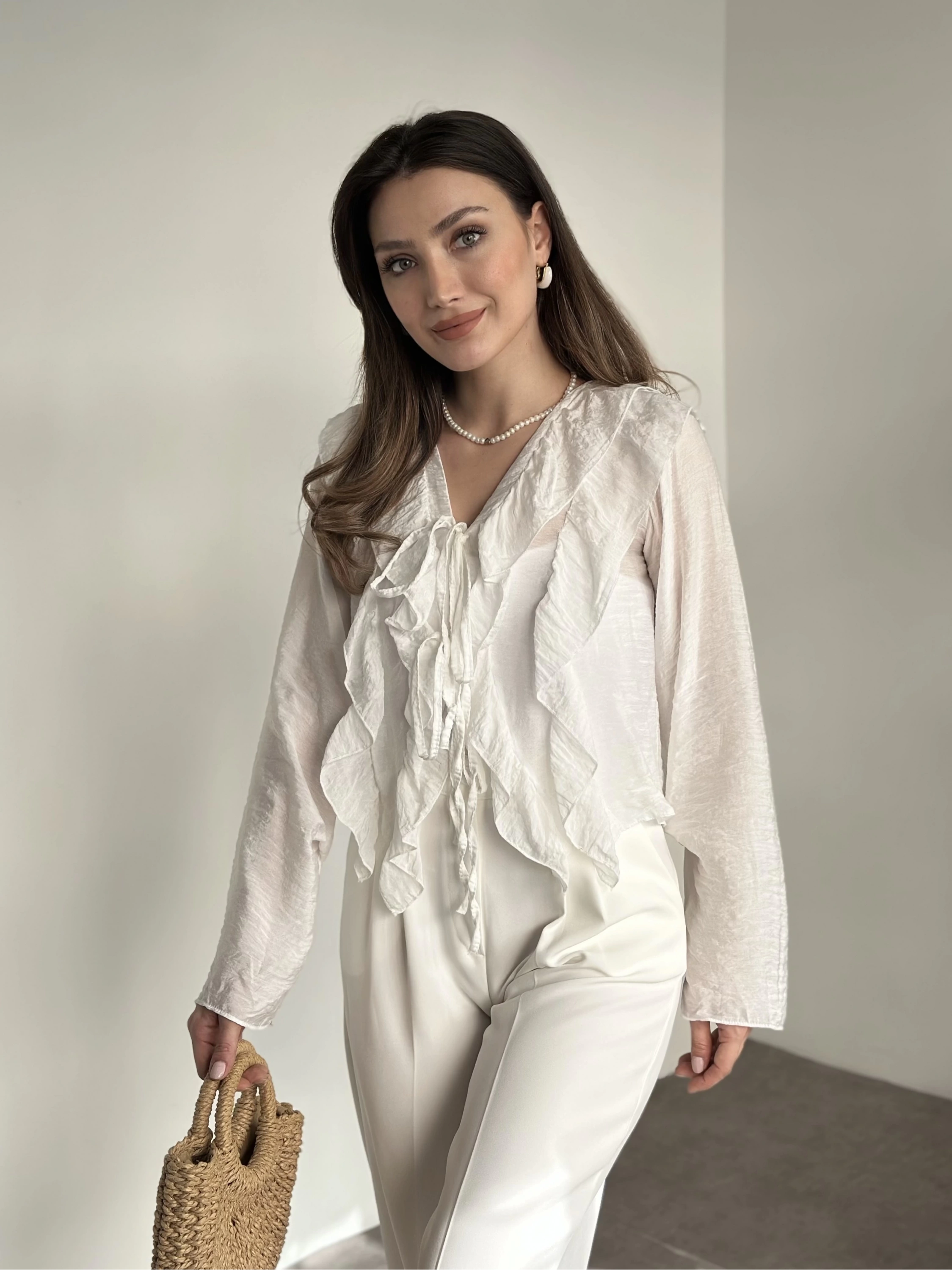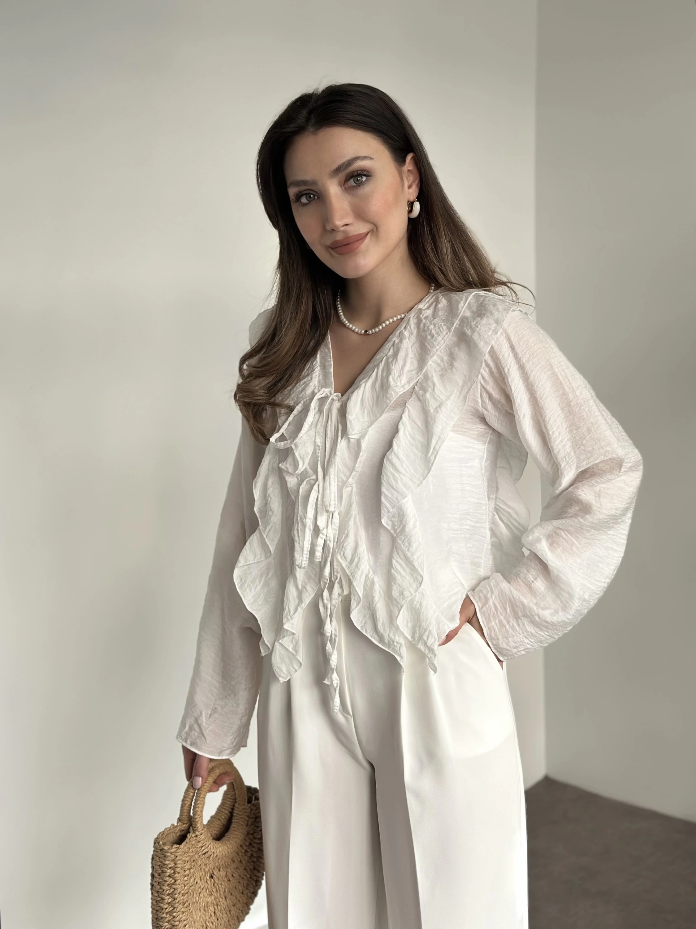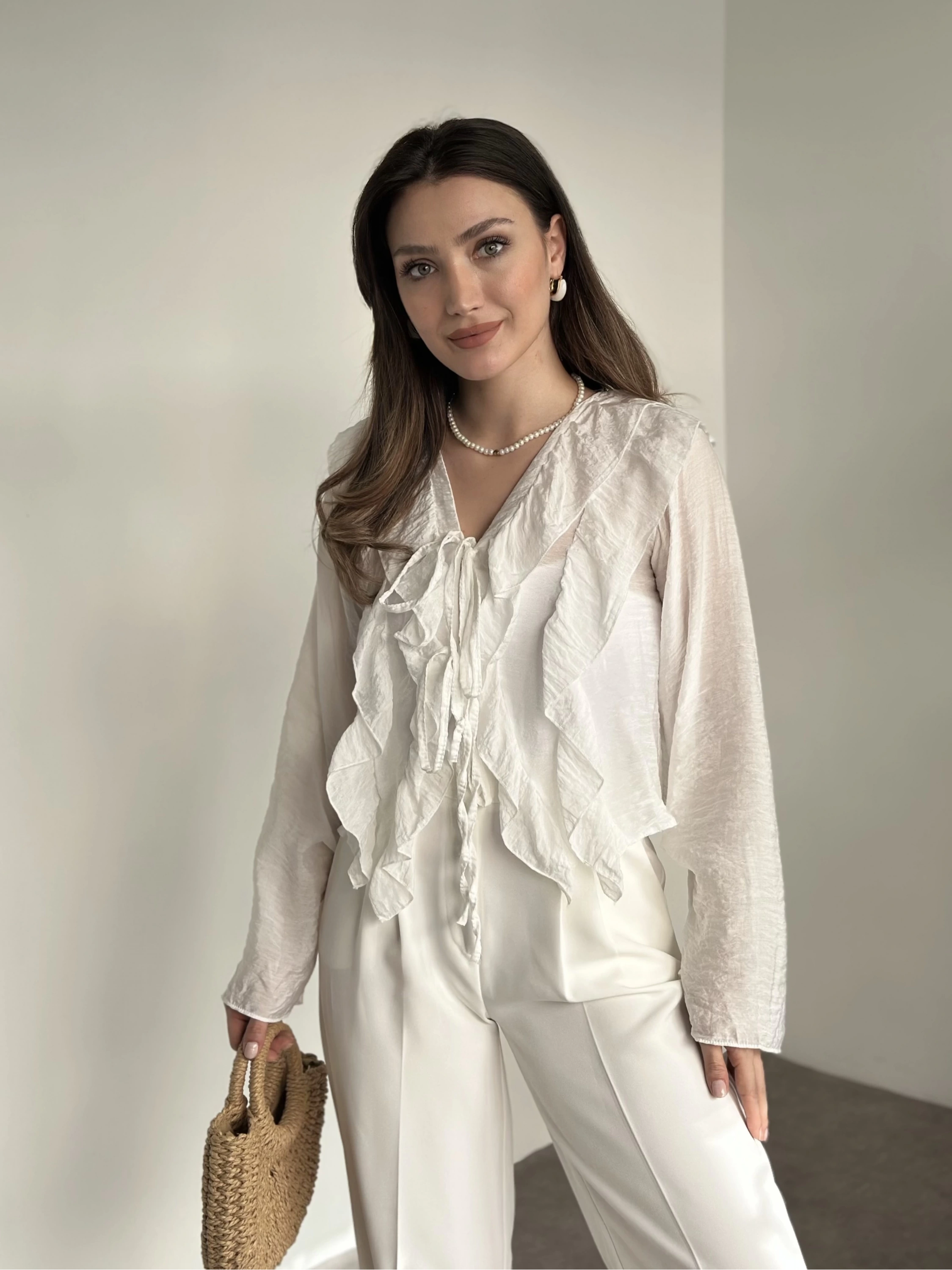 Fırfırlı gömlek bluz beyaz