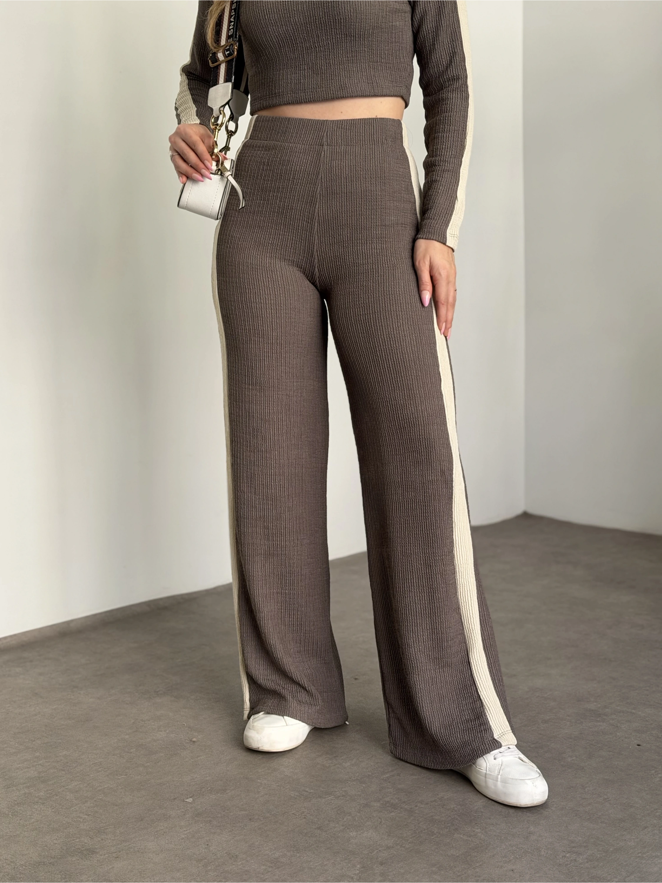 Fitilli şeritli crop boy takım gri