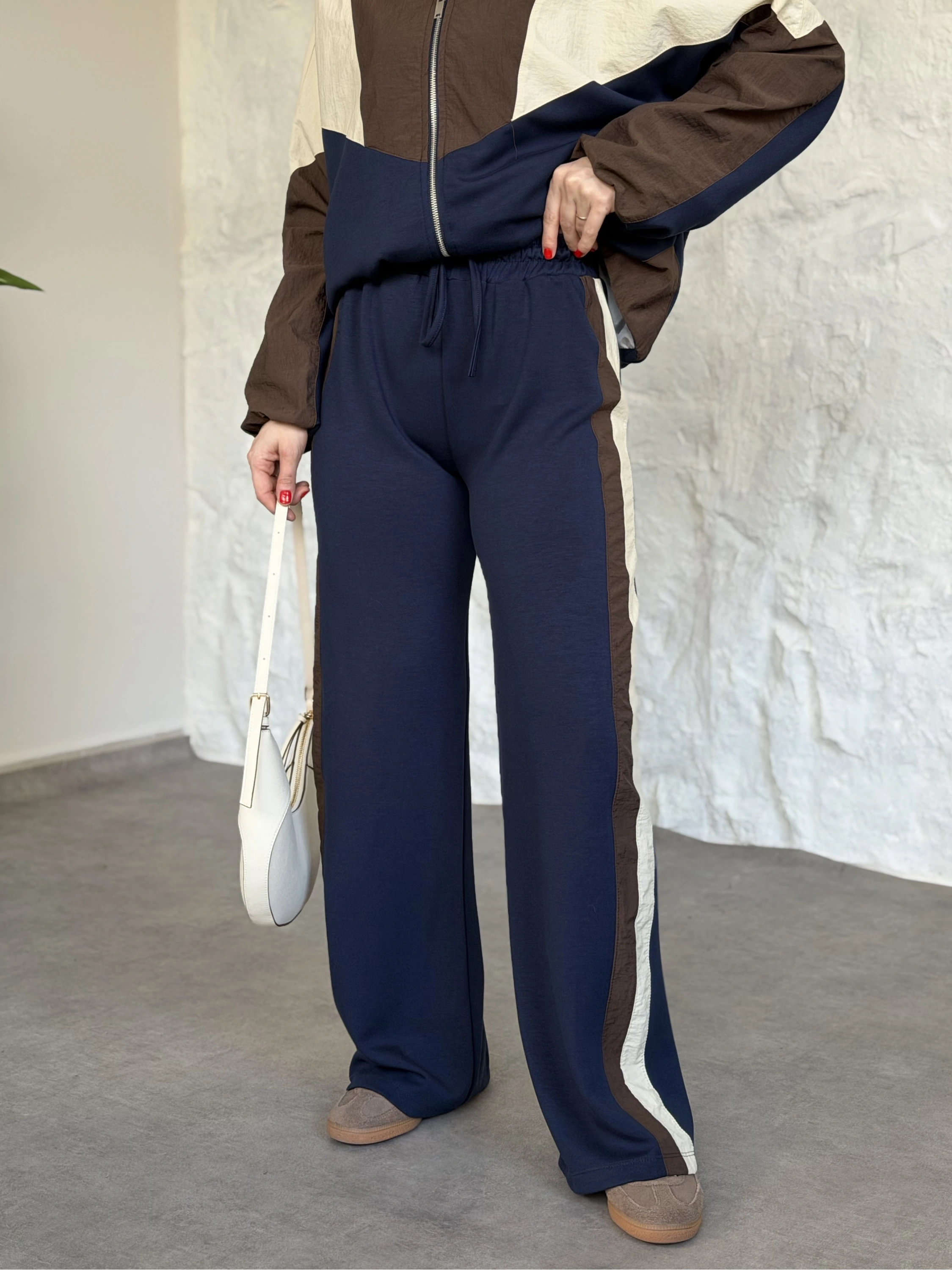 Garnili paraşüt kumaş detaylı ikili takım lacivert