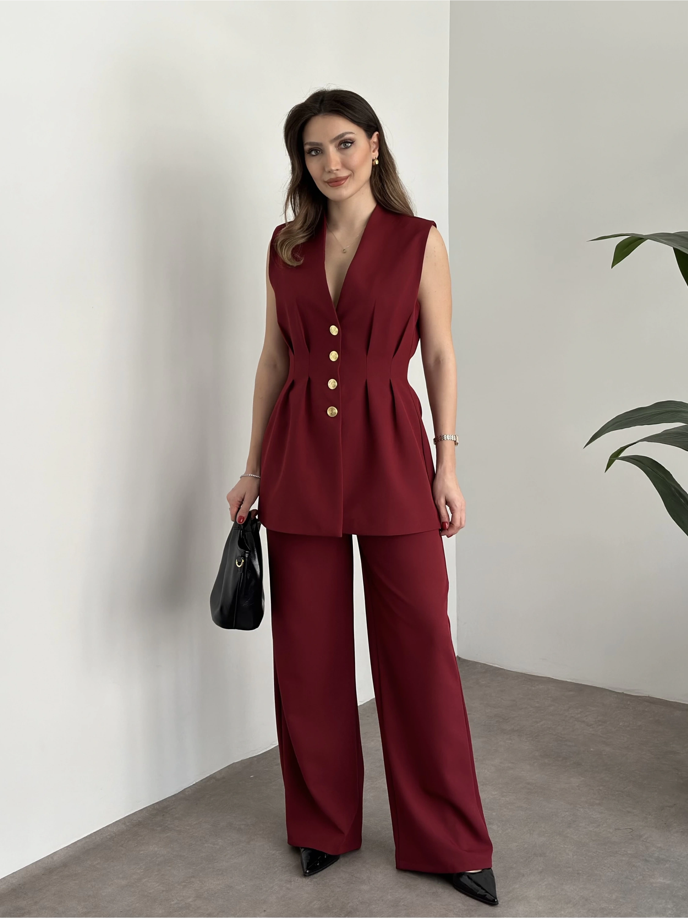 Premium yandan bağlama detaylı double kumaş takım siyah