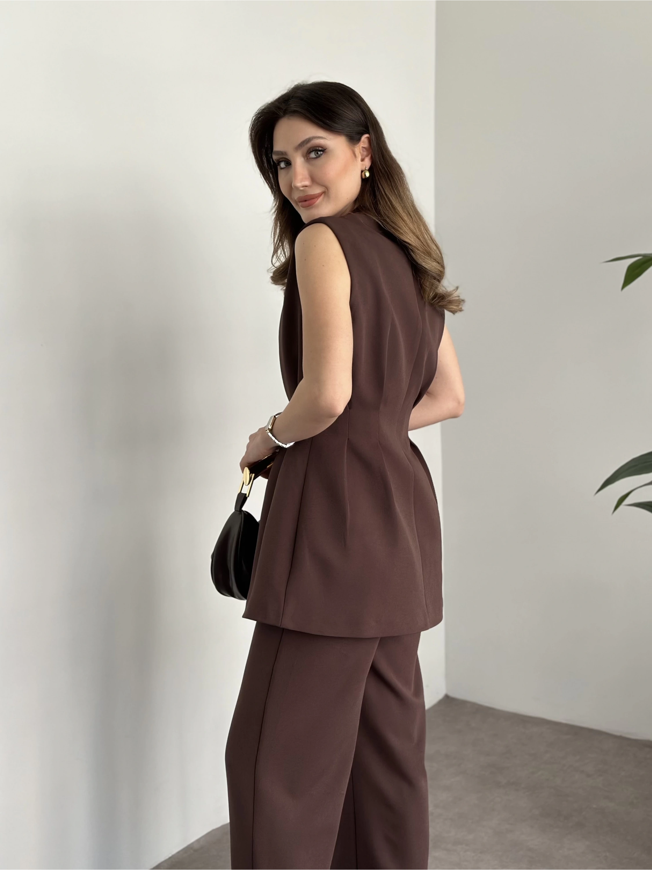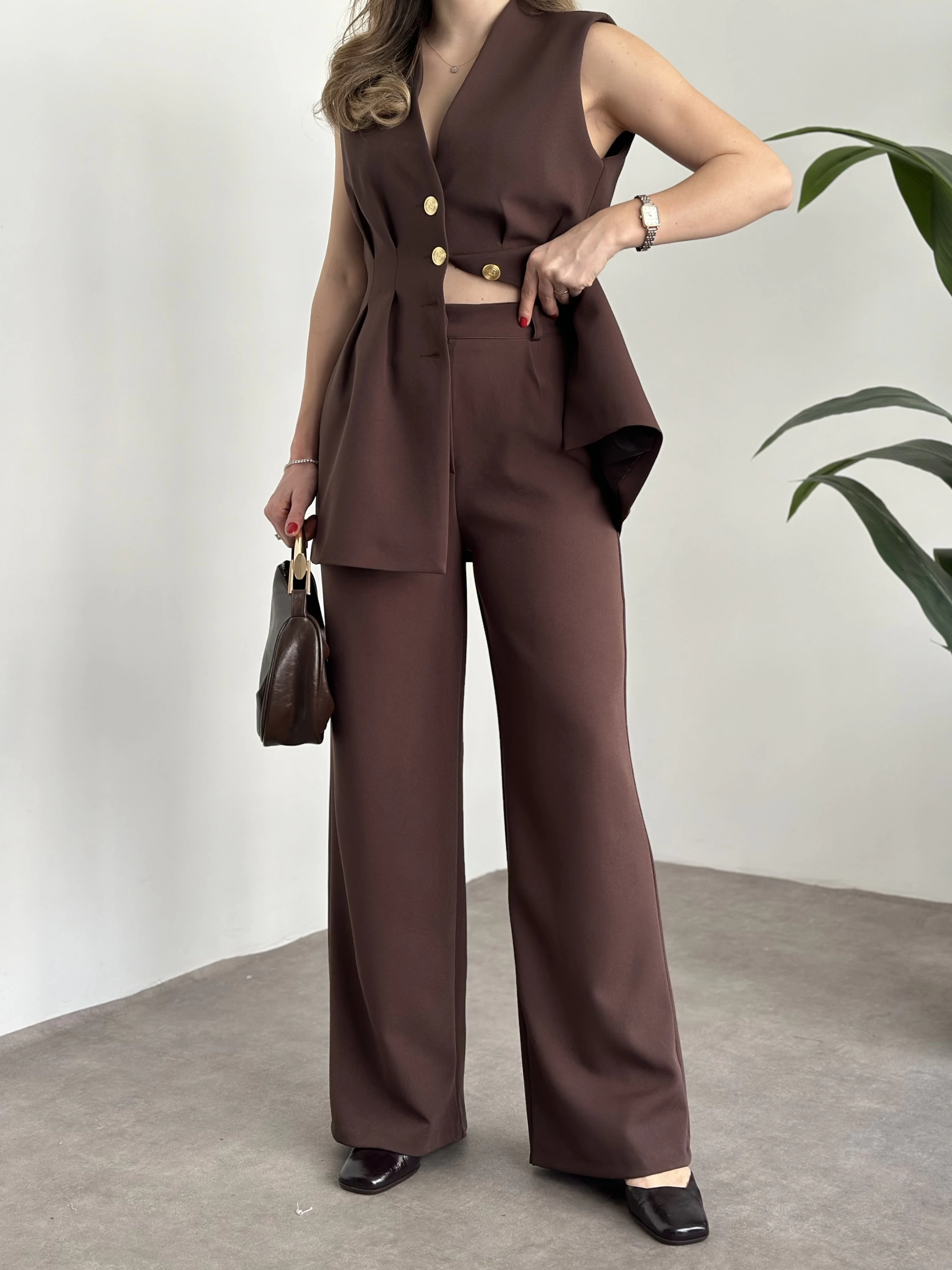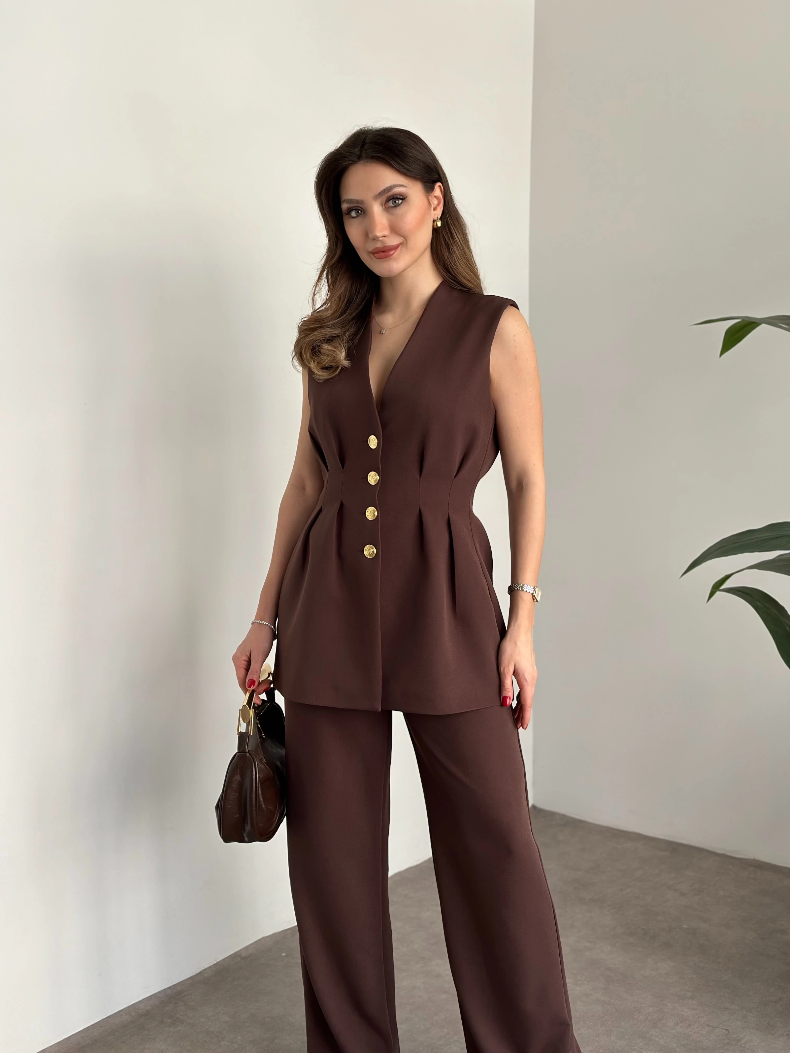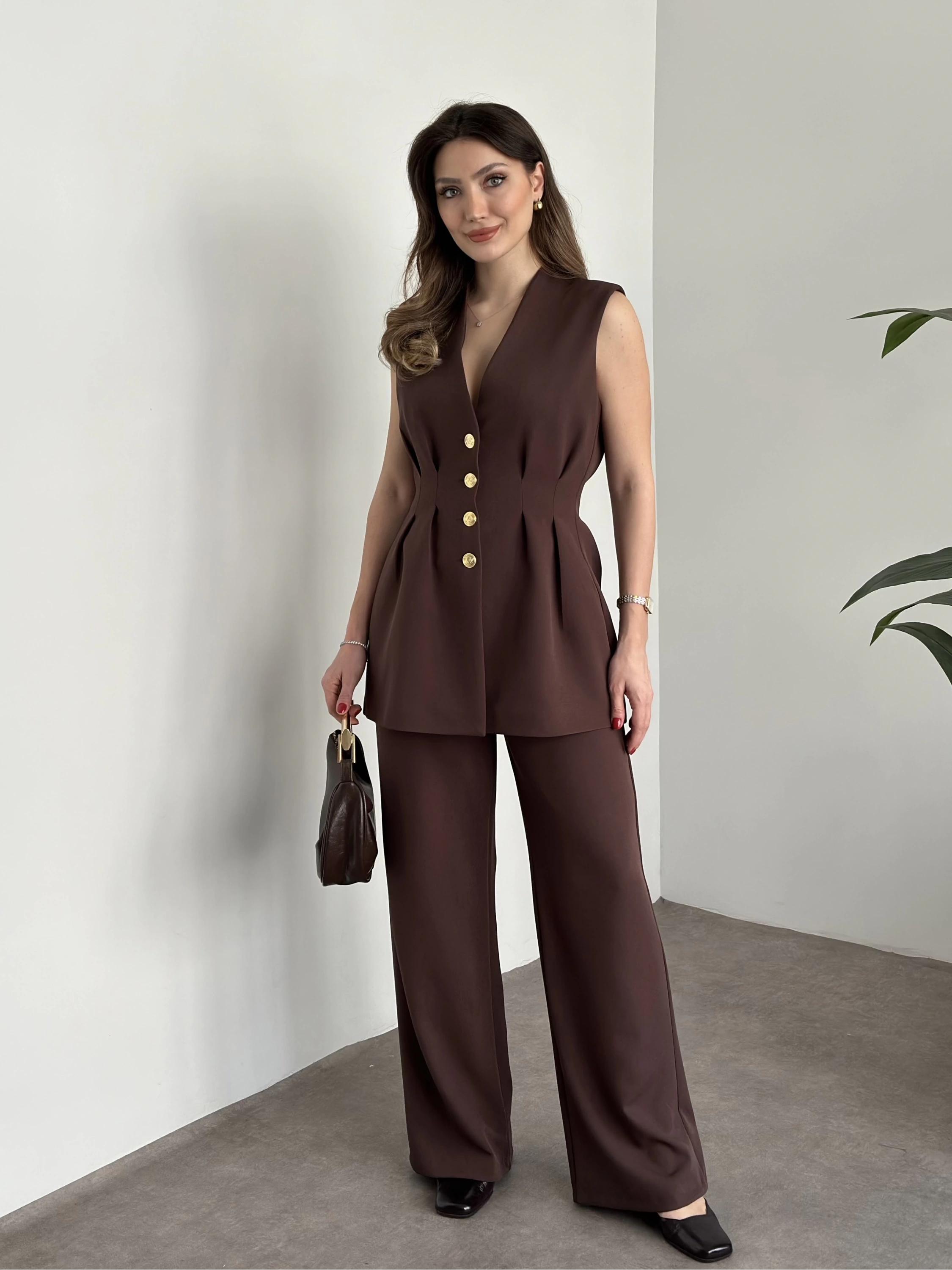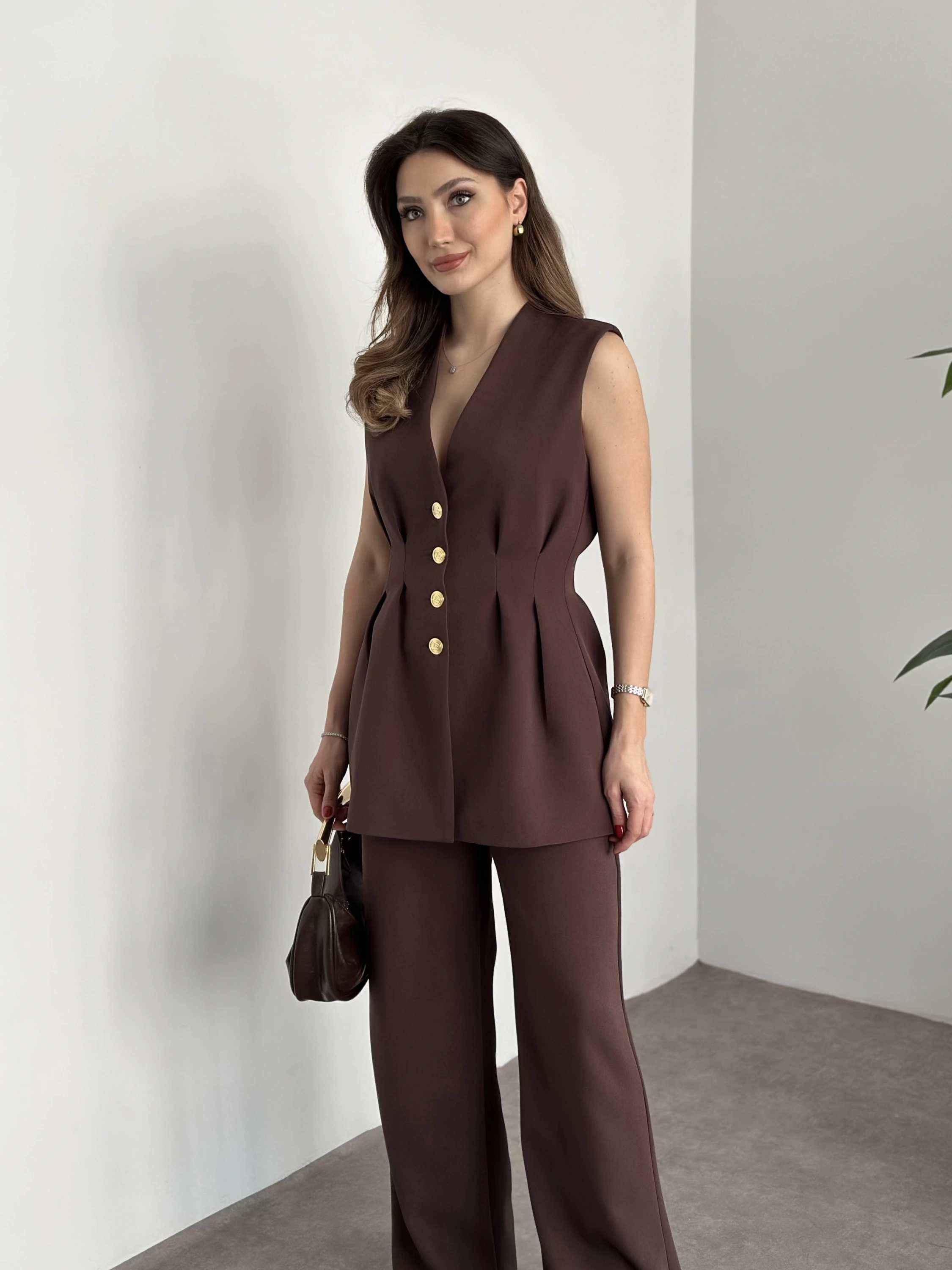 Garnili paraşüt kumaş detaylı ikili takım acı kahve