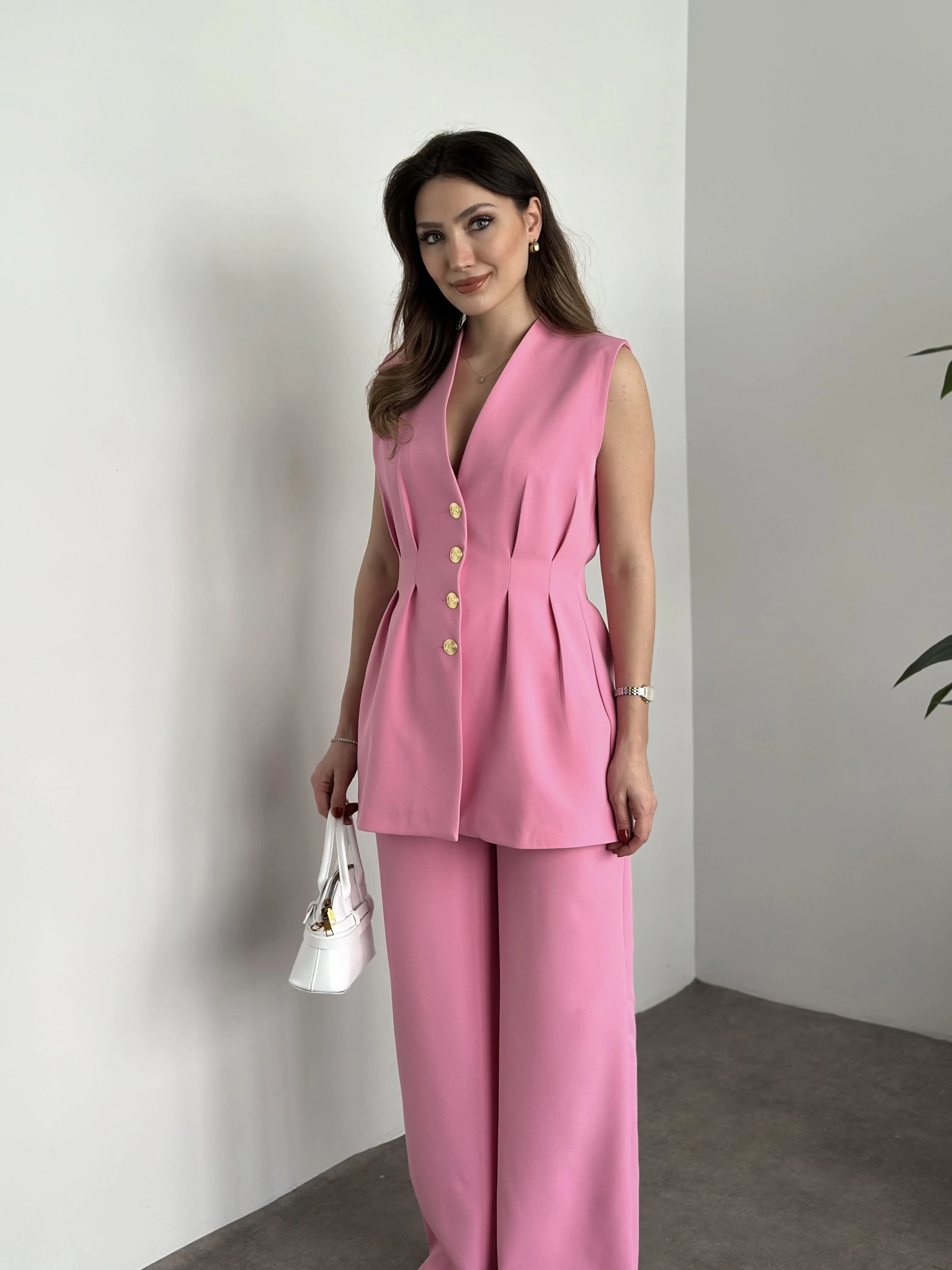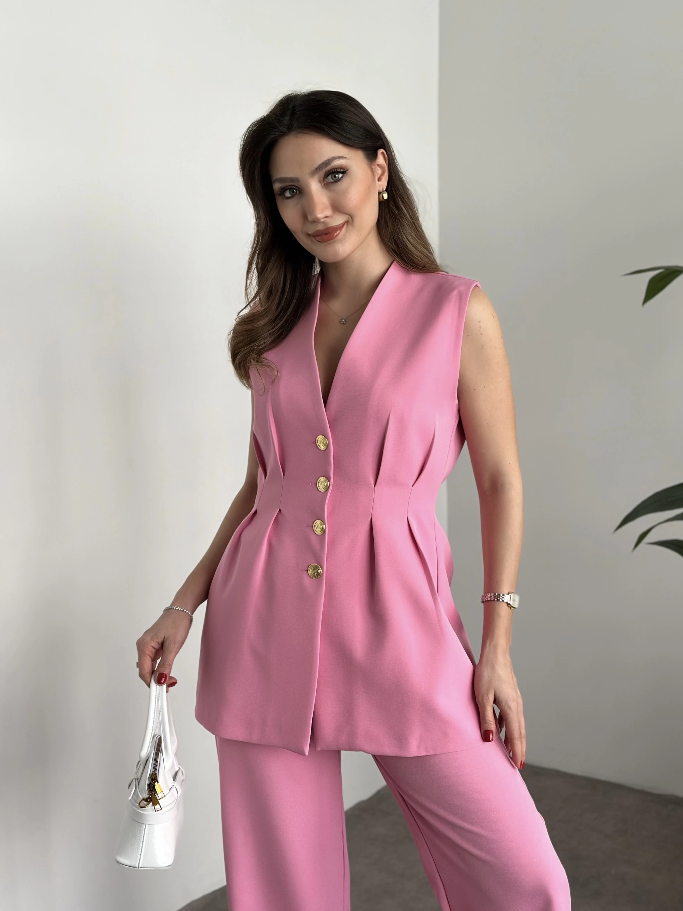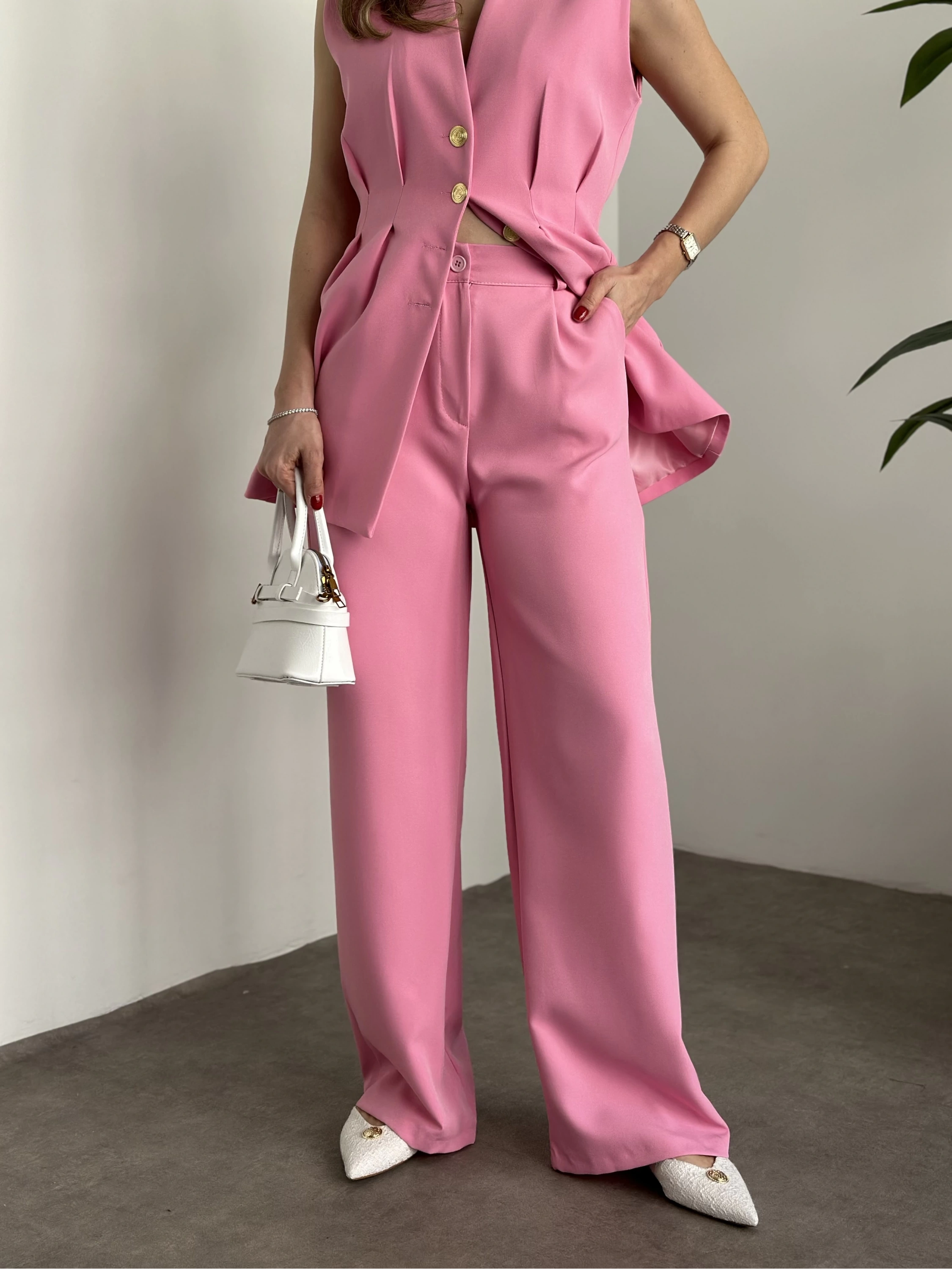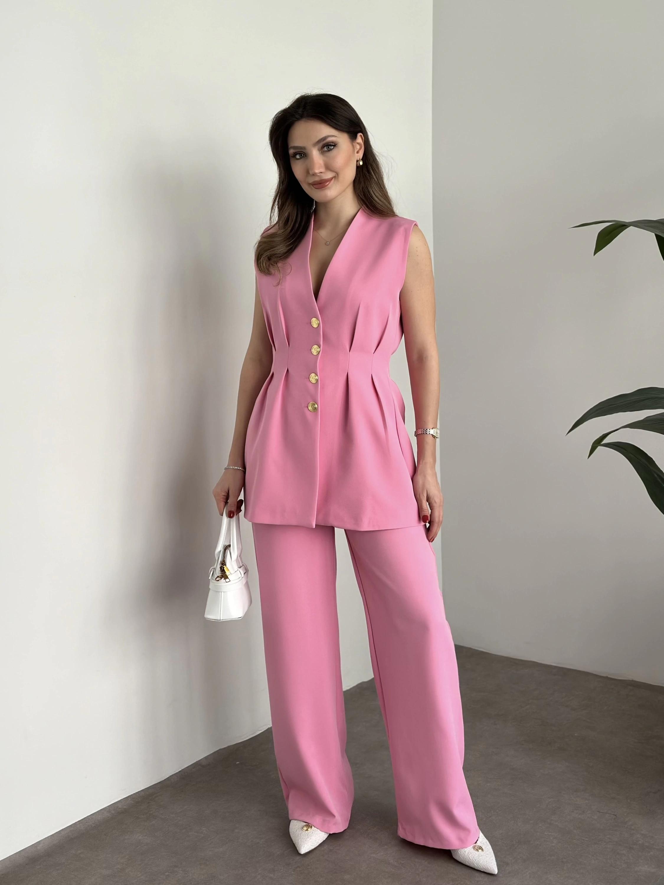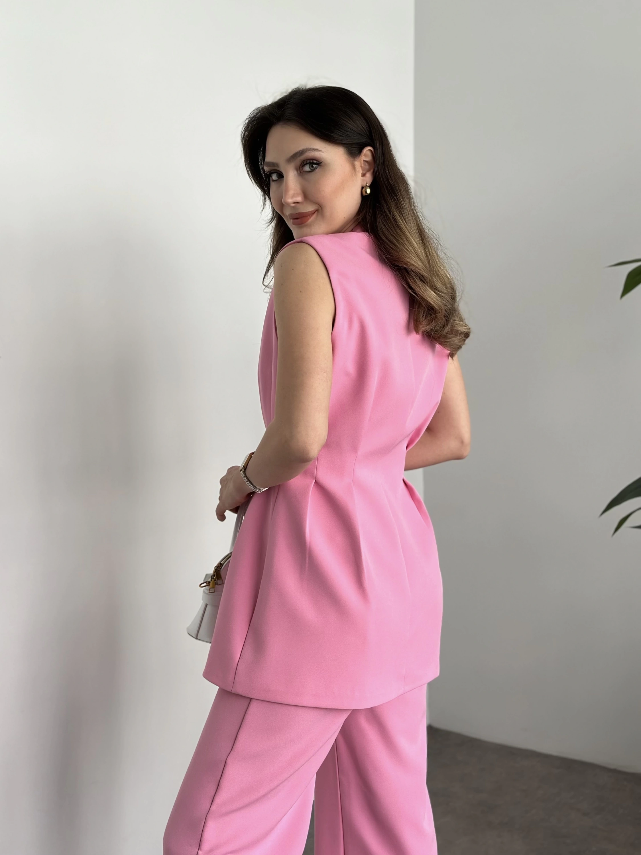 Sıfır kol belden bağlamalı kumaş takım siyah