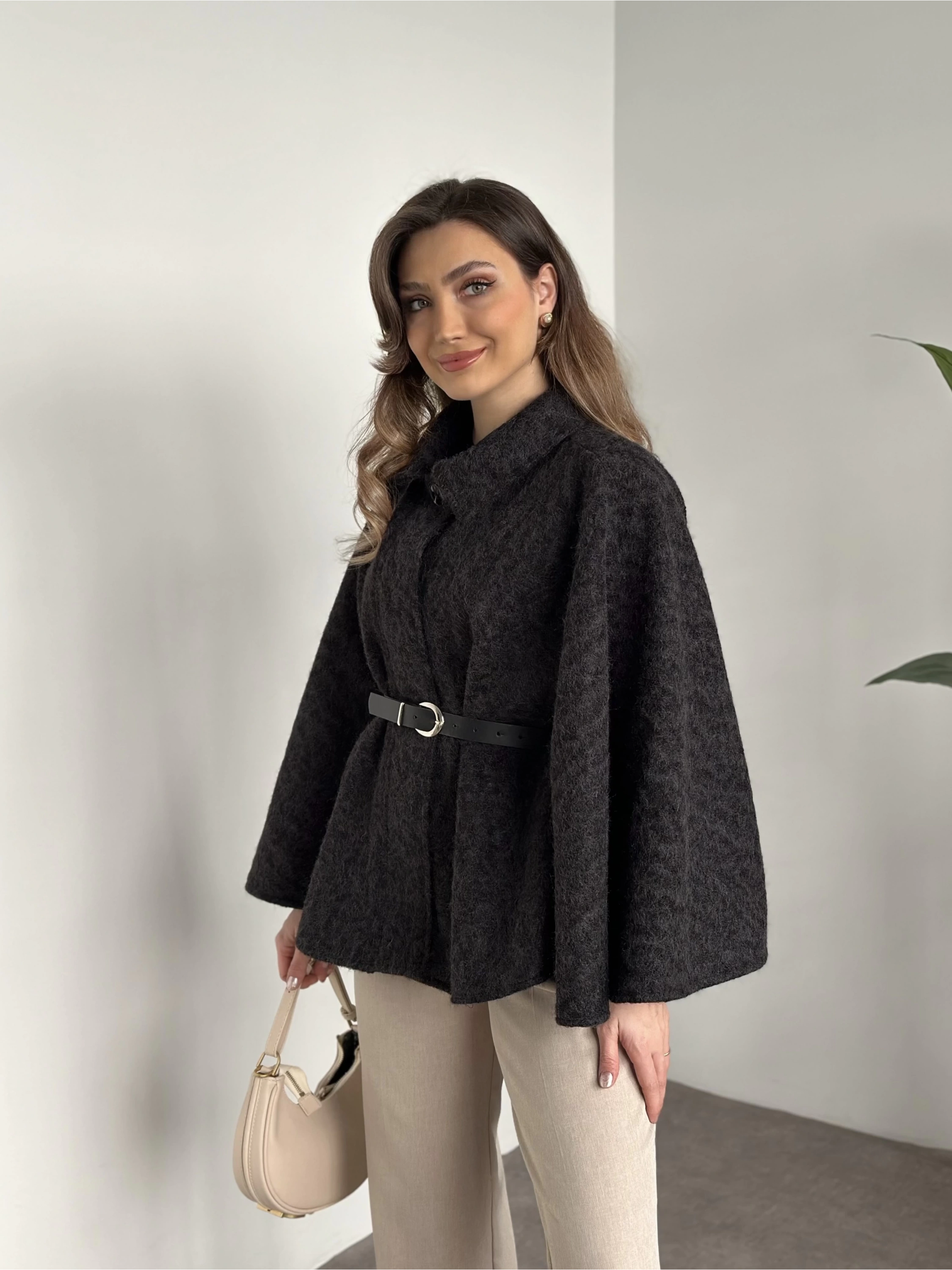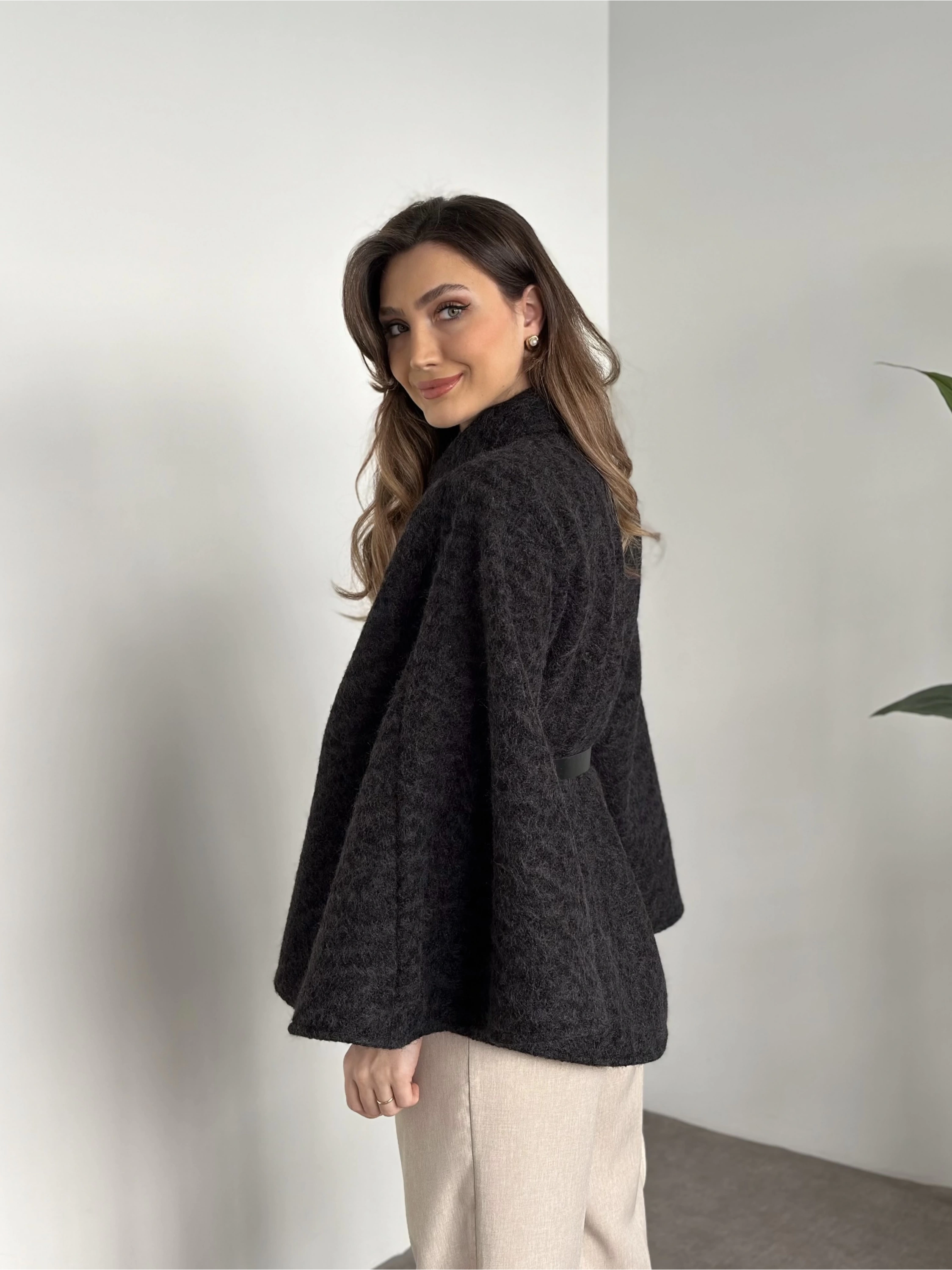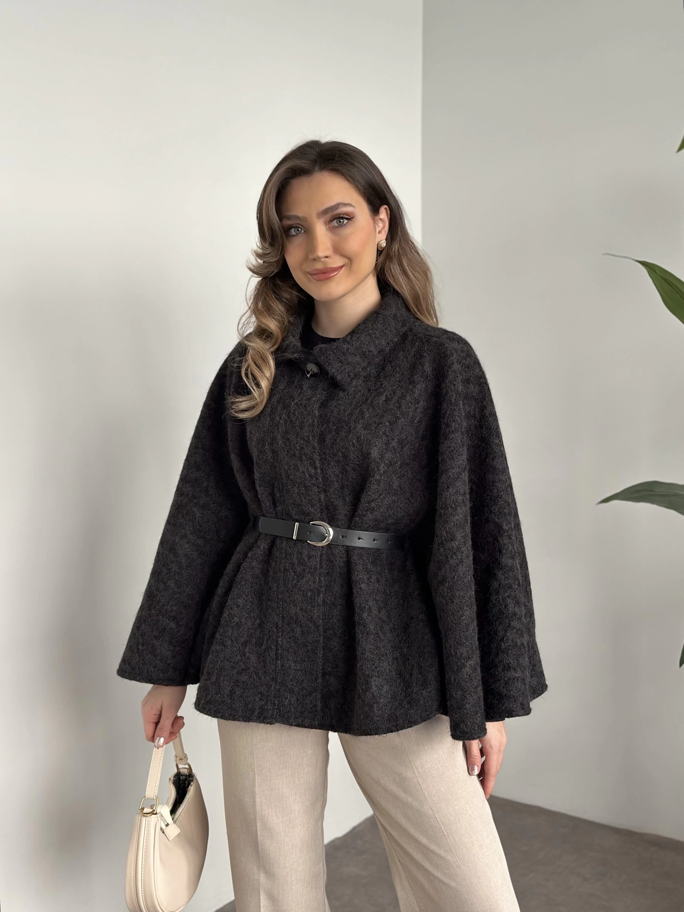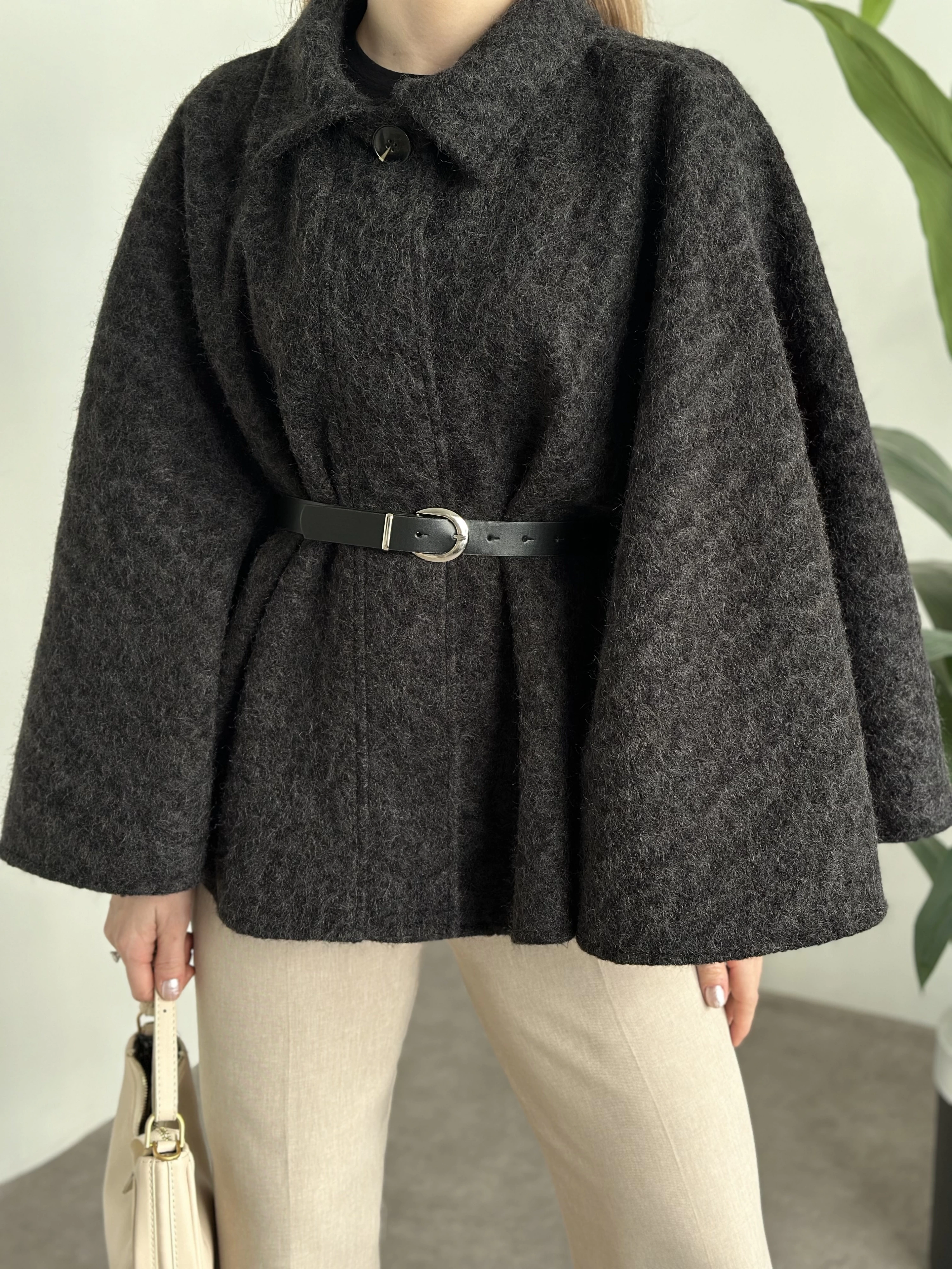 Oversize düğmeli astarlı bağlamalı kaşe kaban antrasit