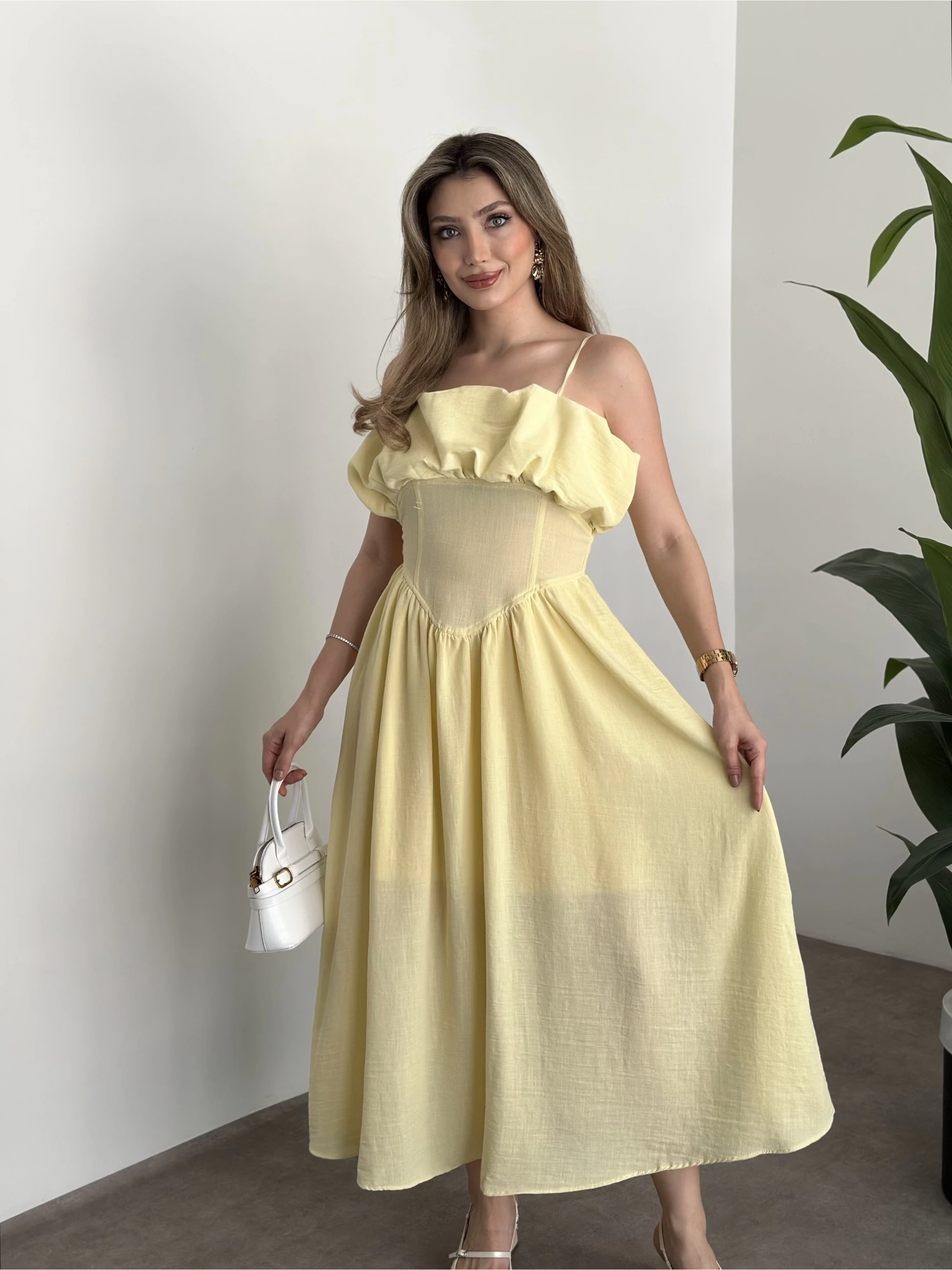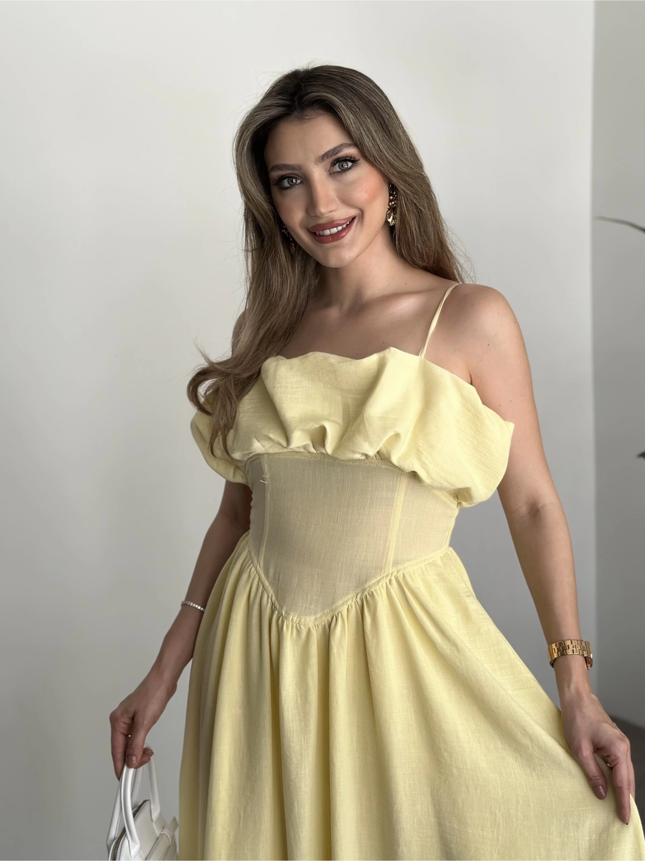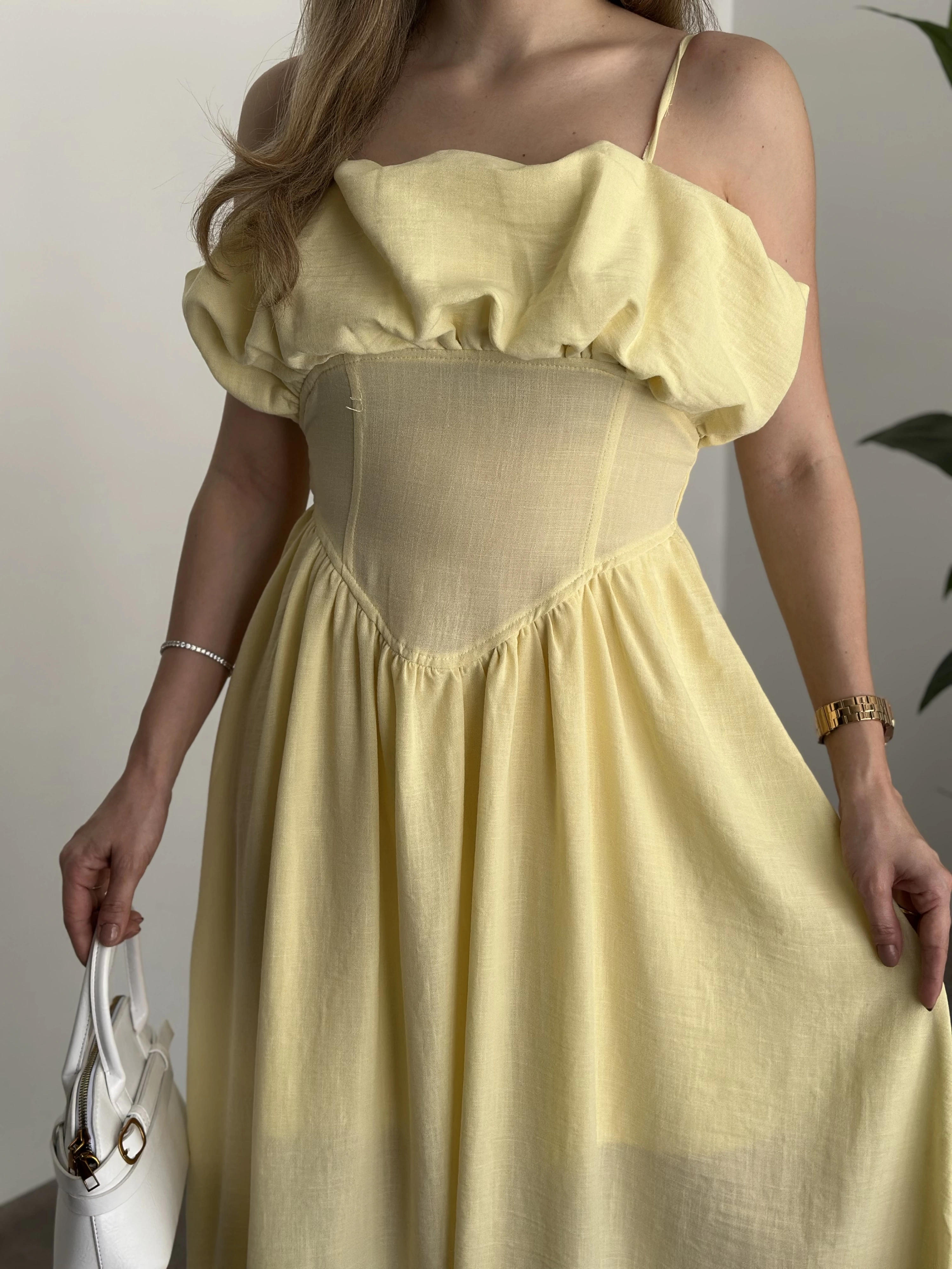 Keten korseli elbise sarı