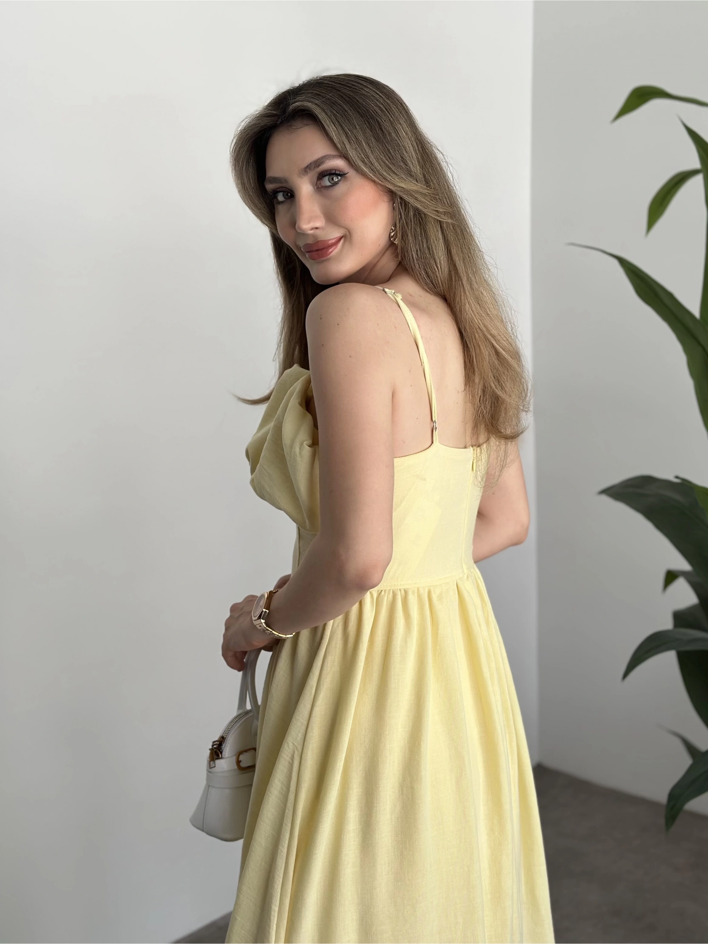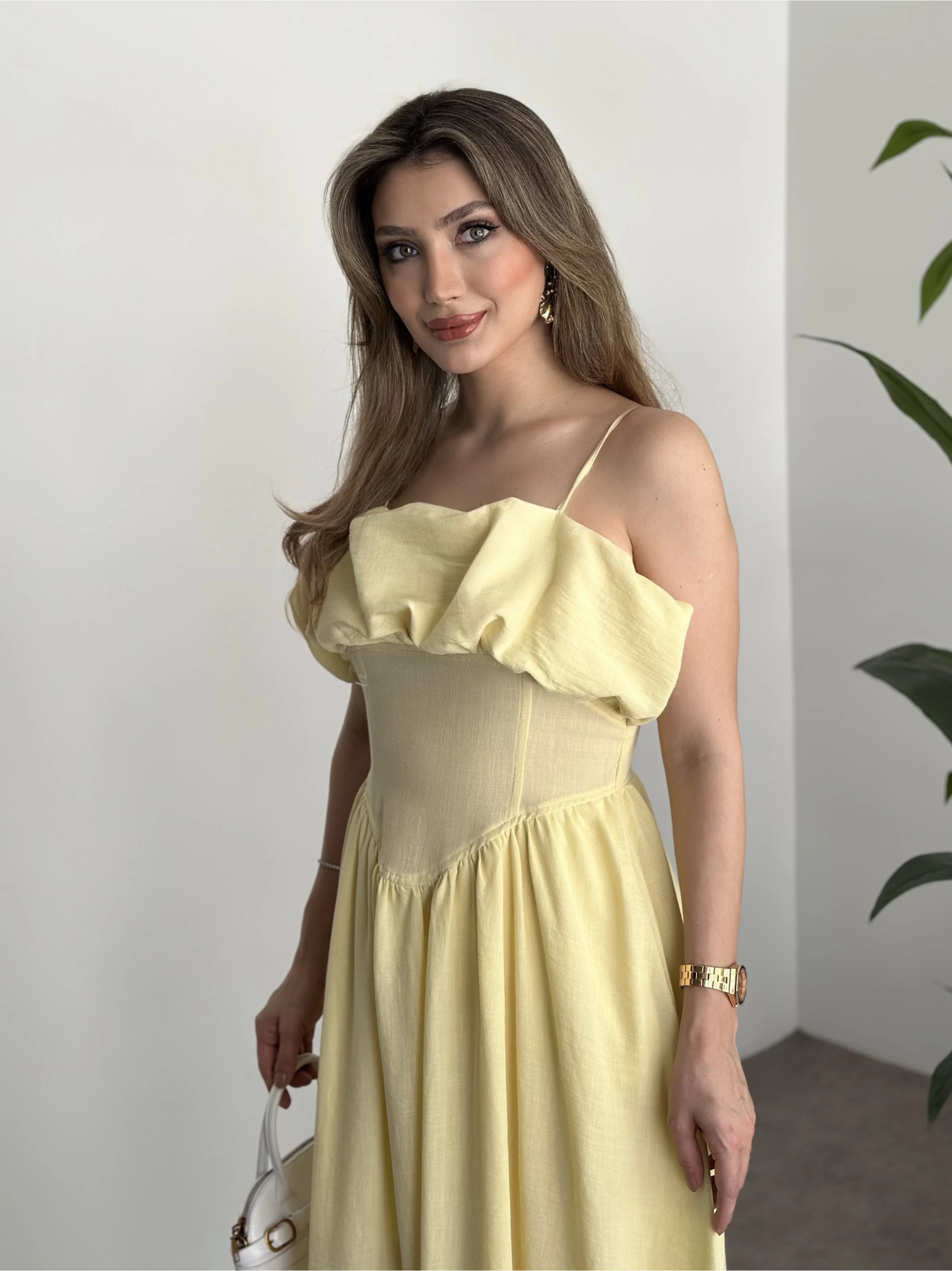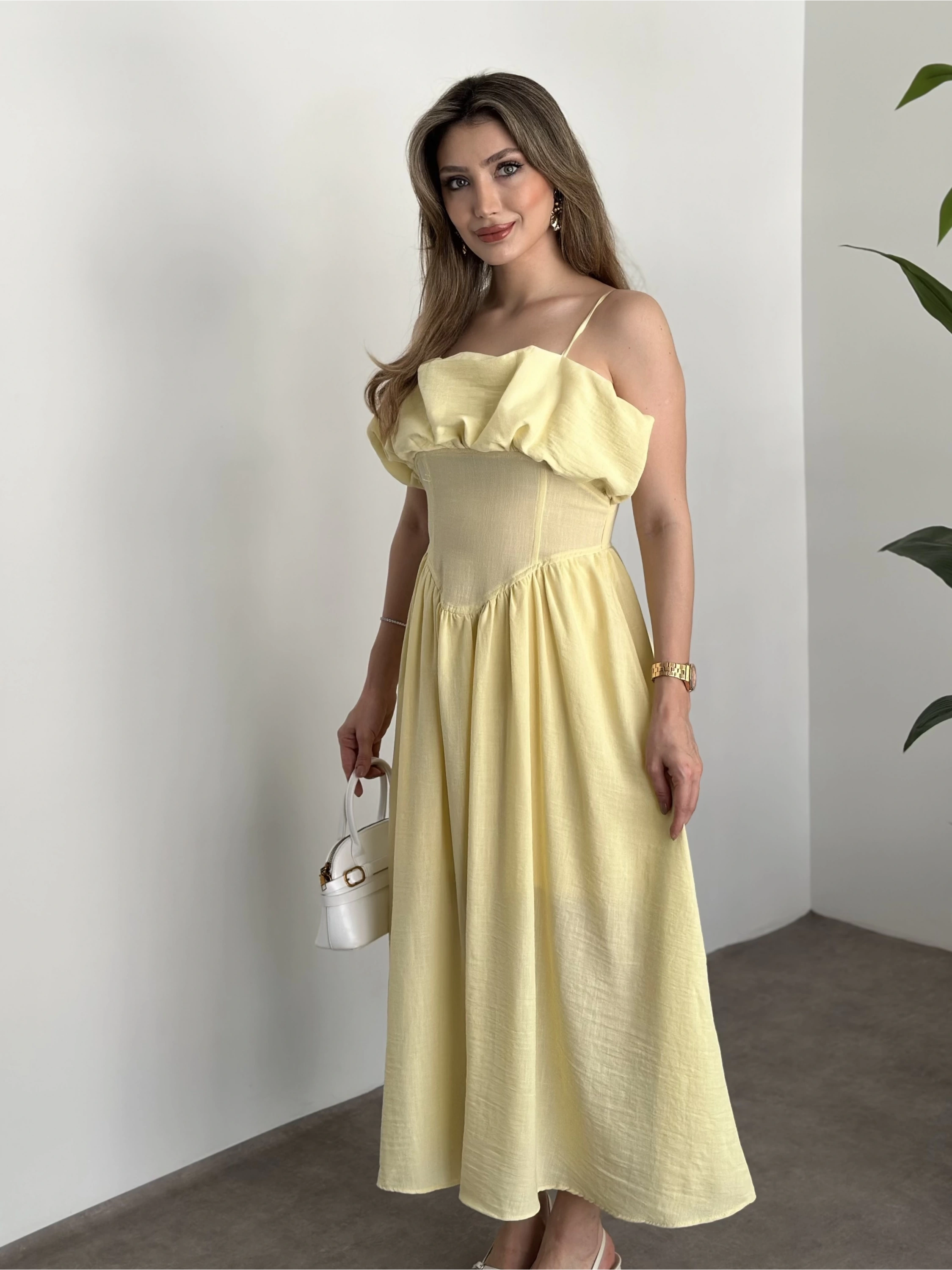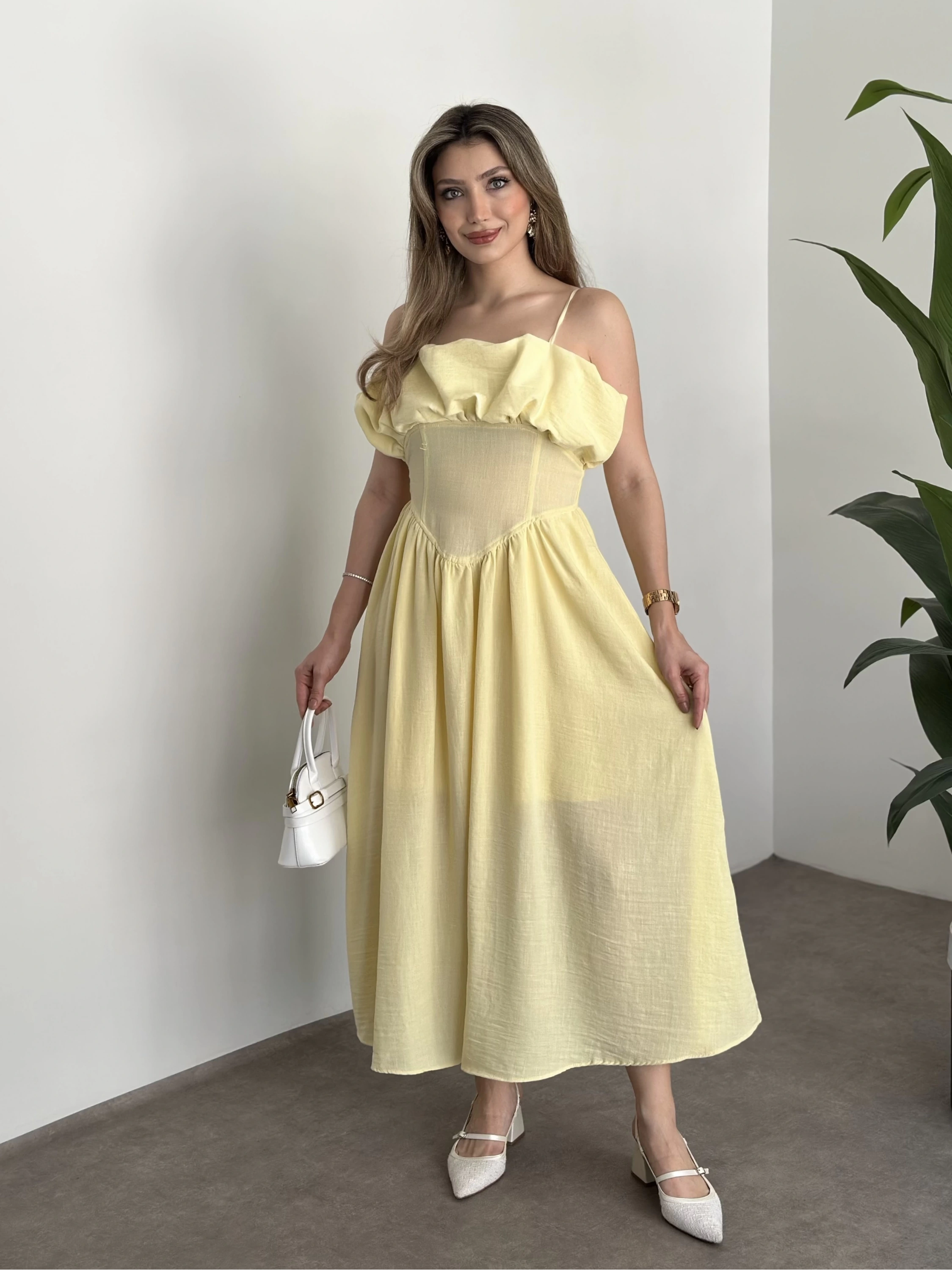 Keten korseli elbise sarı